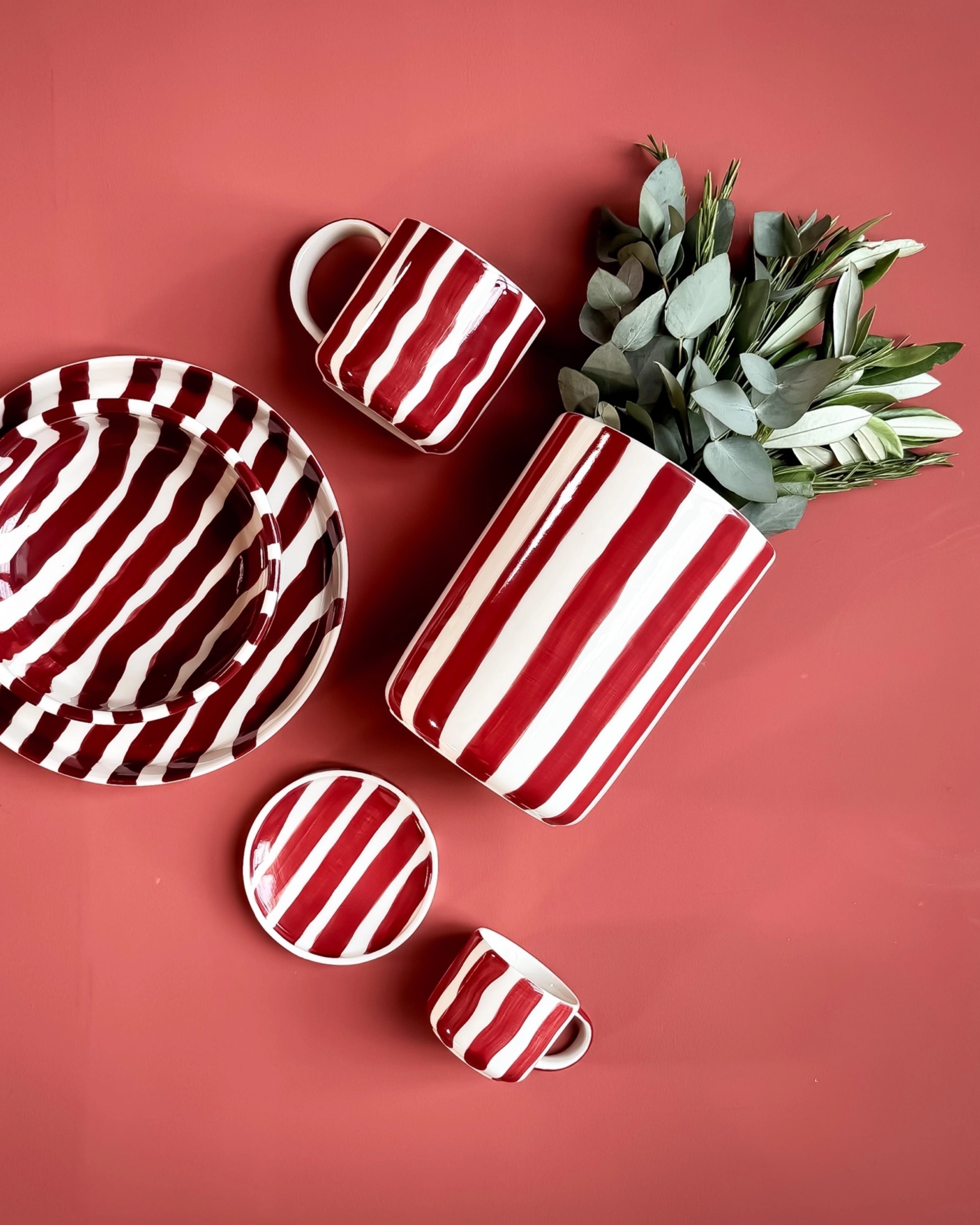 Der Becher Stripes Tramonto Red von Magazin Minori ist aus hochwertiger Keramik und handbemalt. Farbverlauf und -intensität können von Tasse zu Tasse unterschiedlich sein! Keine ist exakt wie die andere ... aber wer will das schon sein?!