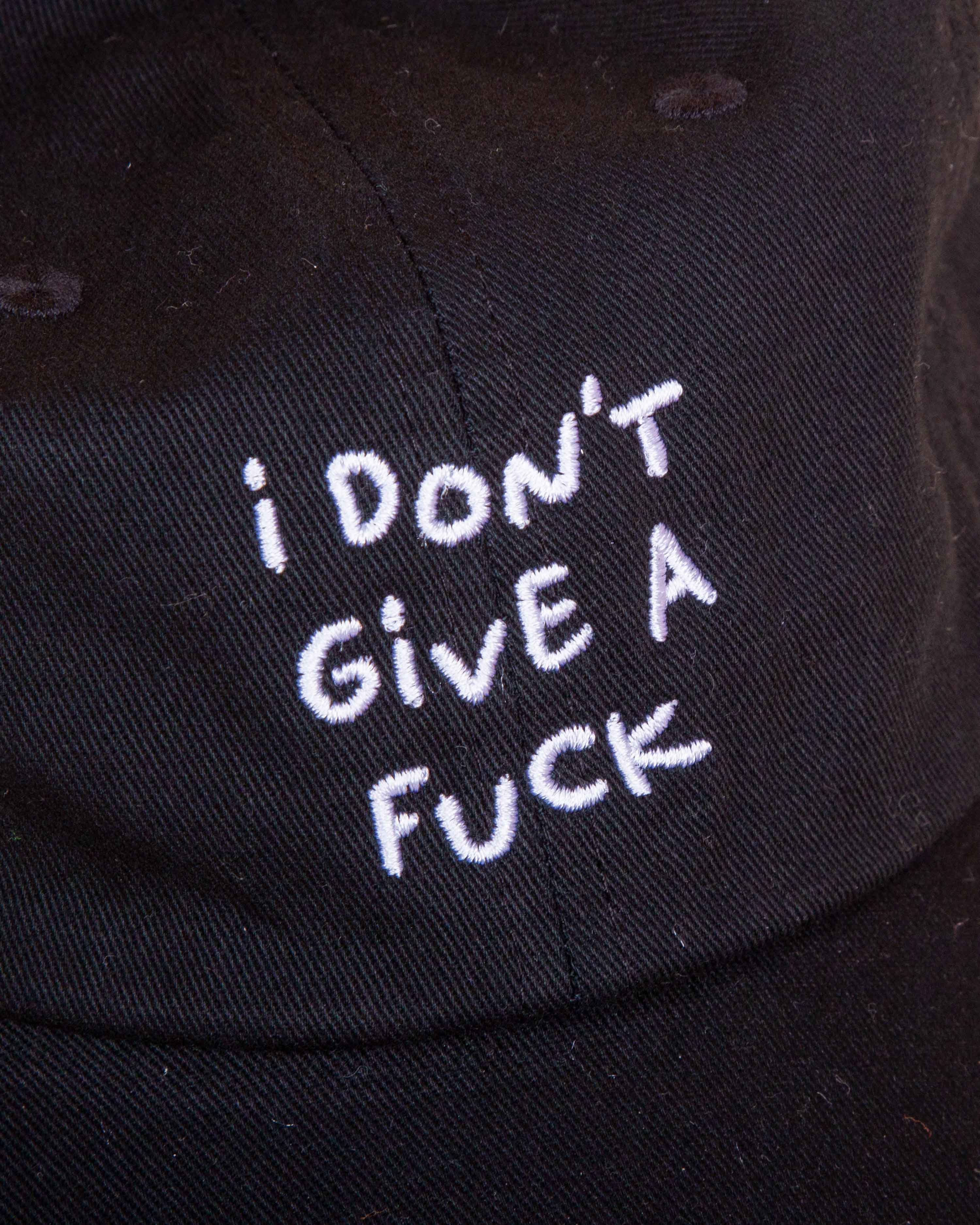 Die Cap DON`T GIVE A FUCK in der Farbe Schwarz ist dein treuer Begleiter und daily Reminder: I DON’T GIVE A FUCK! Die 6-Panel Cap ist aus Baumwolle und in verschiedenen Farben mit unterschiedlich farbigem Stitching erhältlich.