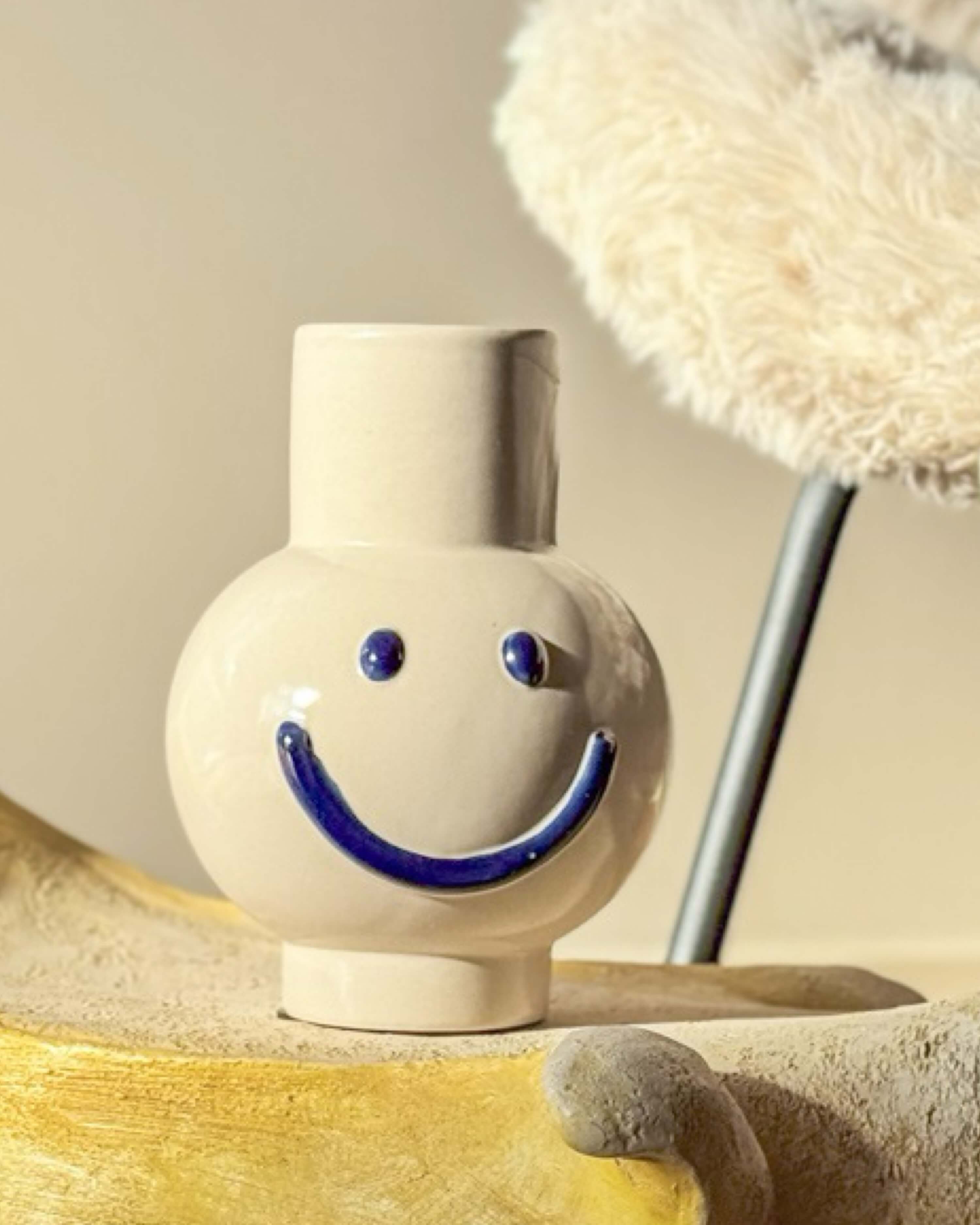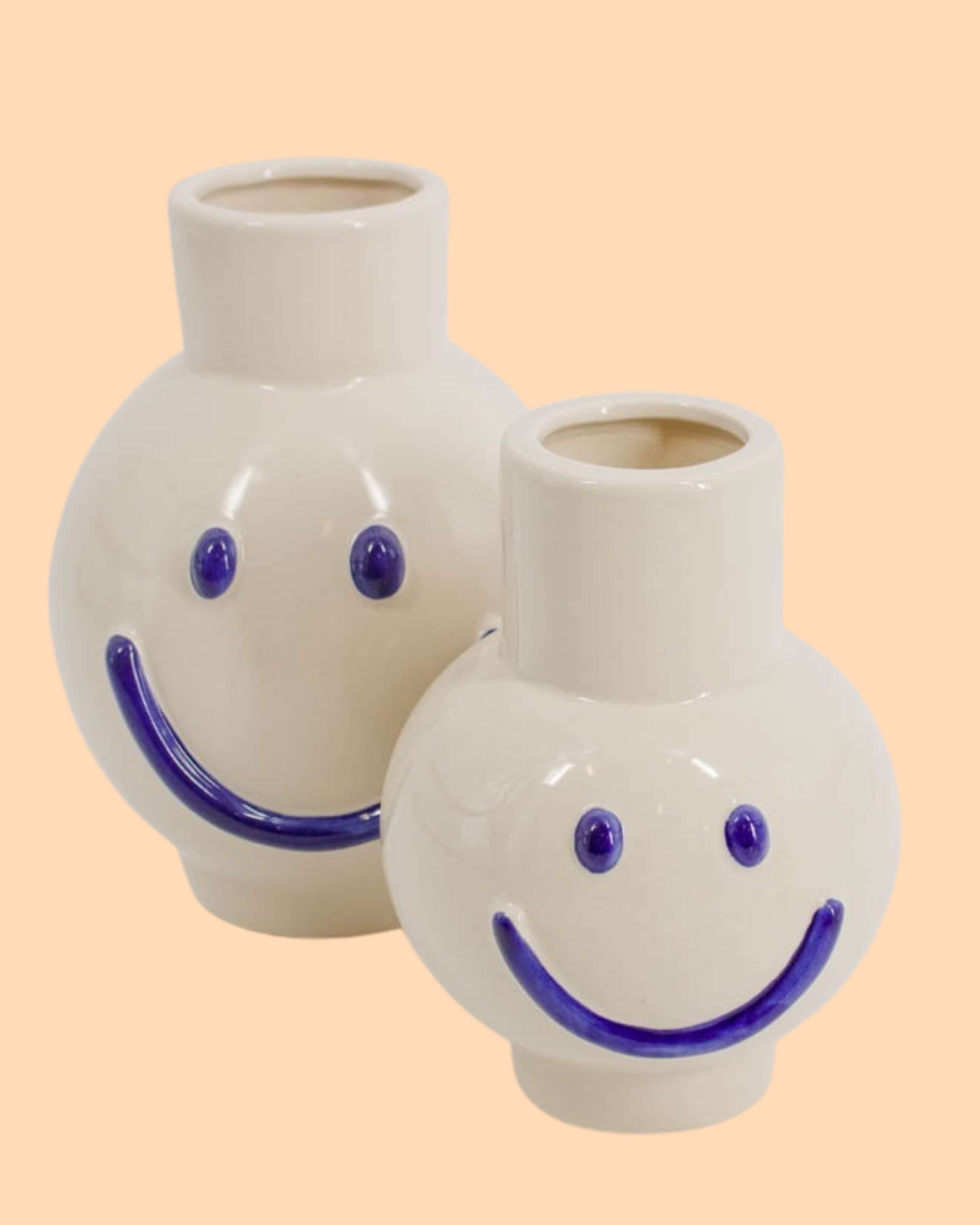 Die Dekovase Smile blau groß zaubert uns ein Lächeln ins Gesicht - Good Vibes only in deinem Zuhause!
