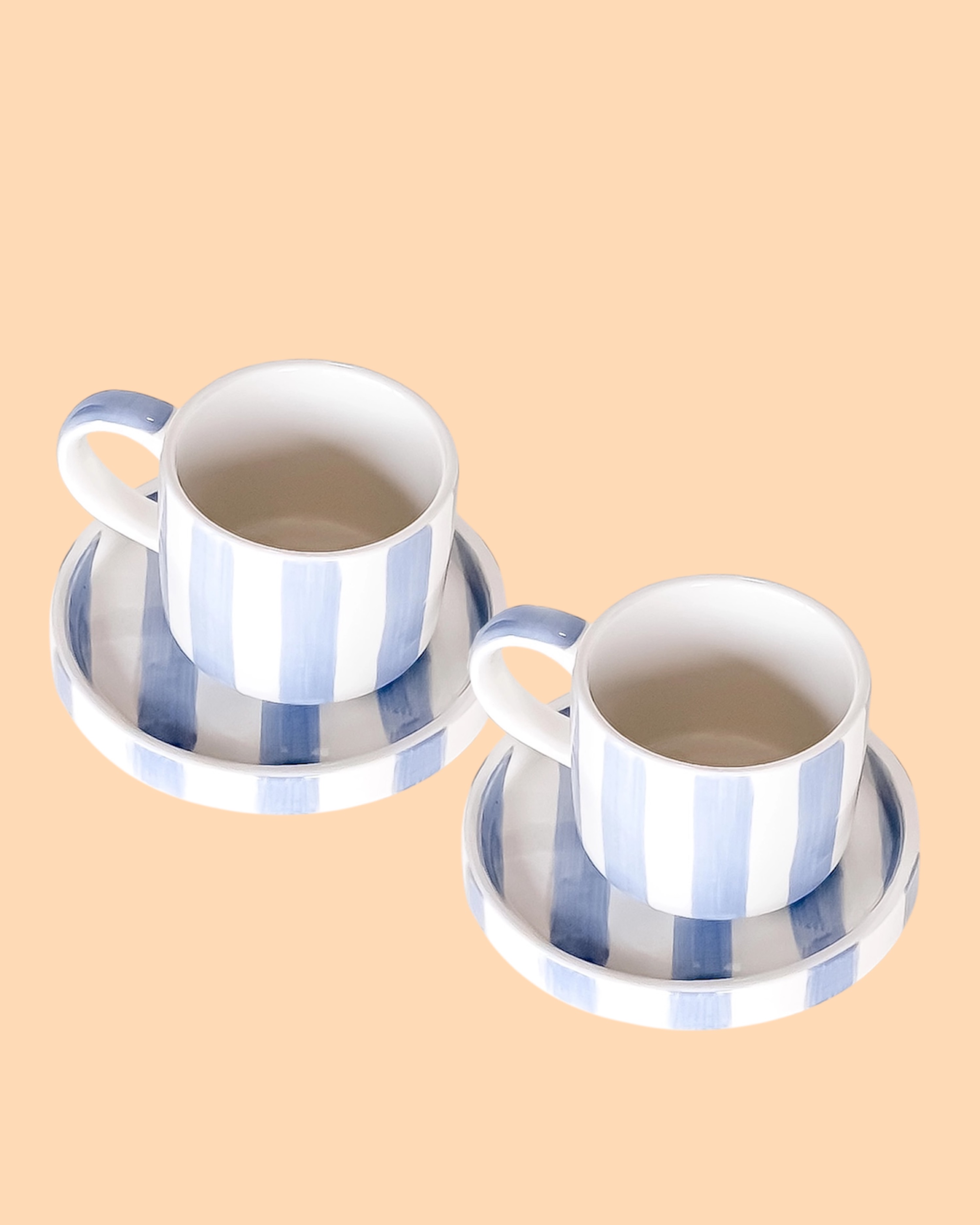 Die Espresso Stripes Morning Azzurro 2erSet von Magazin Minori sind aus hochwertiger Keramik und handbemalt.