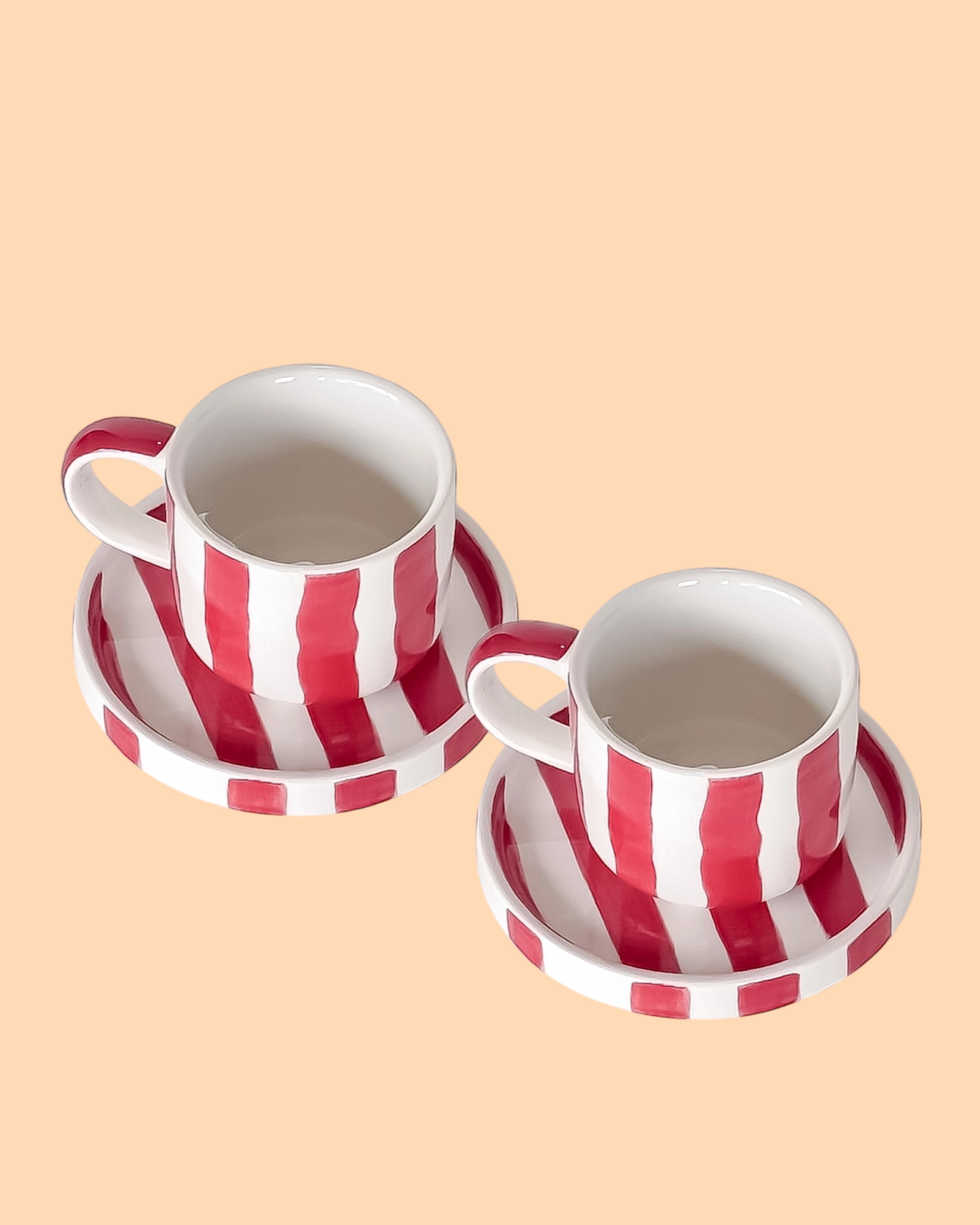 Die Espresso Stripes Tramonto Red 2erSet von Magazin Minori sind aus hochwertiger Keramik und handbemalt. Farbverlauf und -intensität können von Tasse zu Tasse unterschiedlich sein! Keine ist exakt wie die andere ... aber wer will das schon sein?!
