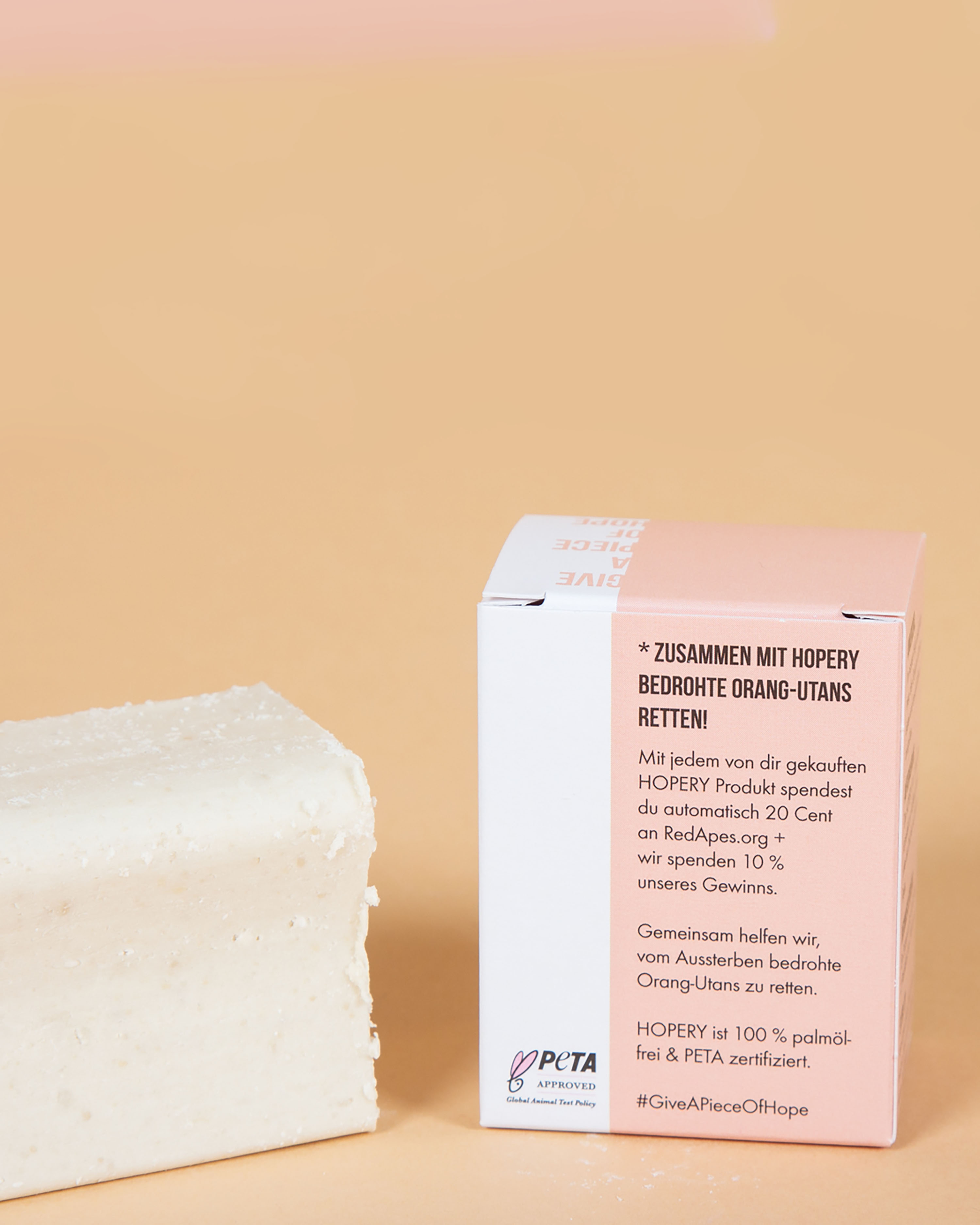 Mit jedem Produkt spendest du direkt 20 Cent an eine Orang-Utan Rettungsstation + Hopery spendet 10 % ihres Gewinns.