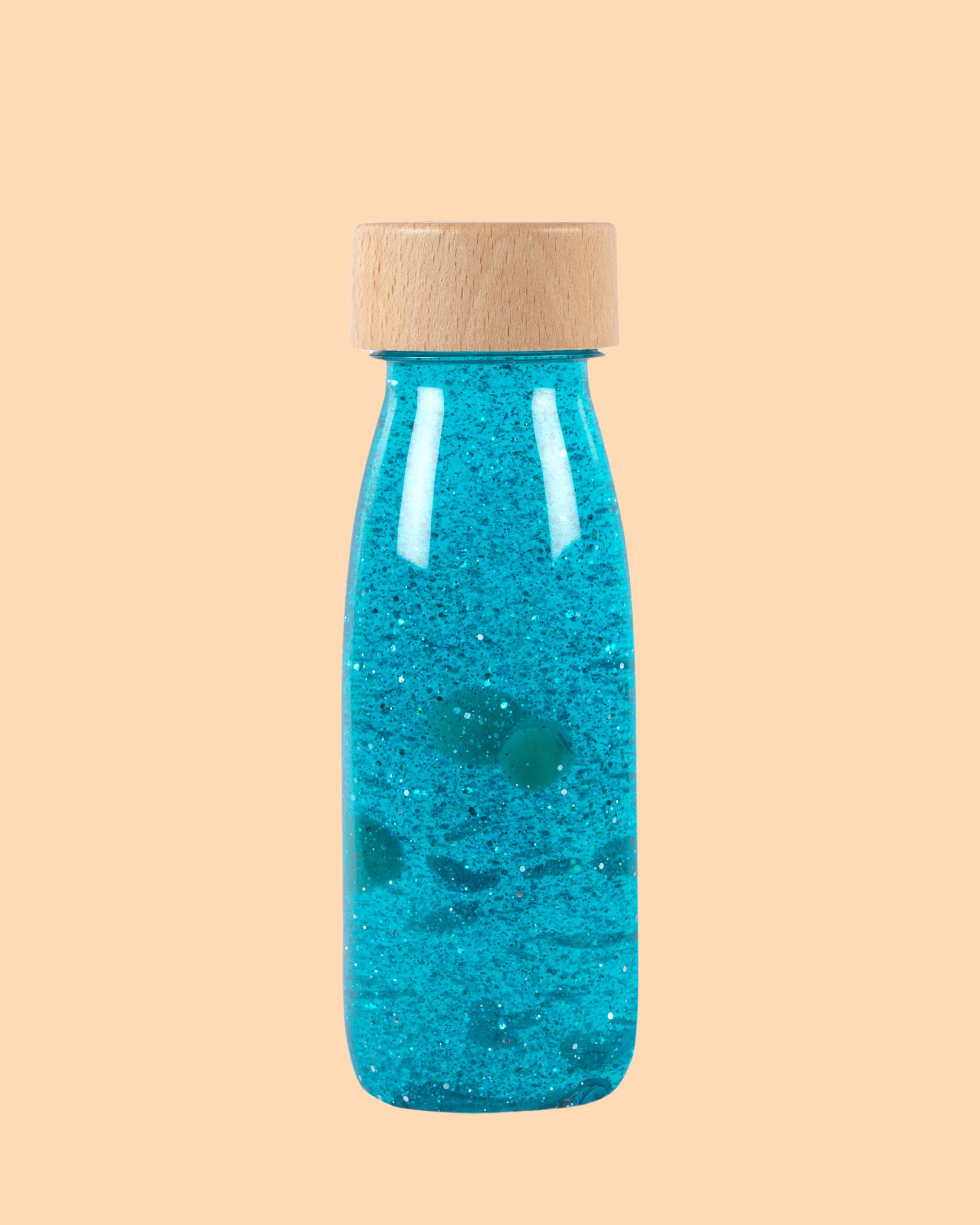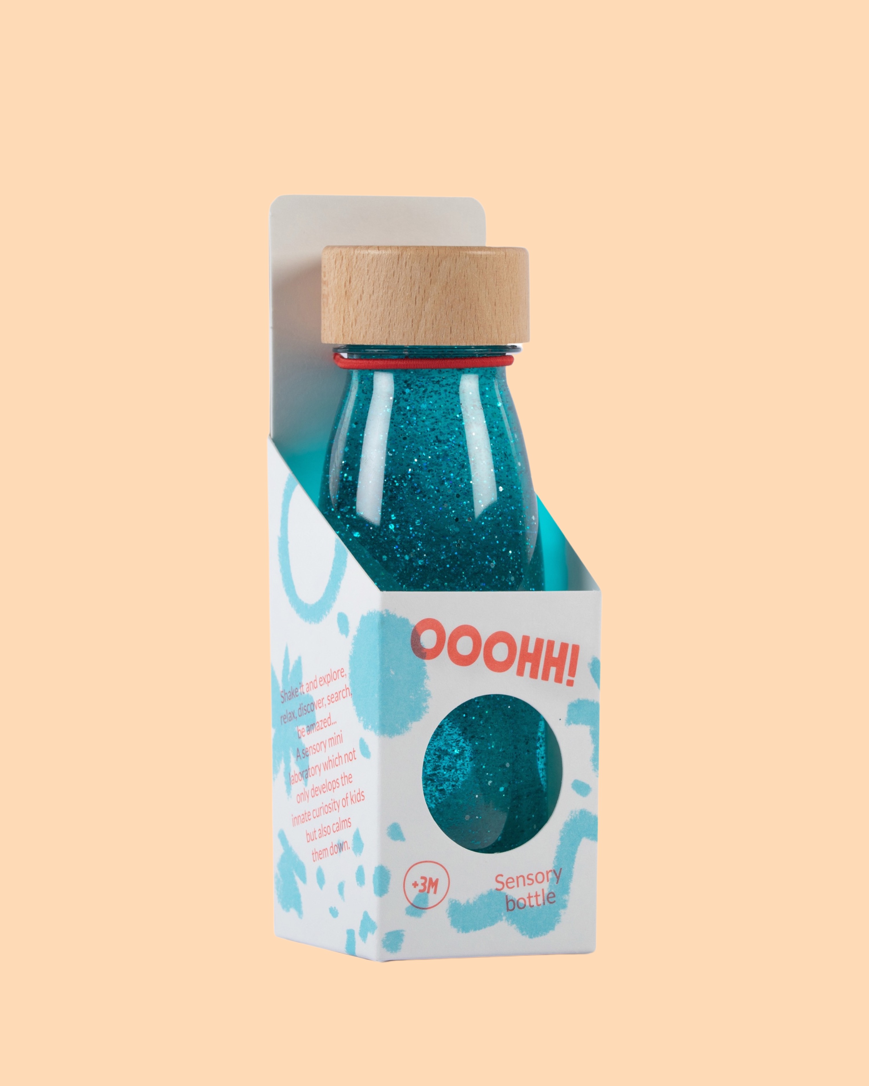 Licht, Farbe und Magie. Der Regenbogen zum Greifen nah. Mit der Float Bottle Turquoise von Petit Boum, die von der Farbpalette der Natur inspiriert ist, entdecken Kinder Farben, staunen über das Licht, fördern ihre Konzentration und finden ihren Moment der Ruhe. Es ist ein perfektes Achtsamkeitsinstrument zum Umgang mit Stress und Ängsten...nicht nur für Kinder!