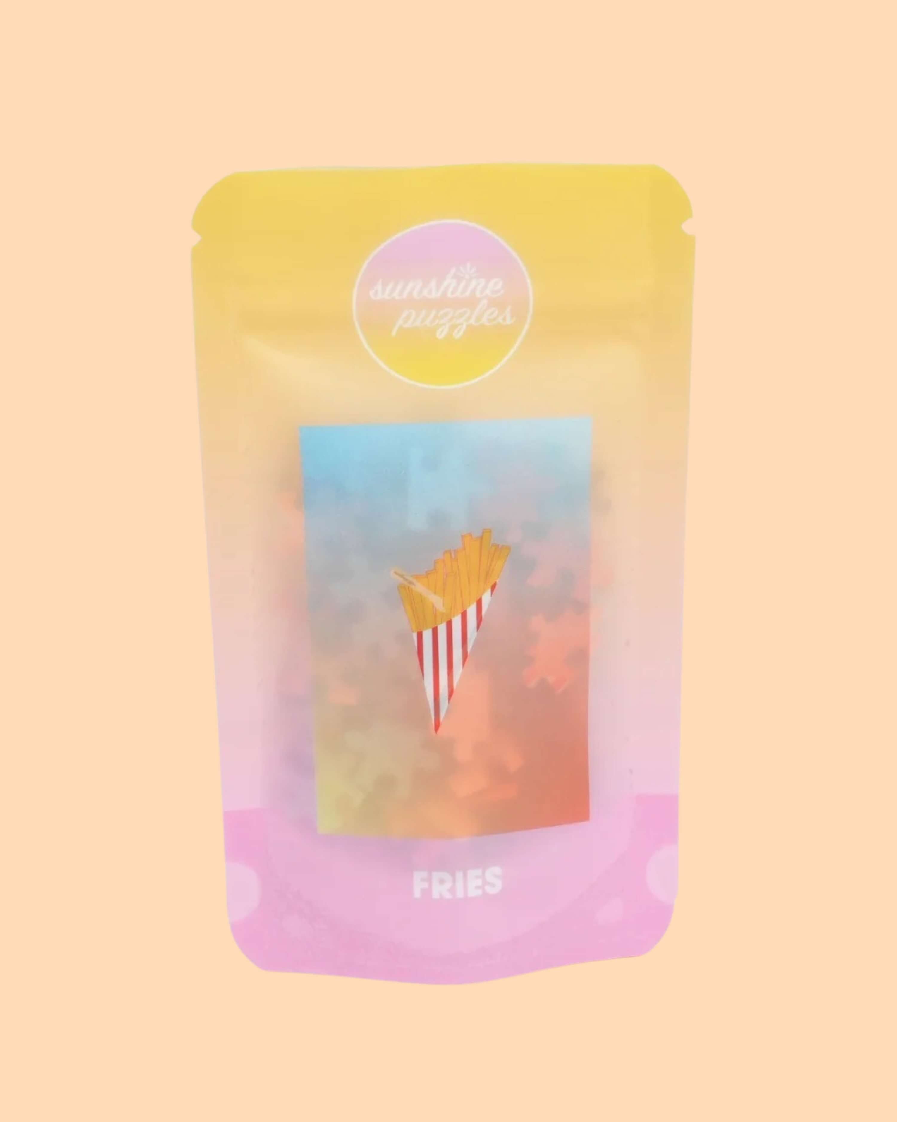 Mini-Puzzle "Fries" von Sunshine Puzzles – Knuspriger Puzzlespaß mit Pommes! Goldgelbe Pommes auf farbenfrohem Hintergrund – dieses Mini-Puzzle macht sofort Appetit auf eine kleine Knobelei.