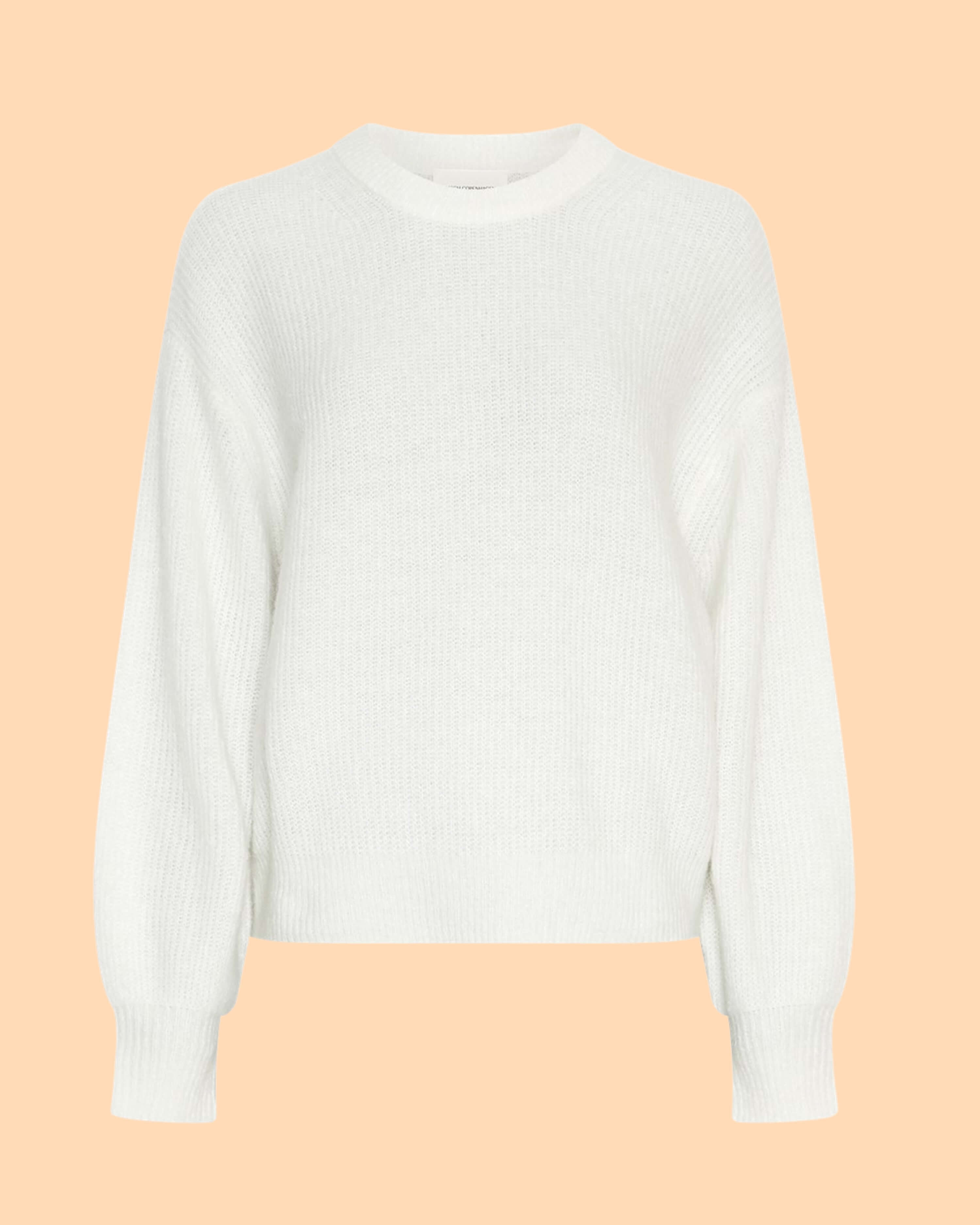 Der Gustel Hope Pullover Egret von MSCH COPENHAGEN ..........ist ein zeitloser Strickpullover aus einer hochwertigen Woll- und Alpakamischung gefertigt. Er hat eine normale Passform, leicht überschnittene Schultern, einen Rundhalsausschnitt und Rippstrickbündchen.
