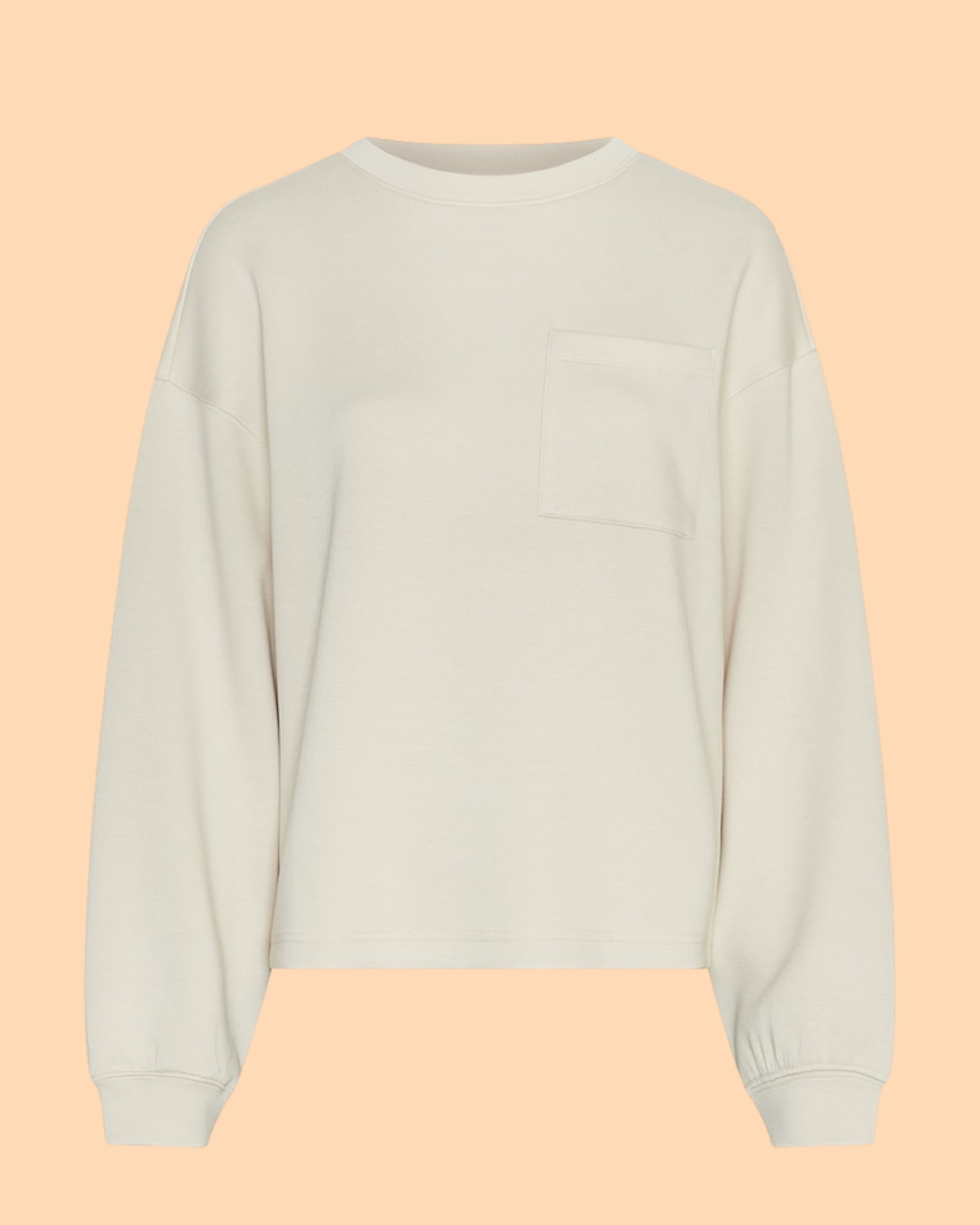 Das Illiana Ima Q Sweatshirt Oatmeal von MSCH COPENHAGEN ist ein lässig geschnittener Pulli in weicher Qualität. Die locker sitzenden Ärmel, der Rundhalsausschnitt, die Brusttasche und die Drop-Shoulder-Details machen es zu einem gemütlichem Lieblingsteil! Das Model ist 1,81m groß und trägt Größe S/M.