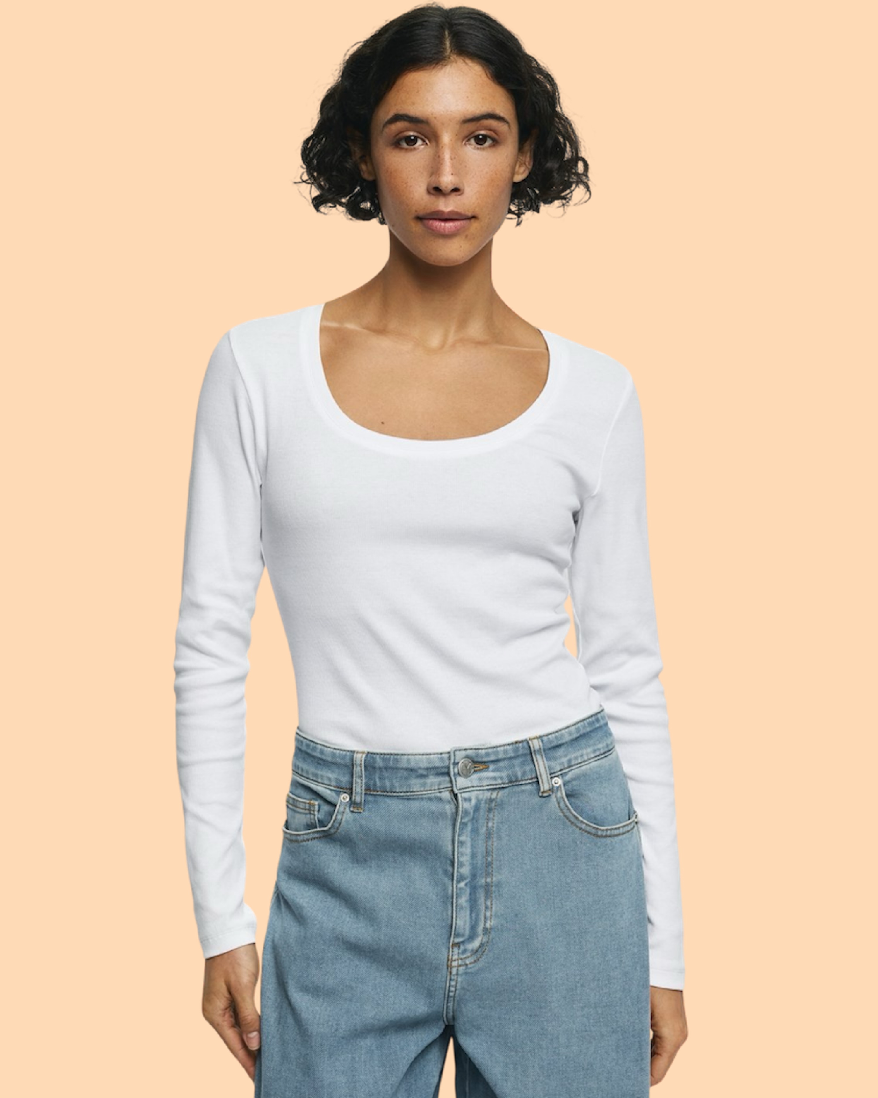 Das Jeanie Rasmia U Top Bright White von MSCH COPENHAGEN ist ein langärmliges Top aus weichem Jersey mit Rundhalsausschnitt und enganliegender Passform.