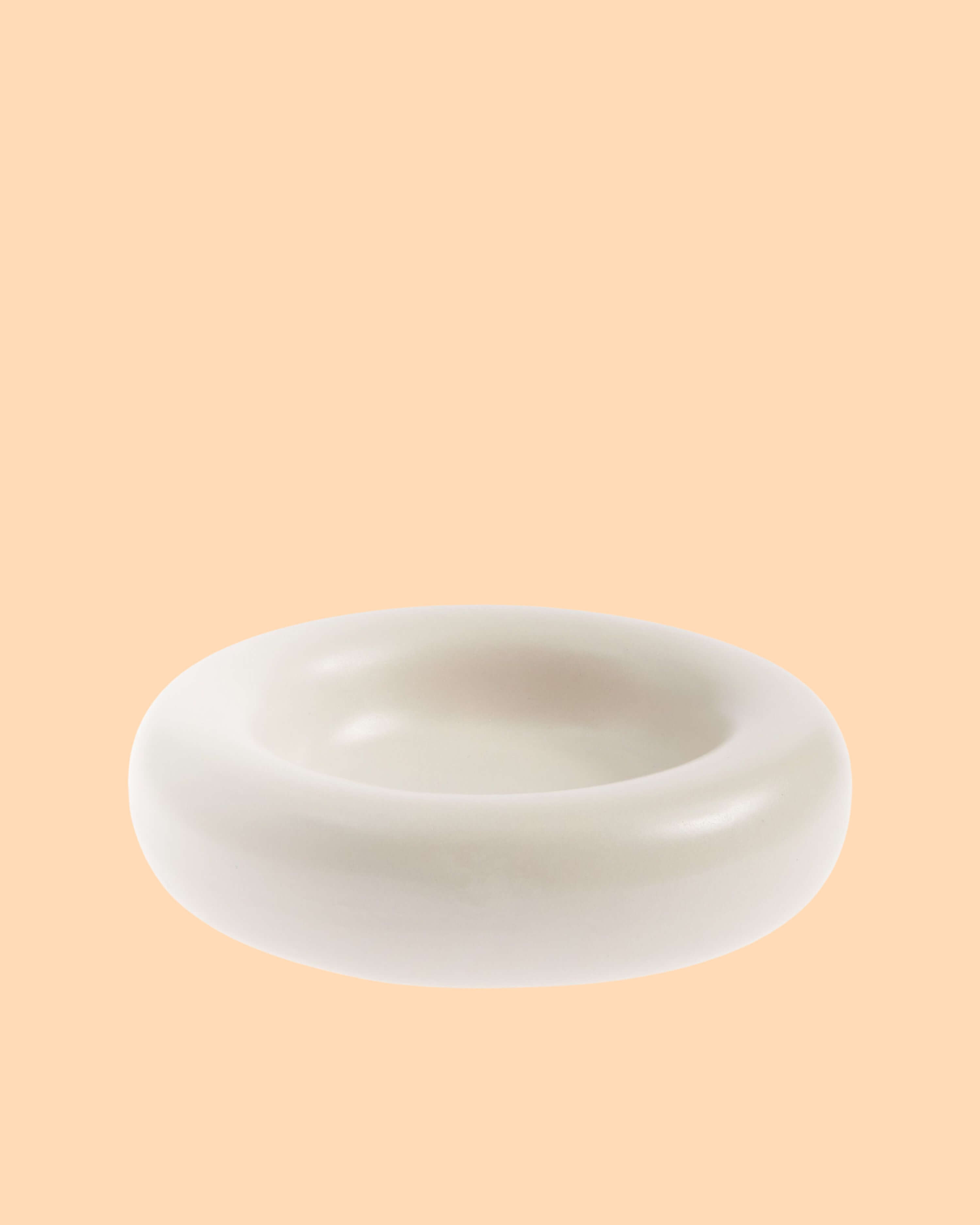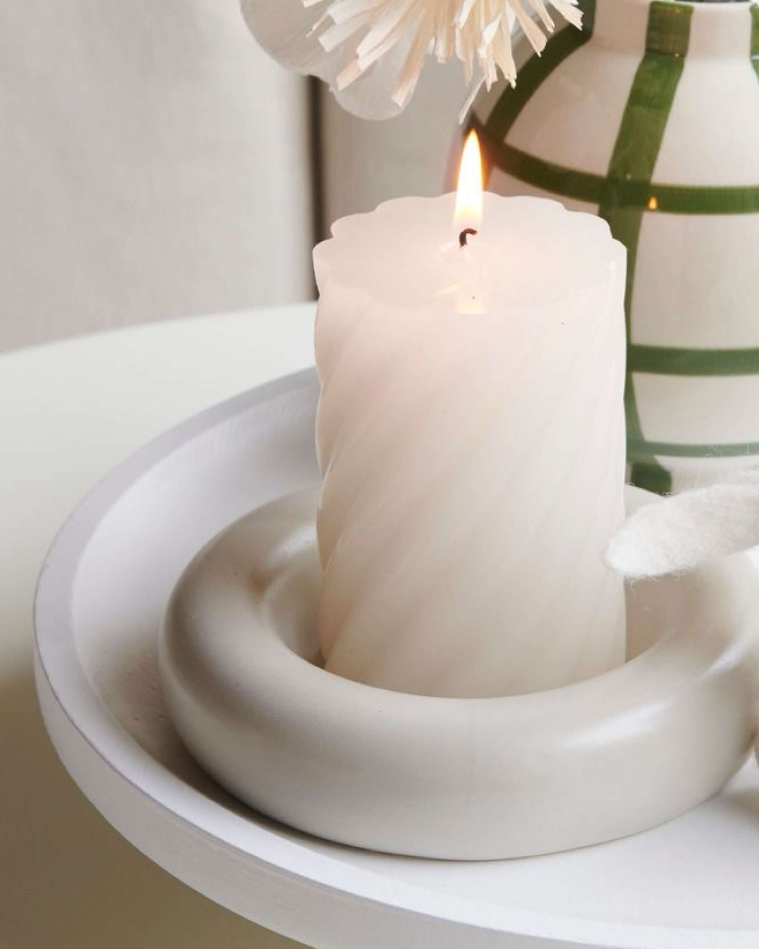Der Kerzenhalter Porzellan Greige Ø 14cm von Rico Design ist durch seine ringförmige Silhouette ein echter Hingucker.