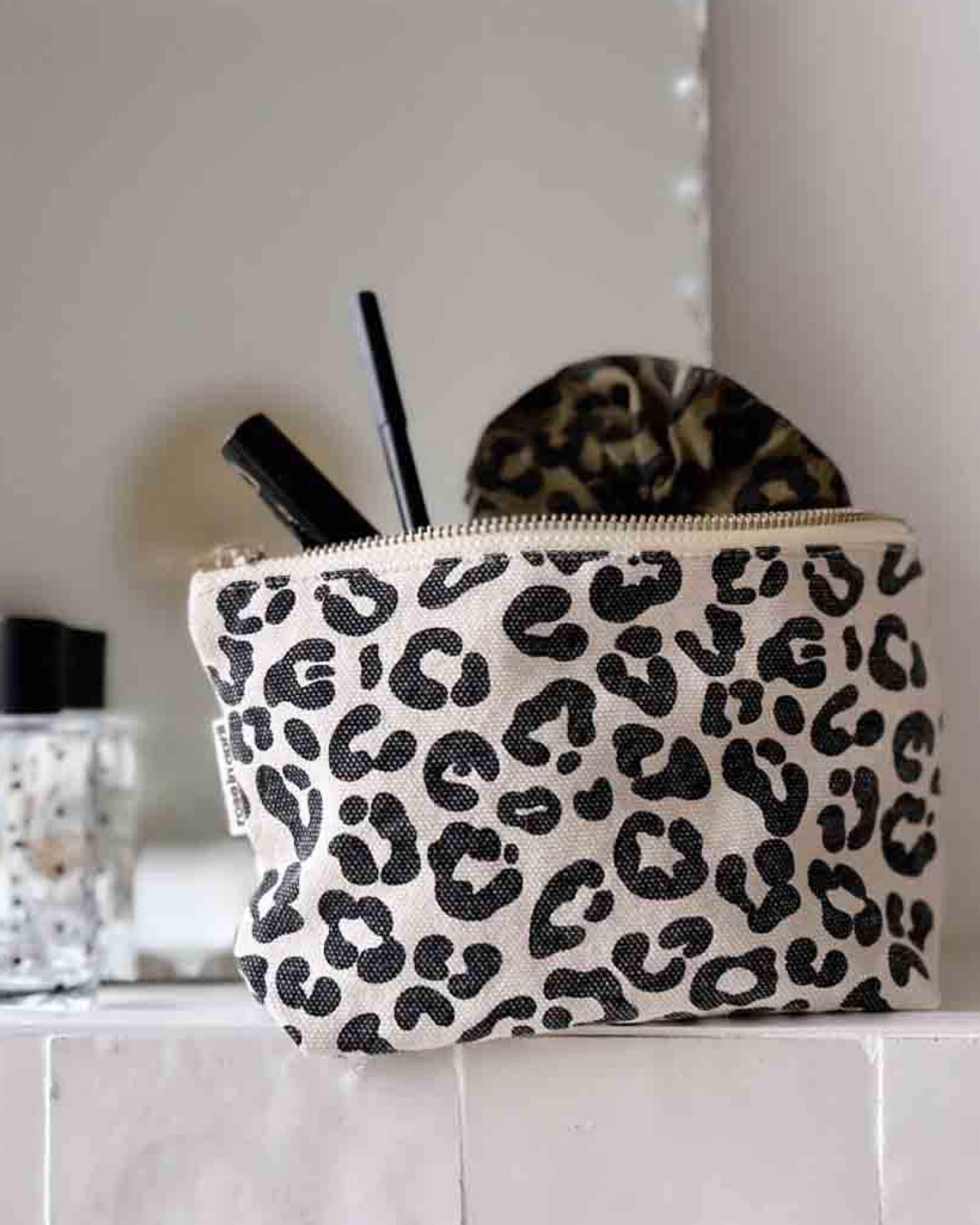 Die Kosmetiktasche Sofia Graou Greige von rose in april ist aus ÖKO-TEX-Baumwolle und wurde in Portugal hergestellt. Das Innenmaterial ist im Pünktchenprint und wasserabweisend beschichtet.