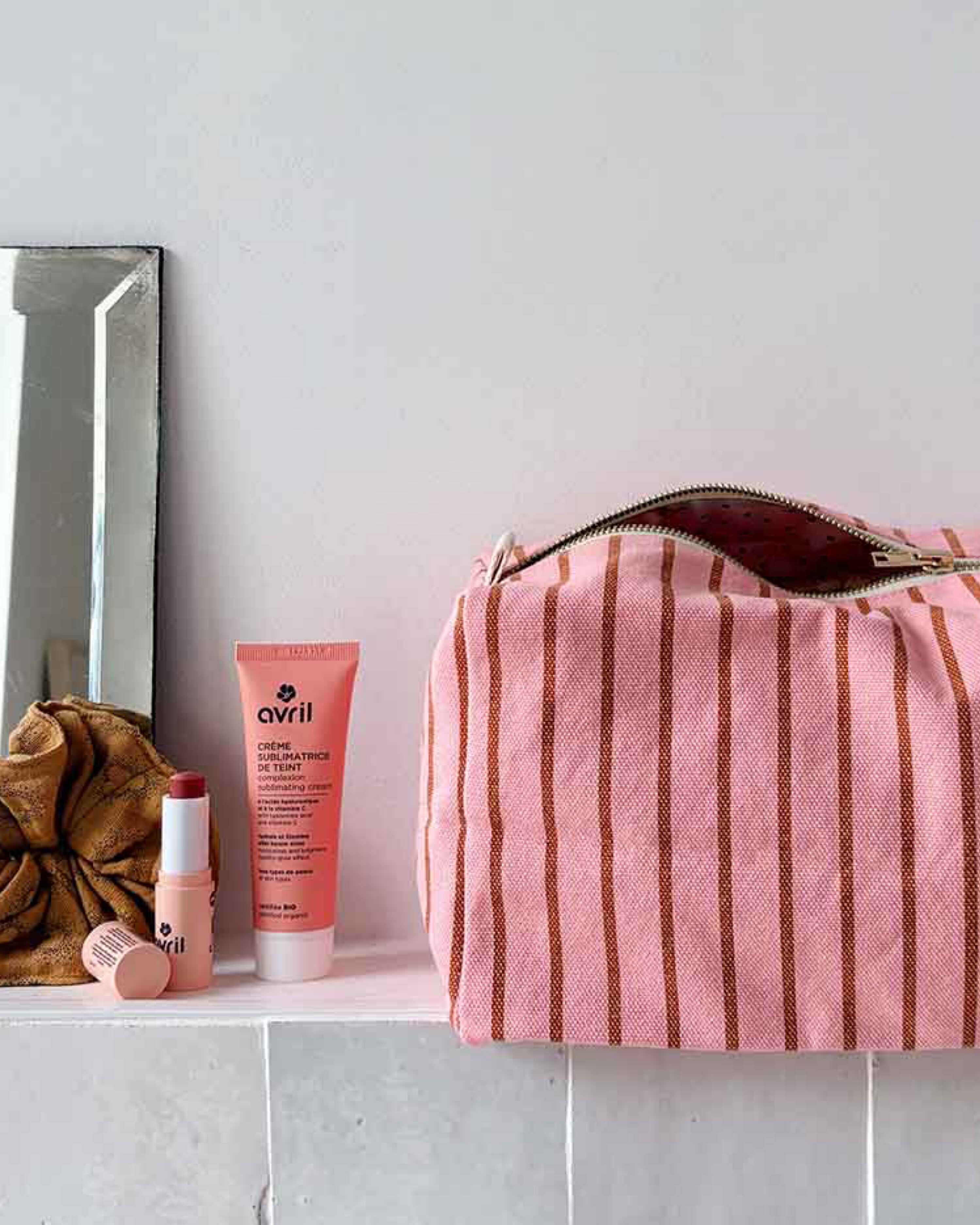 Kosmetiktasche Vic Stripes Pecan/Strawberry