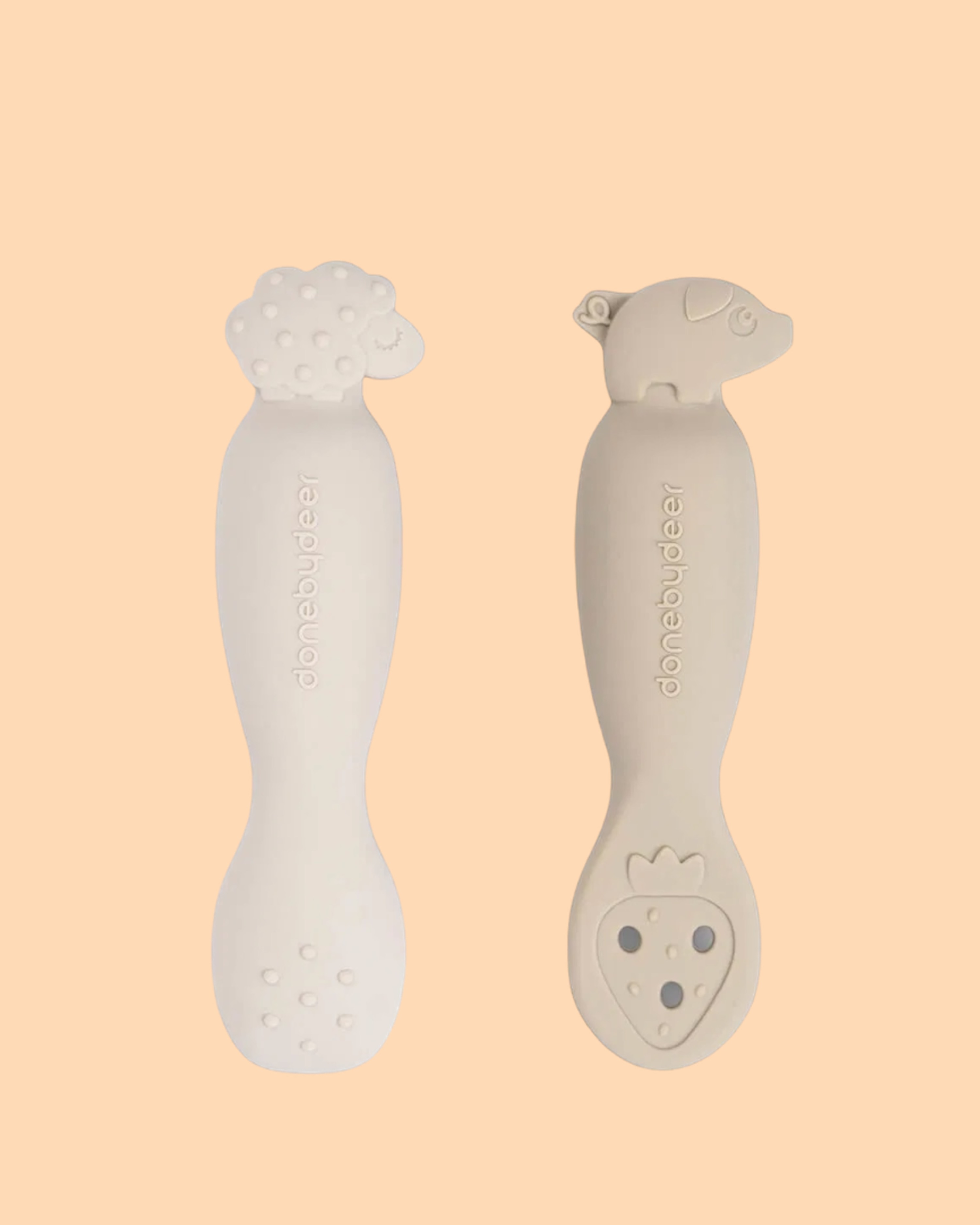 Das Learning Spoon Tiny Farm Sand 2erSet von Done by Deer sind weiche Löffel, mit denen dein Lütten Lebensmittel in seinem eigenen Tempo entdecken kann. Mit einem Löffel zum Eintauchen und einem zum Schöpfen sind die Formen und Texturen perfekt für kleine Hände zum Greifen und Benutzen geeignet. Die Löffel bestehen aus lebensmittelechtem Silikon, sind frei von BPA und schädlichen Substanzen und können sowohl in der Mikrowelle als auch in der Spülmaschine verwendet werden.
