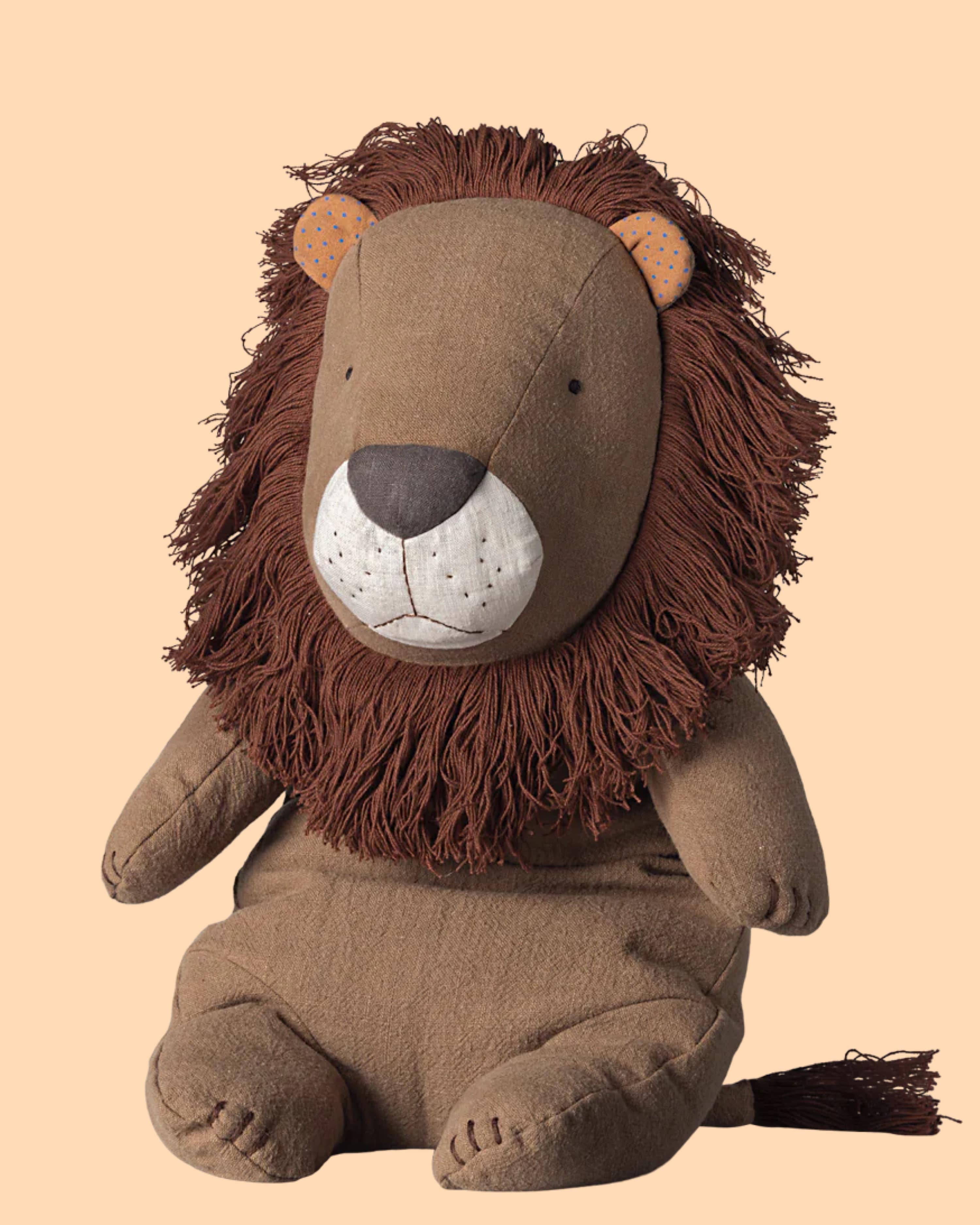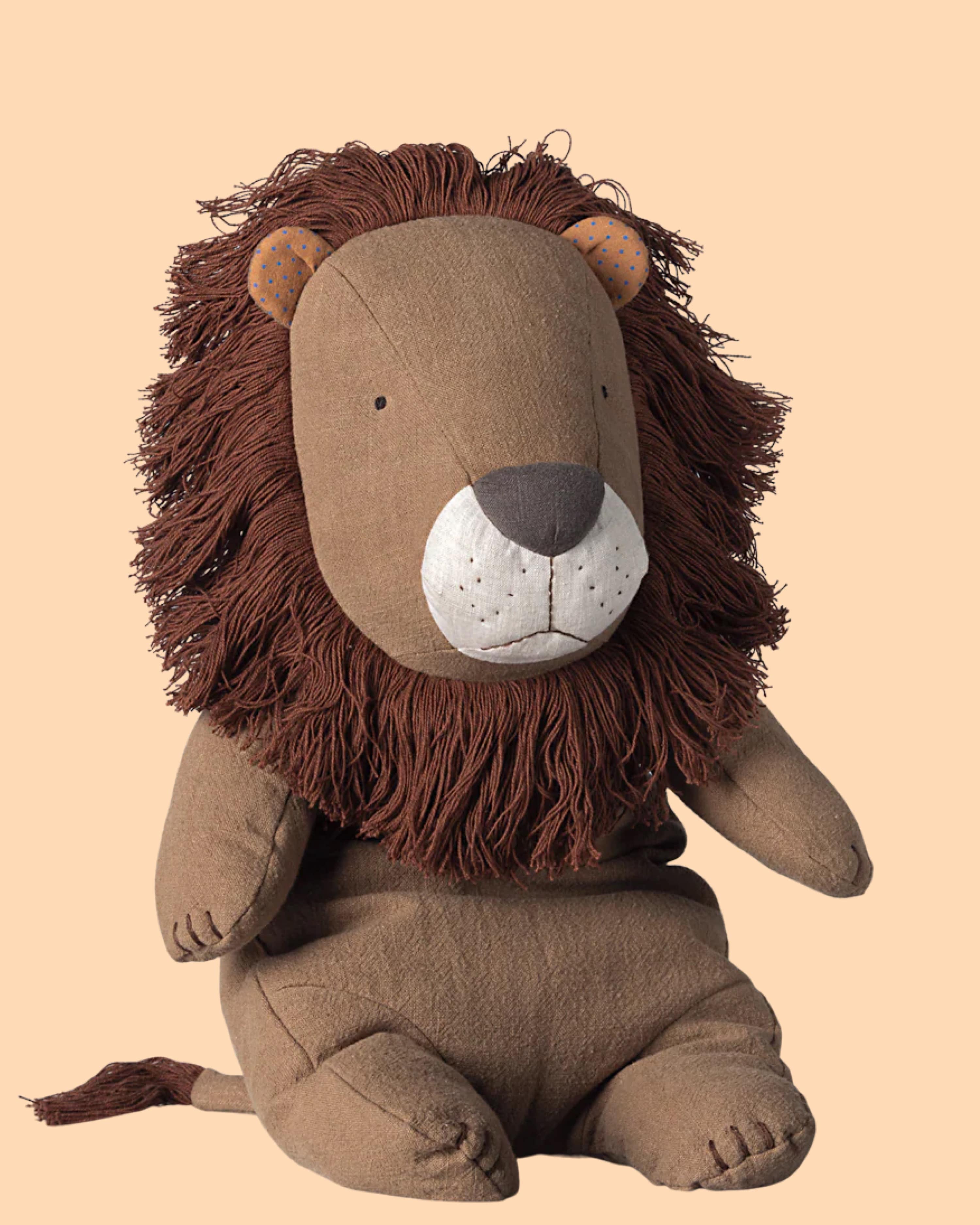 Die Safari-Freunde werden aus weichem Leinenstoff hergestellt. Sie geben die schönsten Umarmungen und können von alleine sitzen. Denn im Inneren der knuddeligen Kuscheltiere befinden sich recycelte Kugeln aus Polyester. Sollte der Safari-Freund mal schmutzig werden, so kann dieser ganz einfach bei 30°C in der Waschmaschine gewaschen werden. Der Lion Safari Friends Large von maileg ist ein tolles Geschenk zur Geburt, Taufe oder einem Geburtstag.