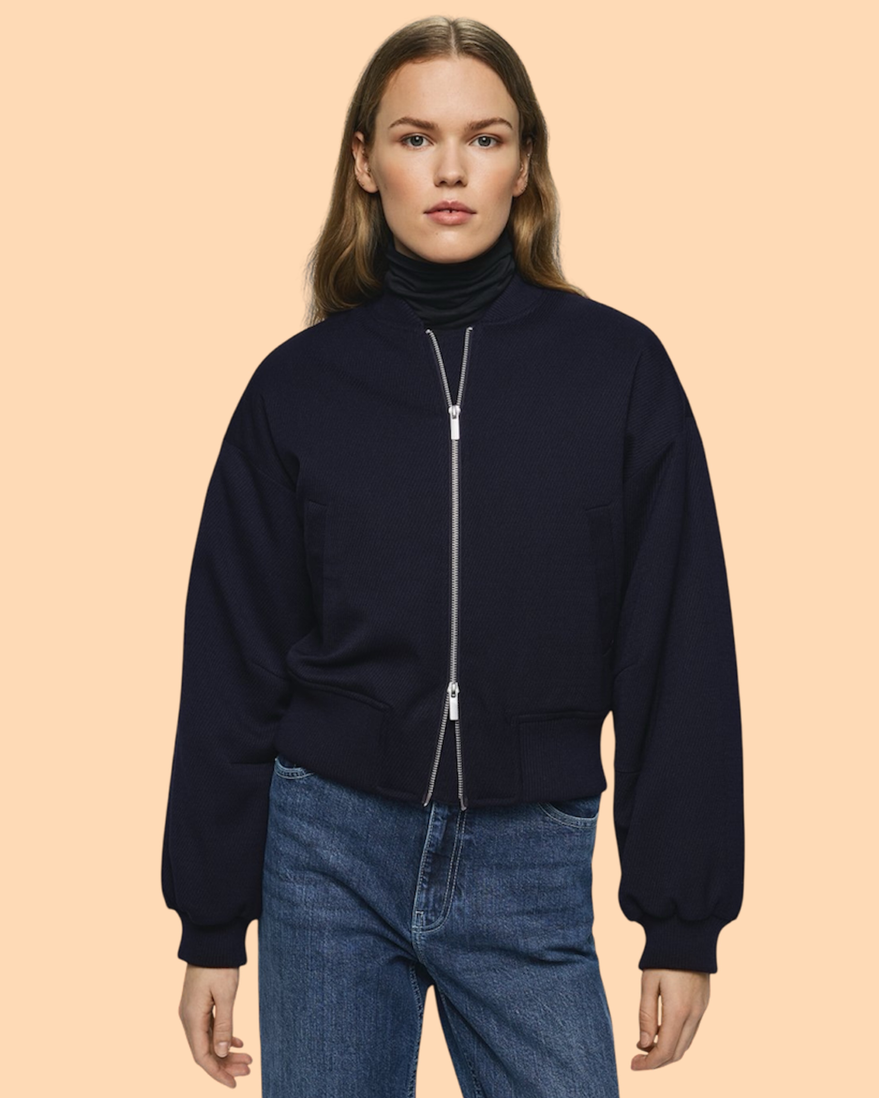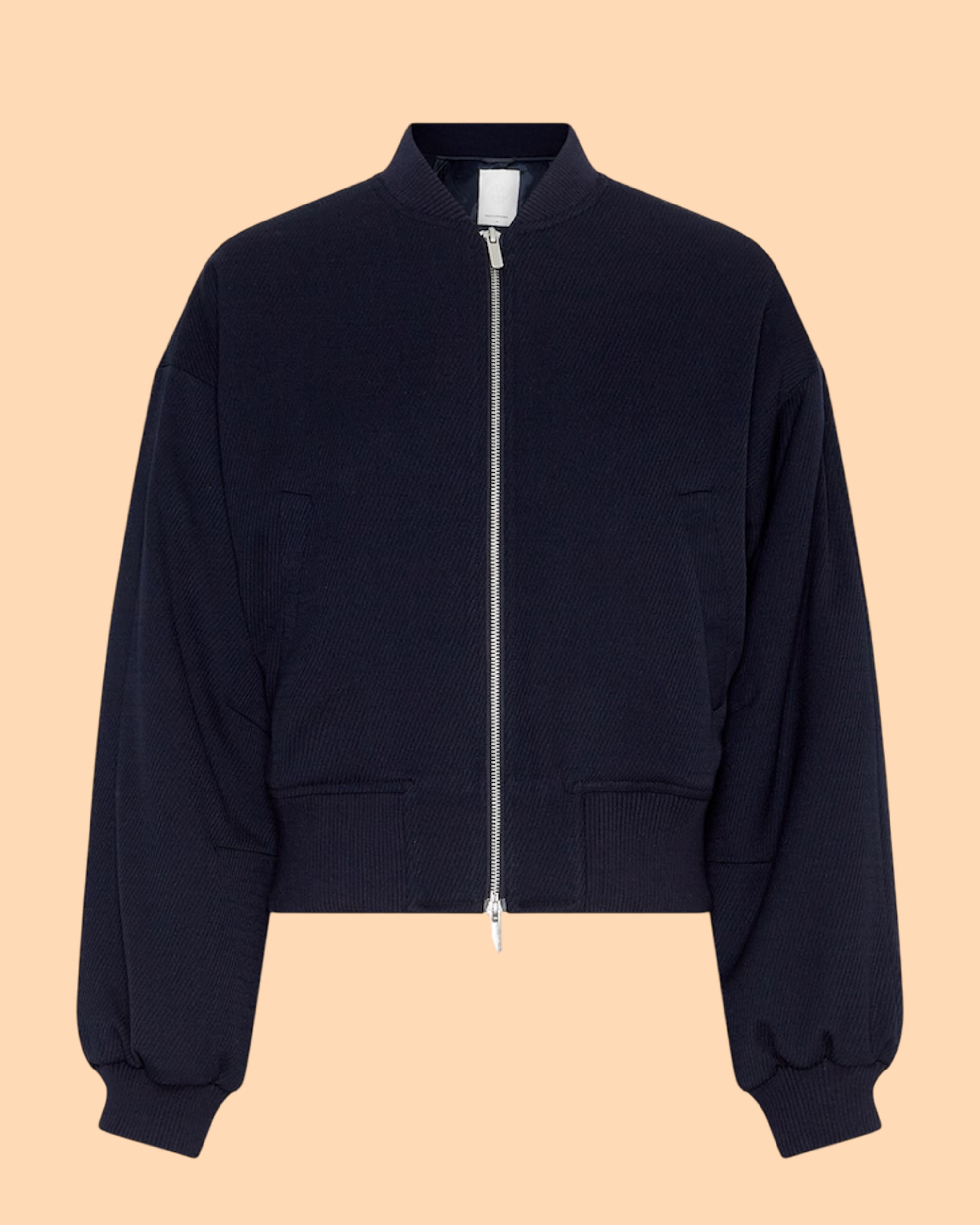Die Madalie Jacket Sky Captain von MSCH COPENHAGEN ist eine taillierte Bomberjacke mit einem strukturierten Stoff, Zwei-Wege Reißverschluss und aufgesetzten Leistentaschen.