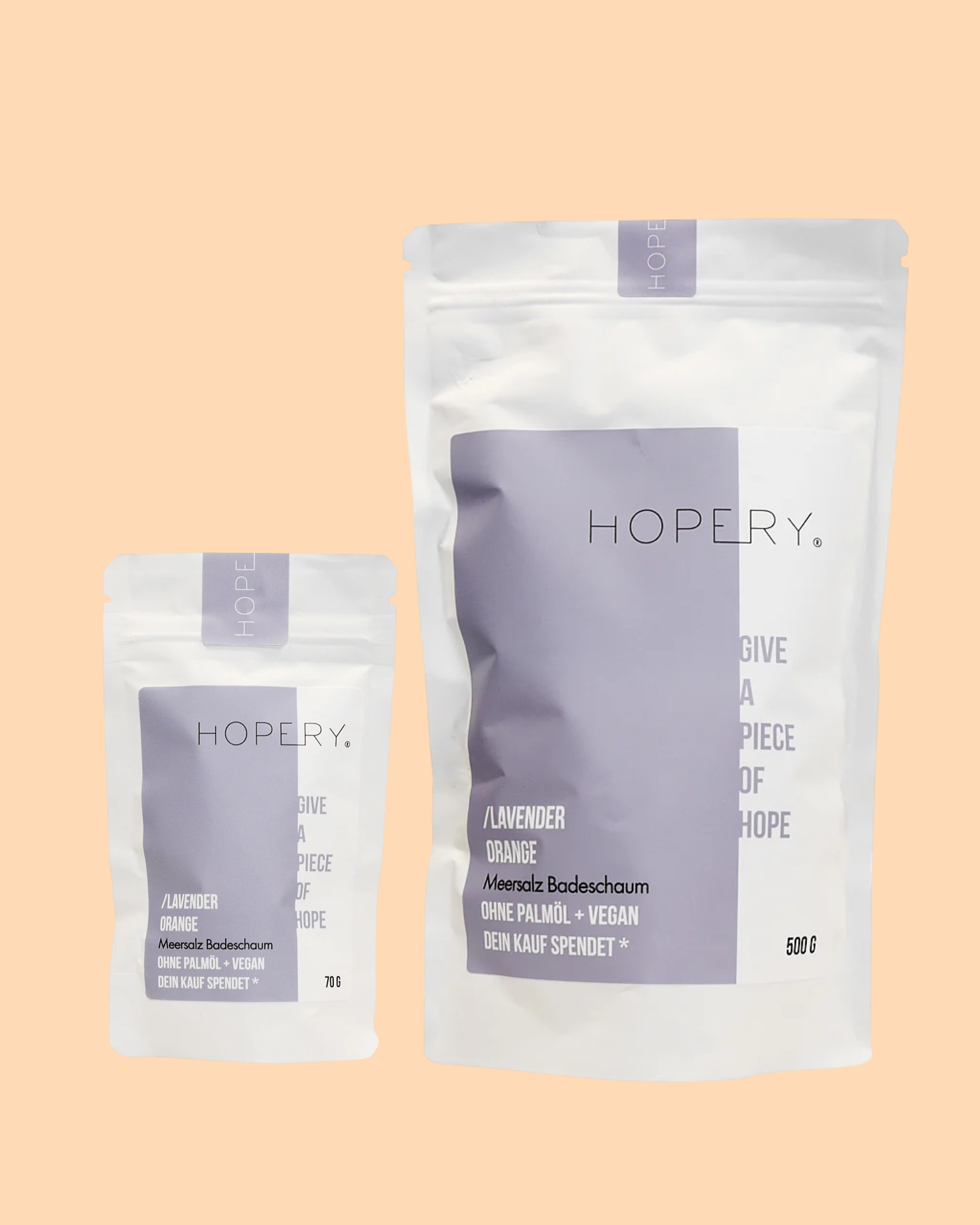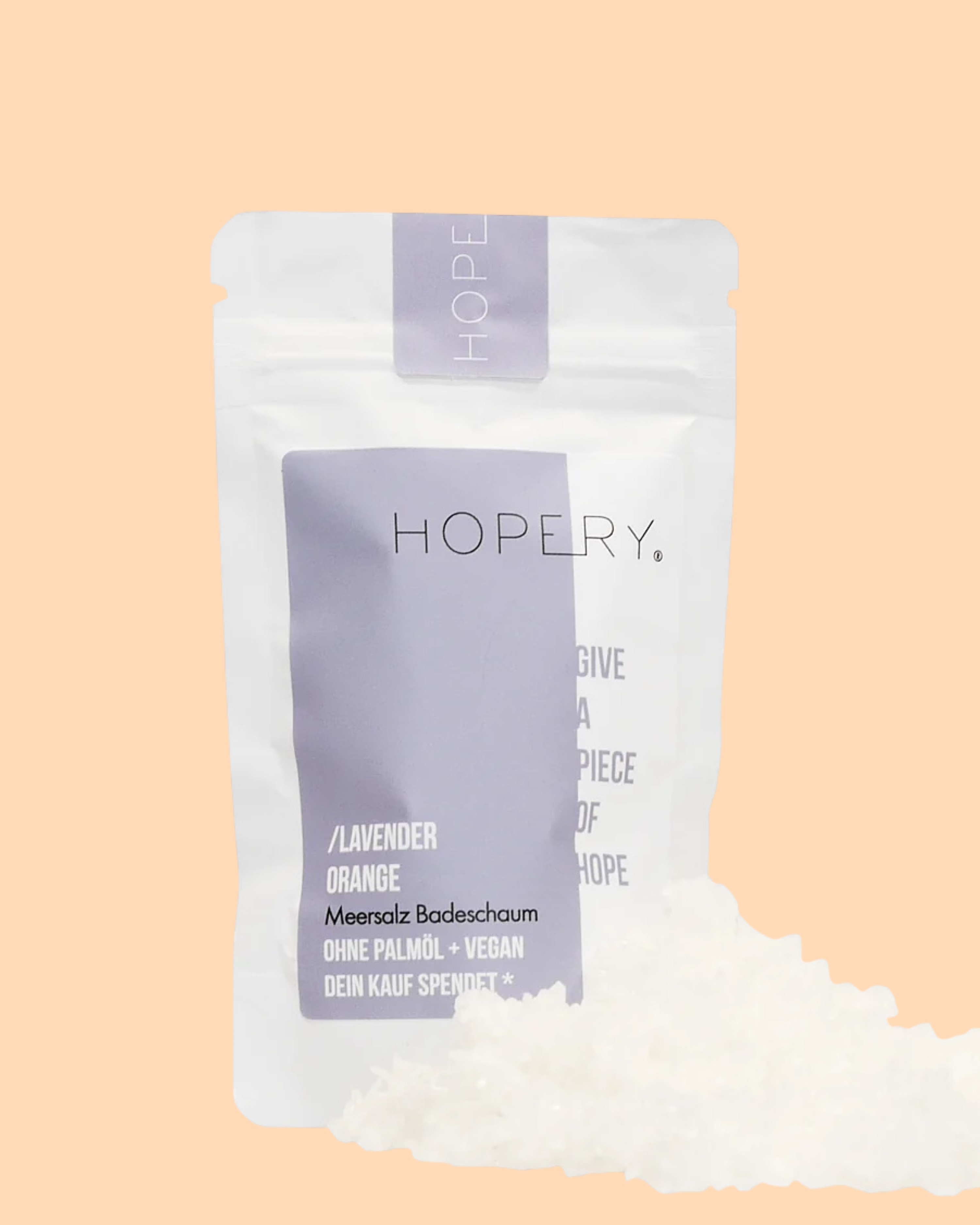 Gönn dir eine Auszeit mit dem Meersalz Badeschaum Lavender Orange von Hopery! Reines Meersalz hilft, die Haut sanft von Unreinheiten zu befreien, fördert die natürliche Entgiftung und bringt den Feuchtigkeitshaushalt ins Gleichgewicht. Bio-Arganöl und ätherische Öle pflegen intensiv – der zarte Schaum umhüllt dich mit wohltuender Wärme und Ruhe. Gib 1-2 Eßlöffel in das einlaufende Badewasser und genieße den gemütlichen Duft von Lavendel und Orangen! :)