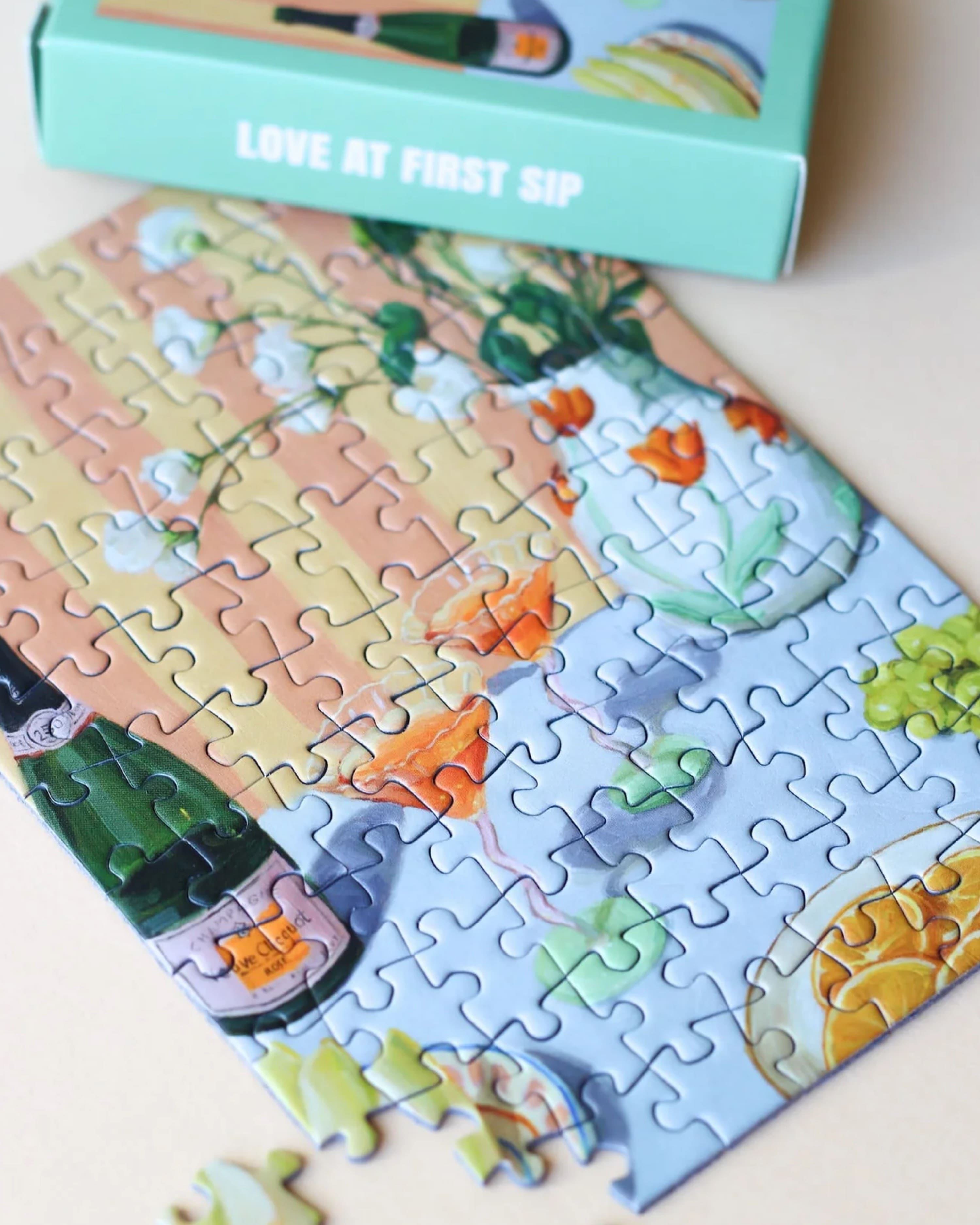 Das Mini-Puzzle Love at First Sip 99 Teile von Piecely ist das perfekt Geschenk für alle, die auch unterwegs oder auf Reisen nicht aufs Puzzeln verzichten möchten. Puzzeln ist eine schöne Beschäftigung um wieder mehr im Hier und Jetzt zu sein, einfach mal Entschleunigen, den Kopf frei kriegen - lieben wir! Achtung: Nicht für Kinder unter drei Jahren geeignet wegen verschluckbarer Kleinteile, Erstickungsgefahr.