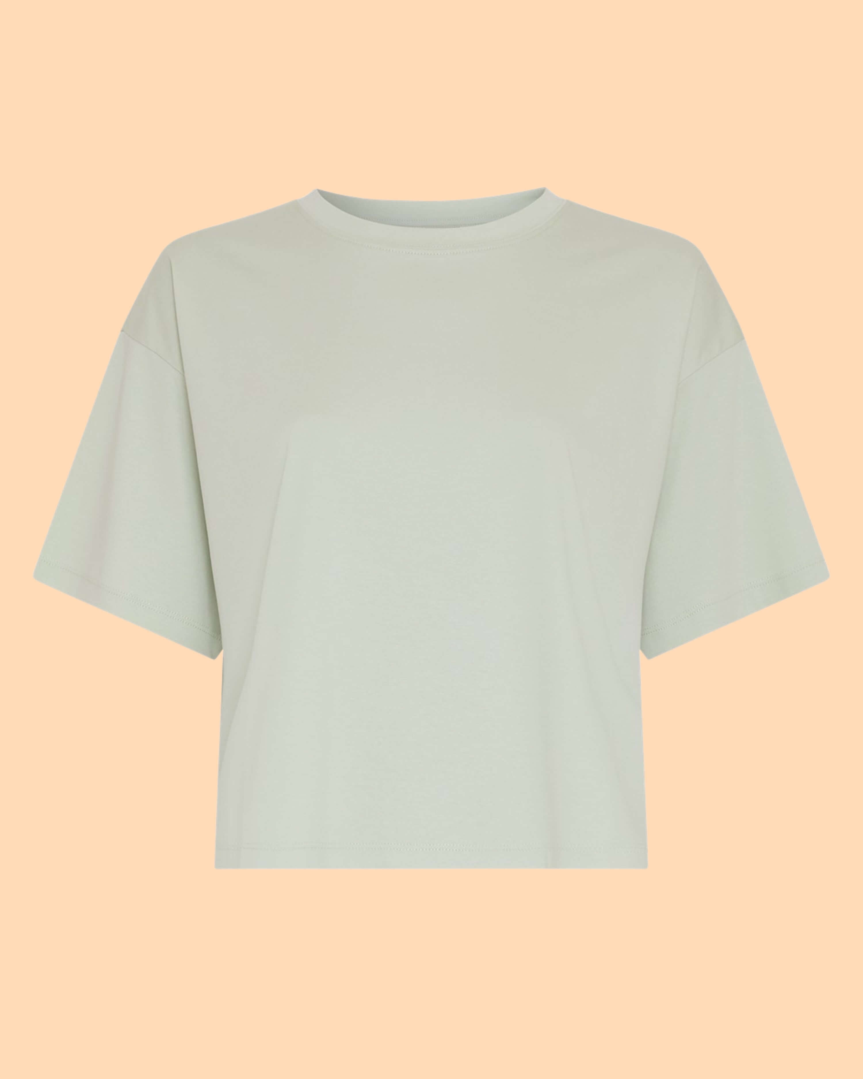 Das Moa Melea Tee Bok Choy von MSCH COPENHAGEN ist ein kastenförmig geschnittenes Basic-T-Shirt. Es hat einen klassischen Rundhalsausschnitt und überschnittene Schultern.