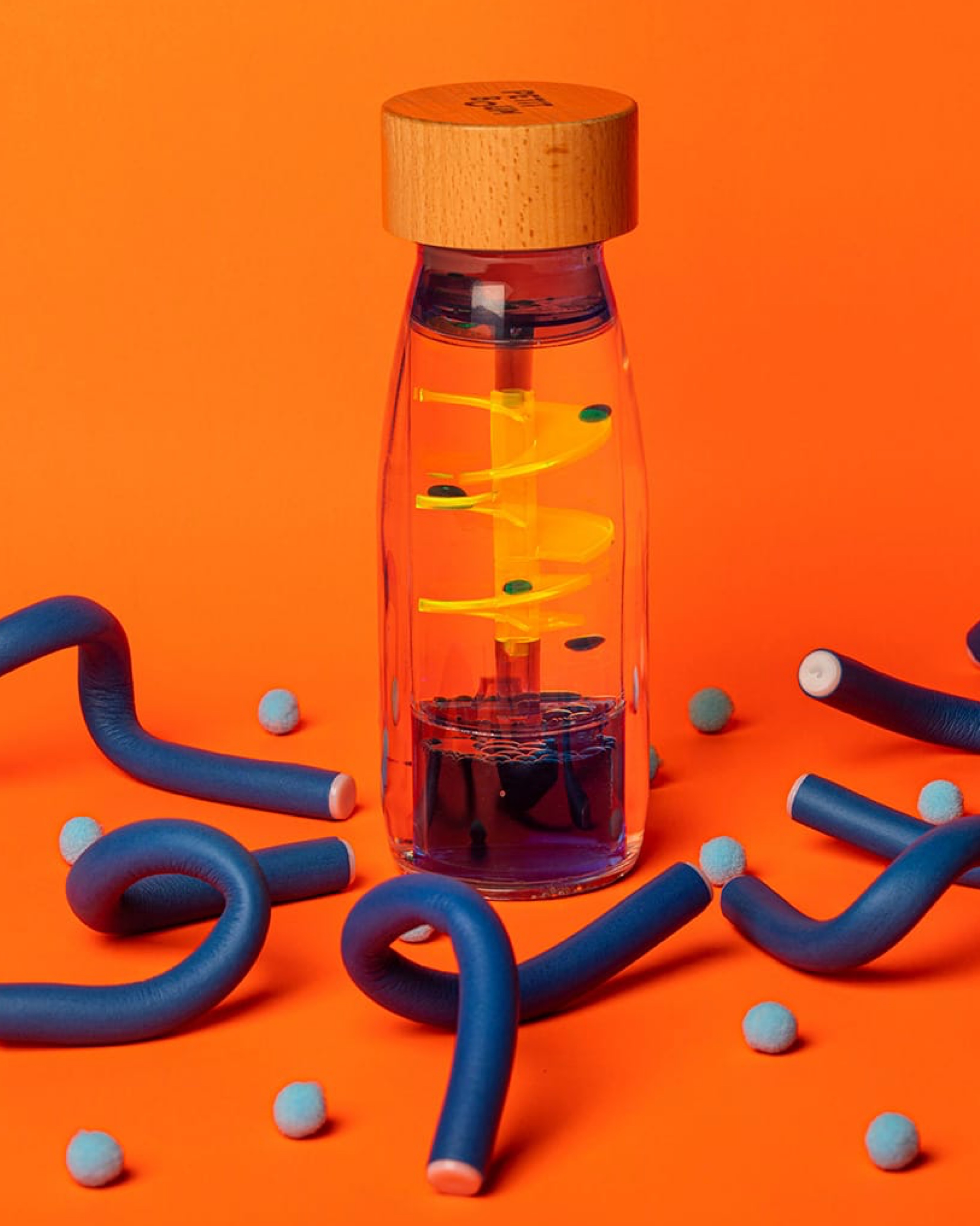 Die Move Bottle Spiral Blue - ein sanfter visueller Tanz aus bunten Tropfen regt die Sinne an und fördert Entspannung und Freude bei den Kleinen. Träumereien zum Schweben. Wie wäre es, Zeit und Ruhe in einer Flasche einzufangen? Mit dieser Serie wollte Petit Boum es herausfinden. Jedes Mal, wenn Sie die Flasche drehen, beginnt die Reise! Magische Tropfen bilden sich und beginnen zu tanzen, fesseln Fantasie und helfen sich zu entspannen.