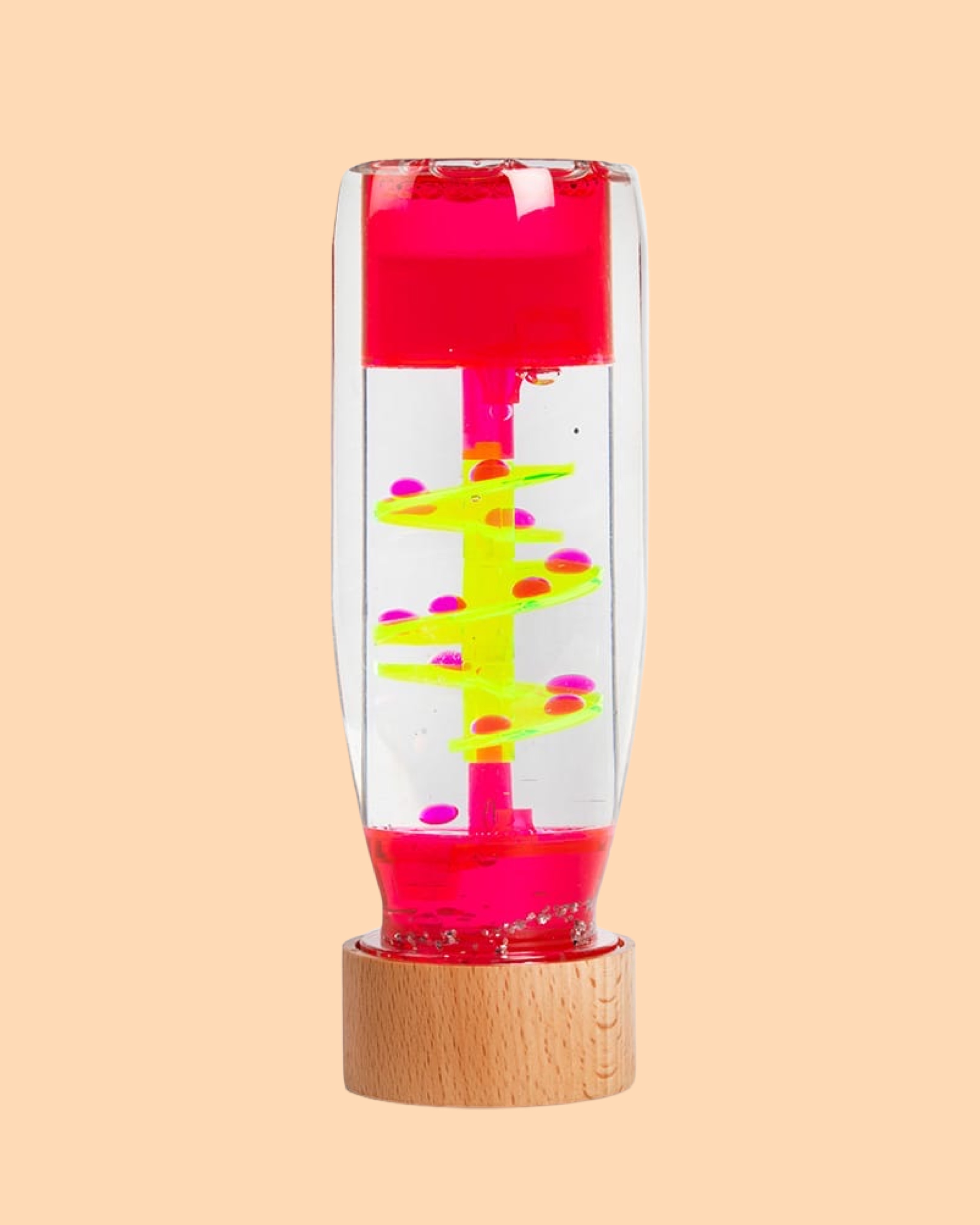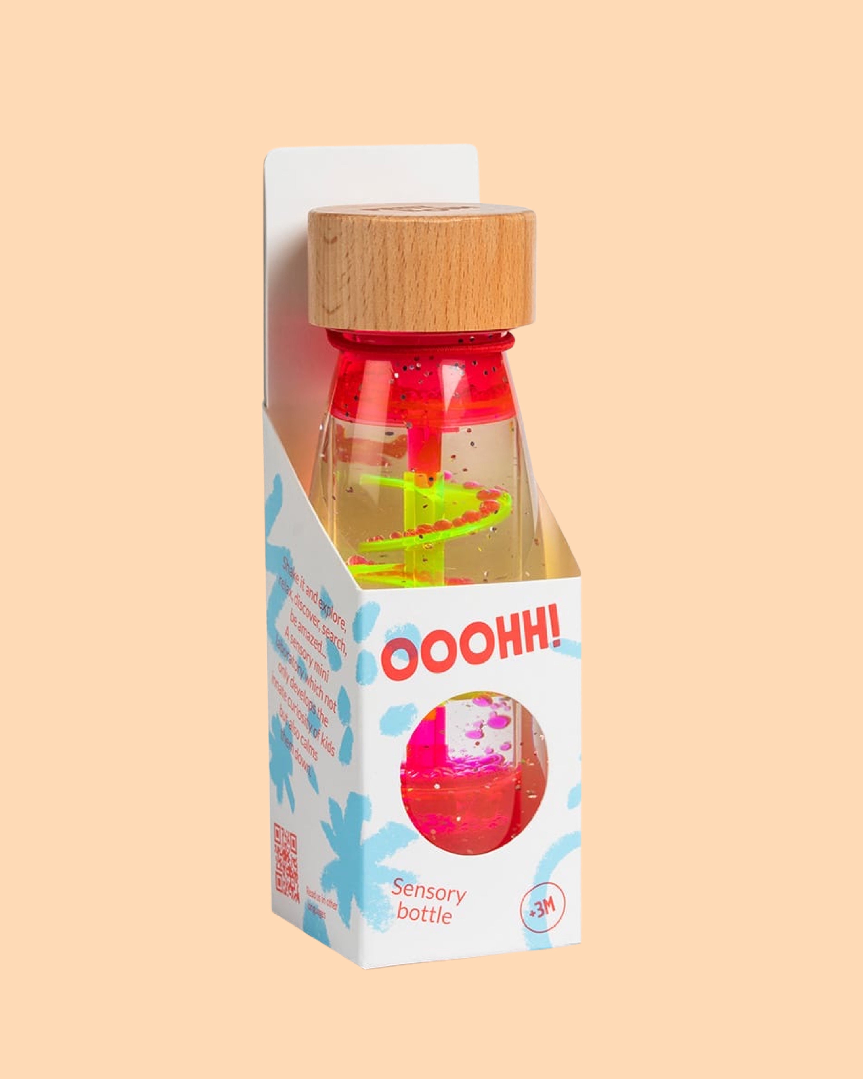 Die Move Bottle Spiral Pink - ein sanfter visueller Tanz aus bunten Tropfen regt die Sinne an und fördert Entspannung und Freude bei den Kleinen. Träumereien zum Schweben. Wie wäre es, Zeit und Ruhe in einer Flasche einzufangen? Mit dieser Serie wollte Petit Boum es herausfinden. Jedes Mal, wenn Sie die Flasche drehen, beginnt die Reise! Magische Tropfen bilden sich und beginnen zu tanzen, fesseln Fantasie und helfen sich zu entspannen.