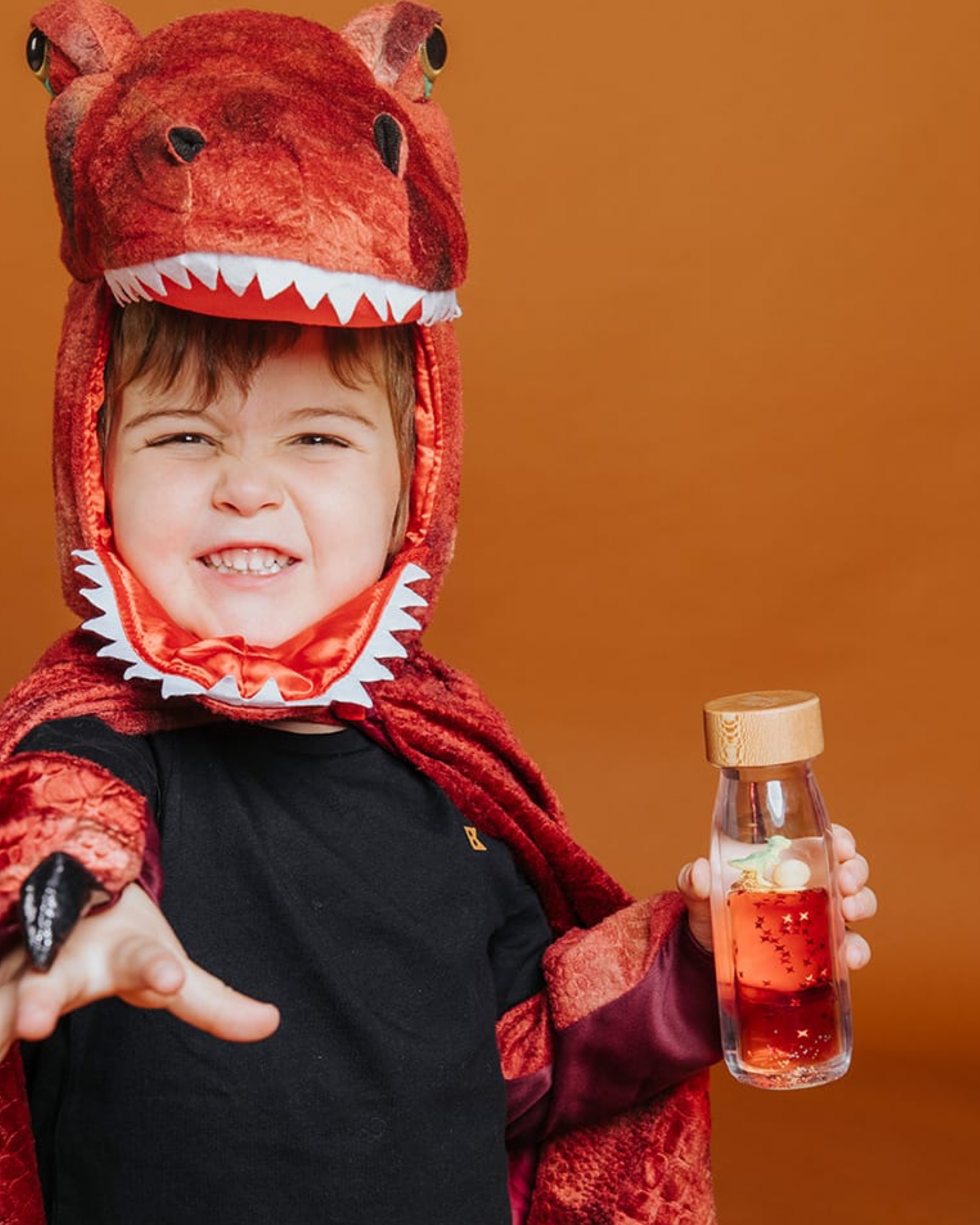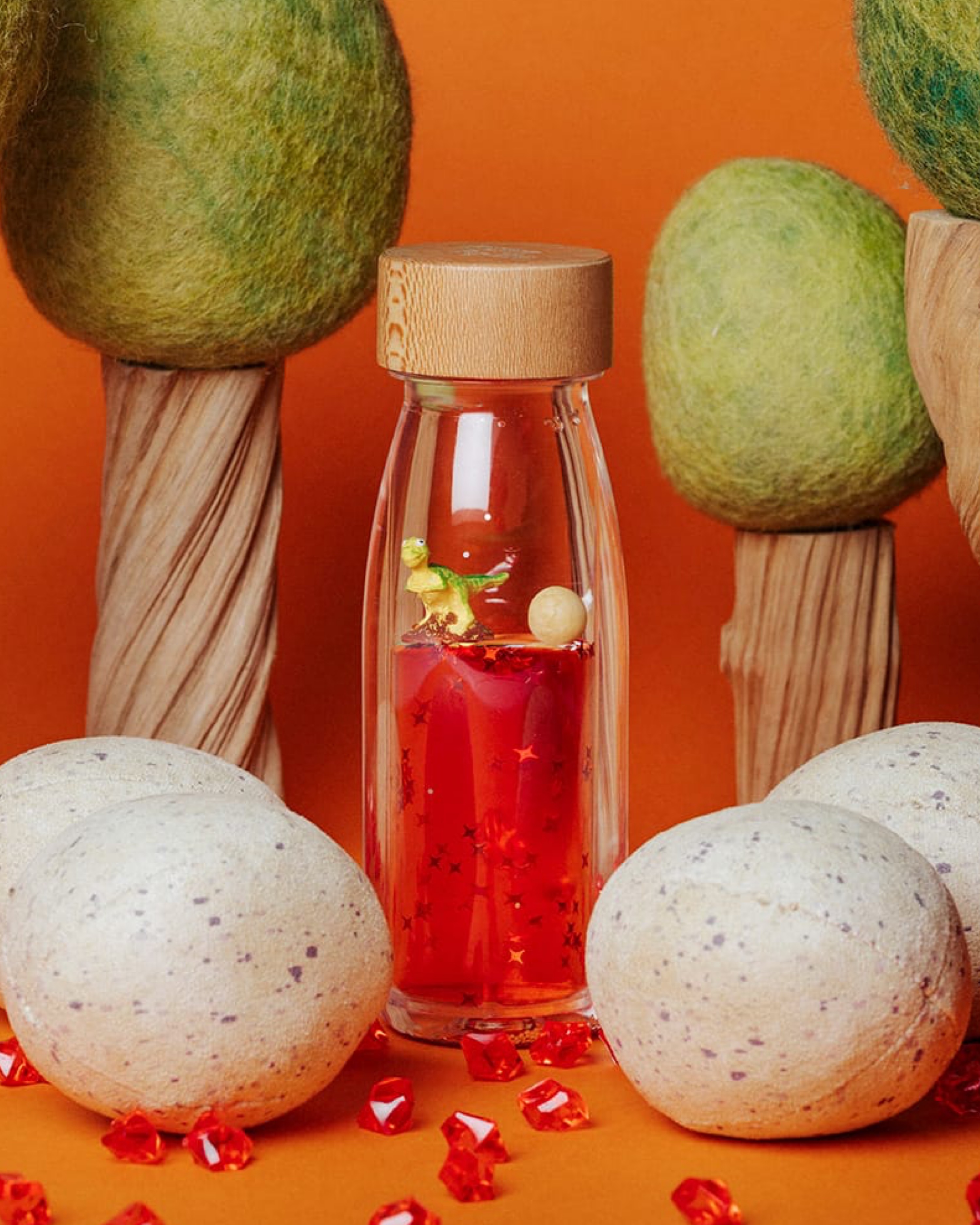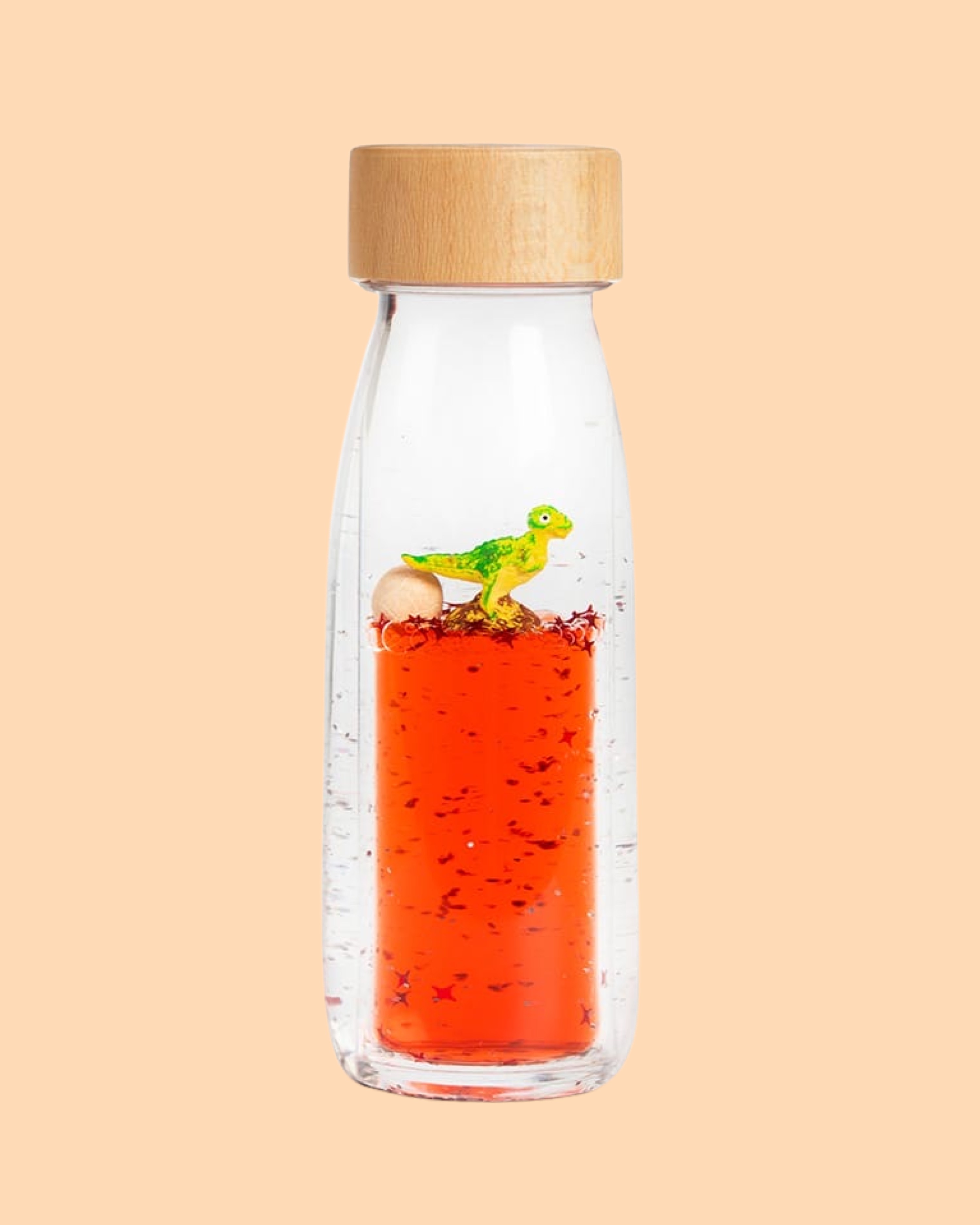 Der König der Dinosaurier ist aus seinem Ei geschlüpft und tanzt majestätisch in der Move Bottle T-Rex von Petit Boum. Träumereien vom Schweben. Wie wäre es wohl, einen Traum in einer Flasche einzufangen? Mit dieser Serie wollte Petit Boum es herausfinden. Jedes Mal, wenn man die Flasche schüttelt, beginnt die Reise! Planeten, Astronauten, Tiere beginnen mit der Veränderung der Dichte der Flüssigkeit zu schweben, in einem traumhaften Blasenmeer, das die Fantasie beflügelt und so dabei hilft, sich zu entspannen.