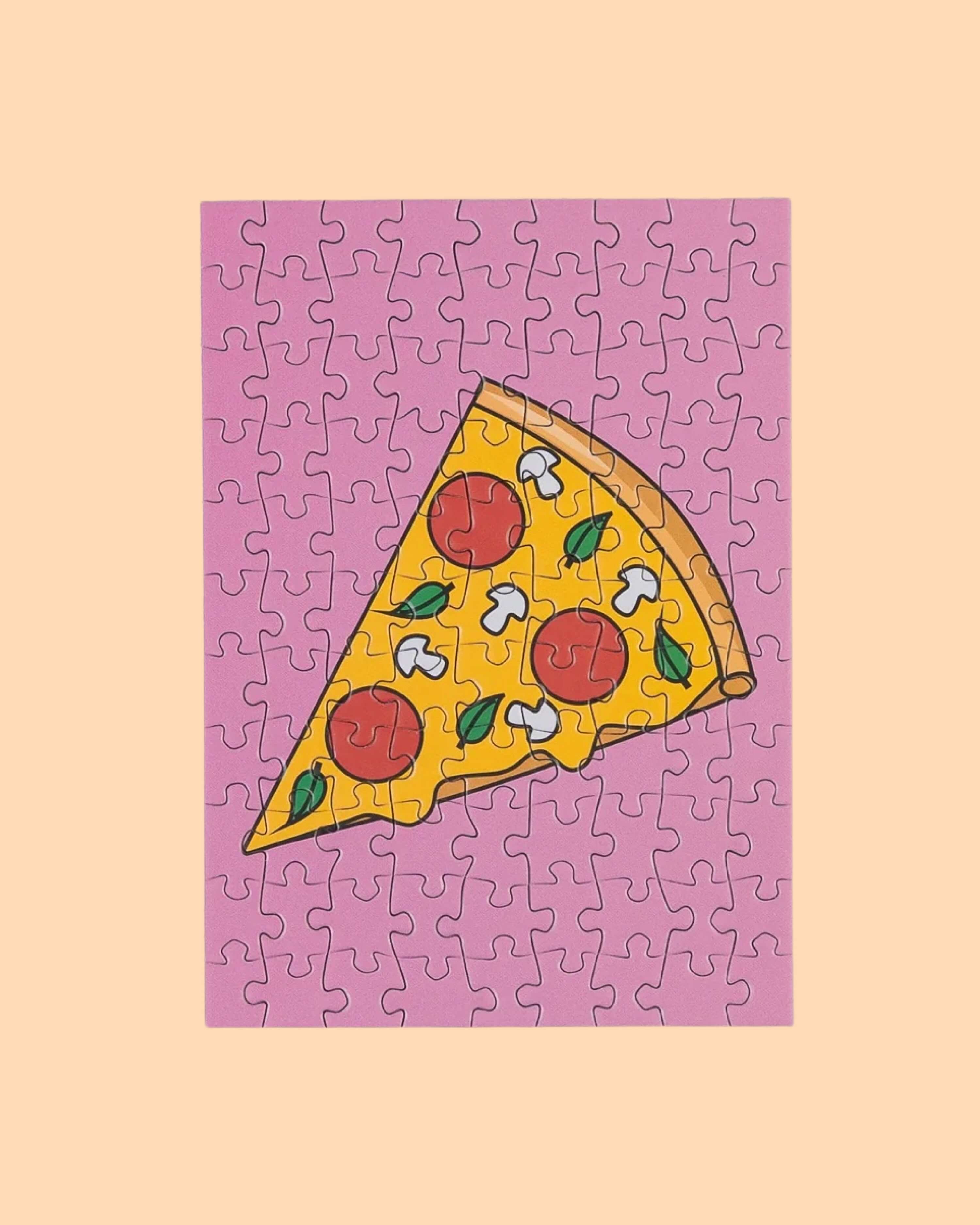 Pizza geht immer – und jetzt auch als Puzzle! Dieses Mini-Puzzle von Sunshine Puzzles im Pizza-Design ist ein echter Genuss für zwischendurch. Mit knalligen Farben, Käse, Salami, Pilzen und Basilikum-Blättern bringt es italienisches Lebensgefühl direkt auf deinen Tisch. Perfekt als Geschenkidee, Mitbringsel oder kleines Puzzle für unterwegs.