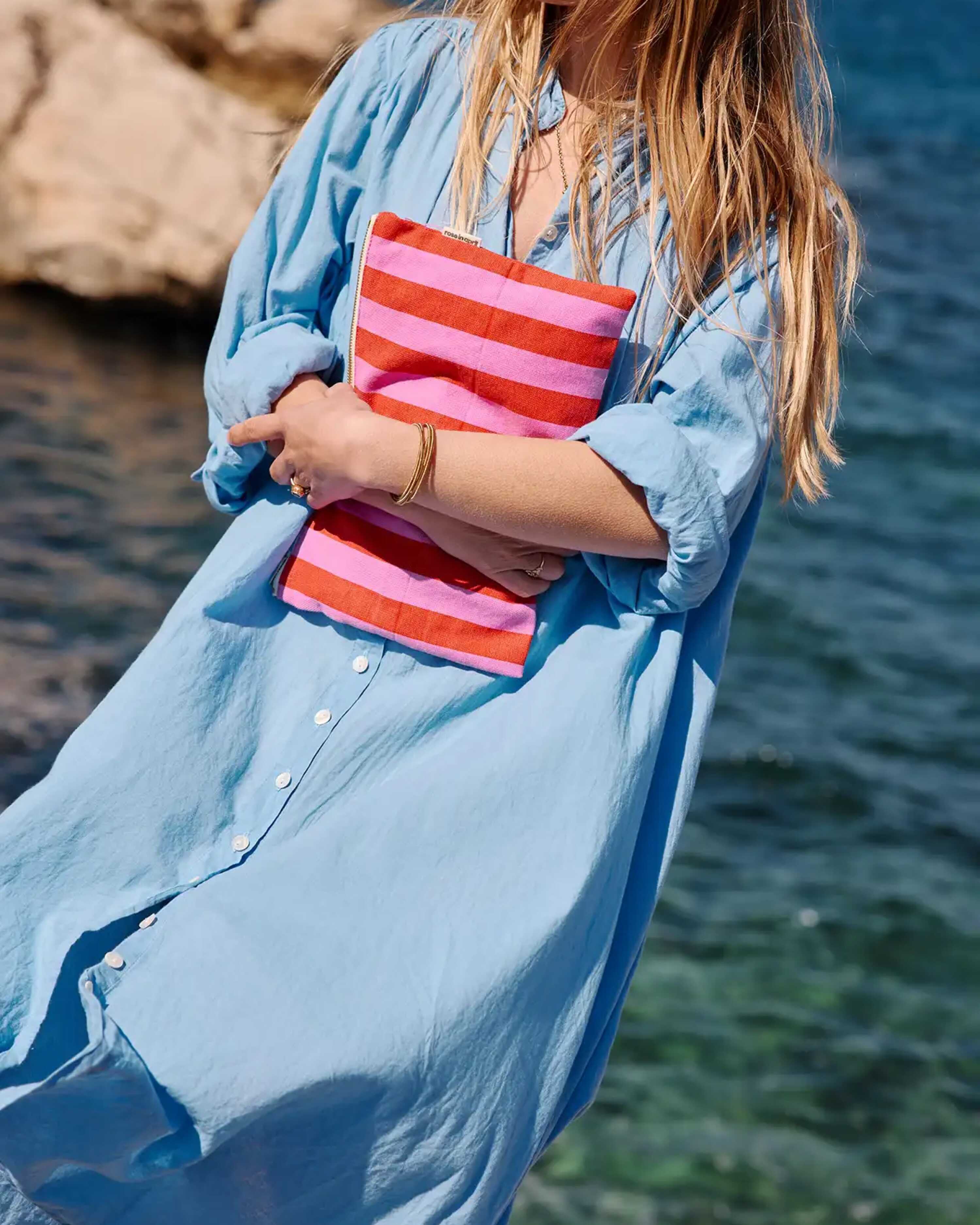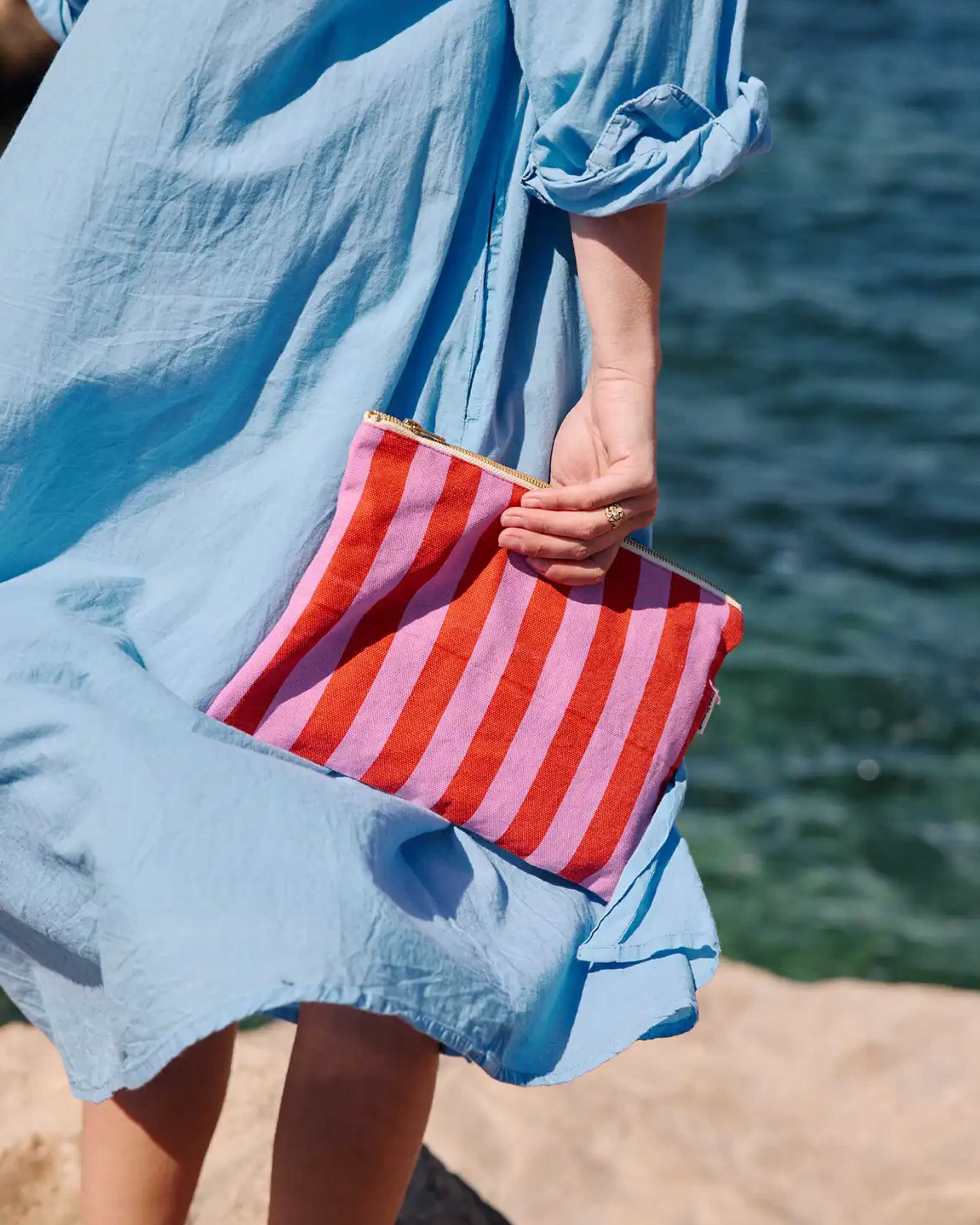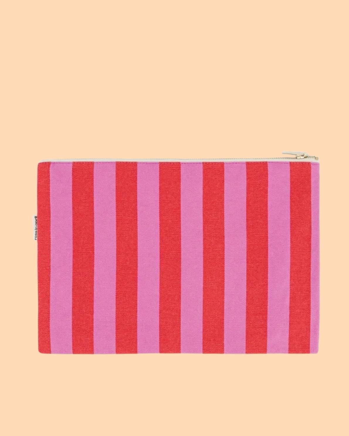 Die Pouch Lili Stripes Orchid/Red von rose in april ist nicht nur schön sondern auch praktisch denn sie ist ein echtes Raumwunder! Sie ist aus ÖKO-TEX-Baumwolle in Portugal hergestellt.