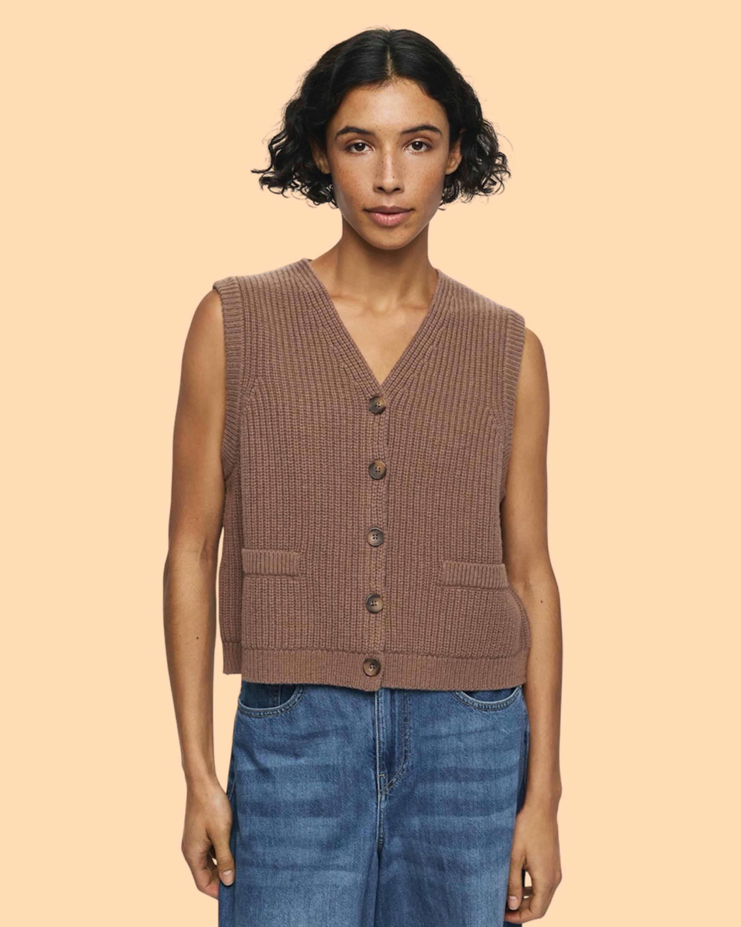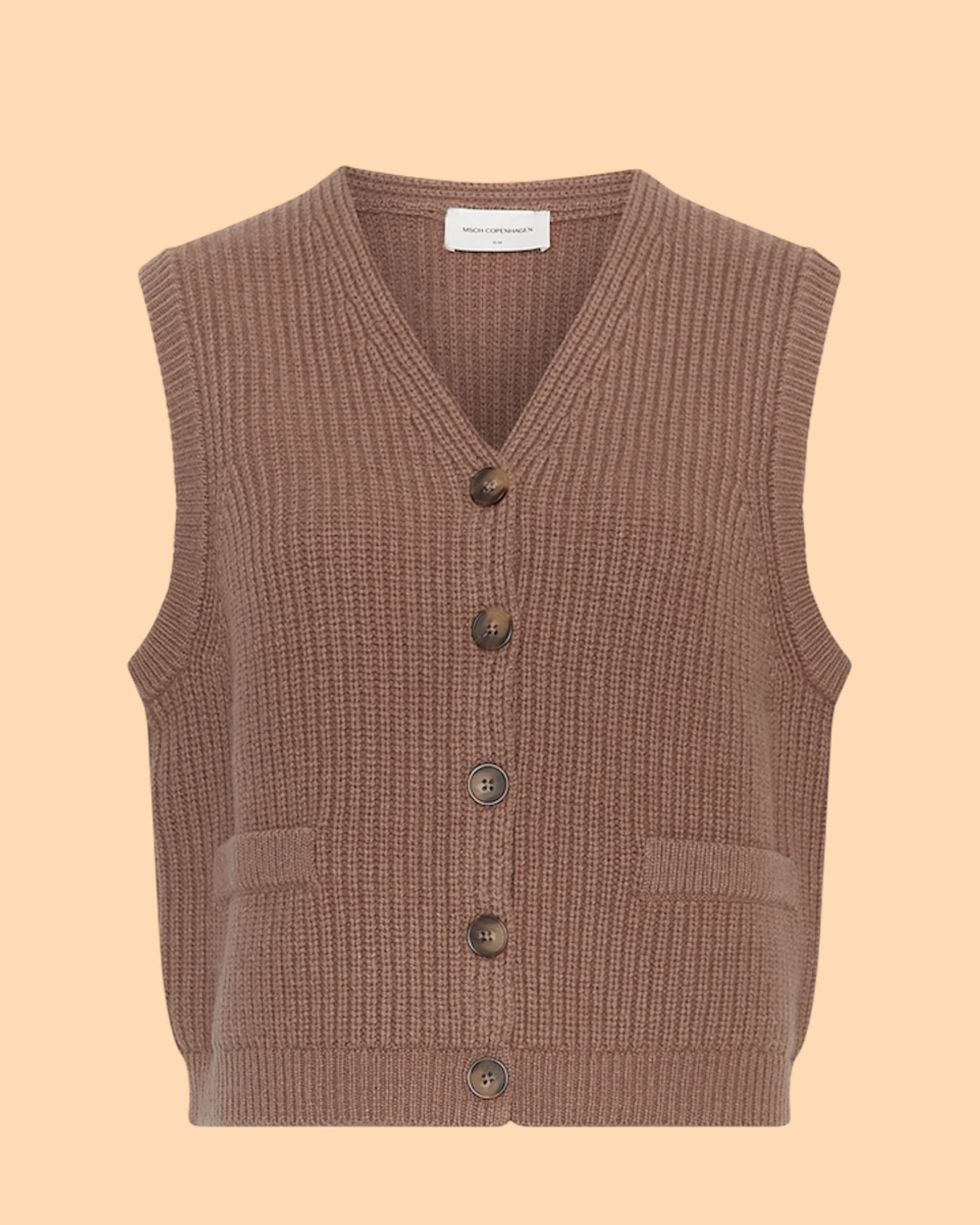 Die Riani Amaria Vest Mountain T Mel von MSCH COPENHAGEN ist eine gestrickte Weste mit einem klassischen und zeitlosen Design, V-Ausschnitt, Knopfleiste vorne und dezenten Taschen. Die strukturierte Qualität sorgt für eine elegante Optik und eignet sich ideal für Layering-Looks. Das Model ist 1,77m groß und trägt Größe S/M.