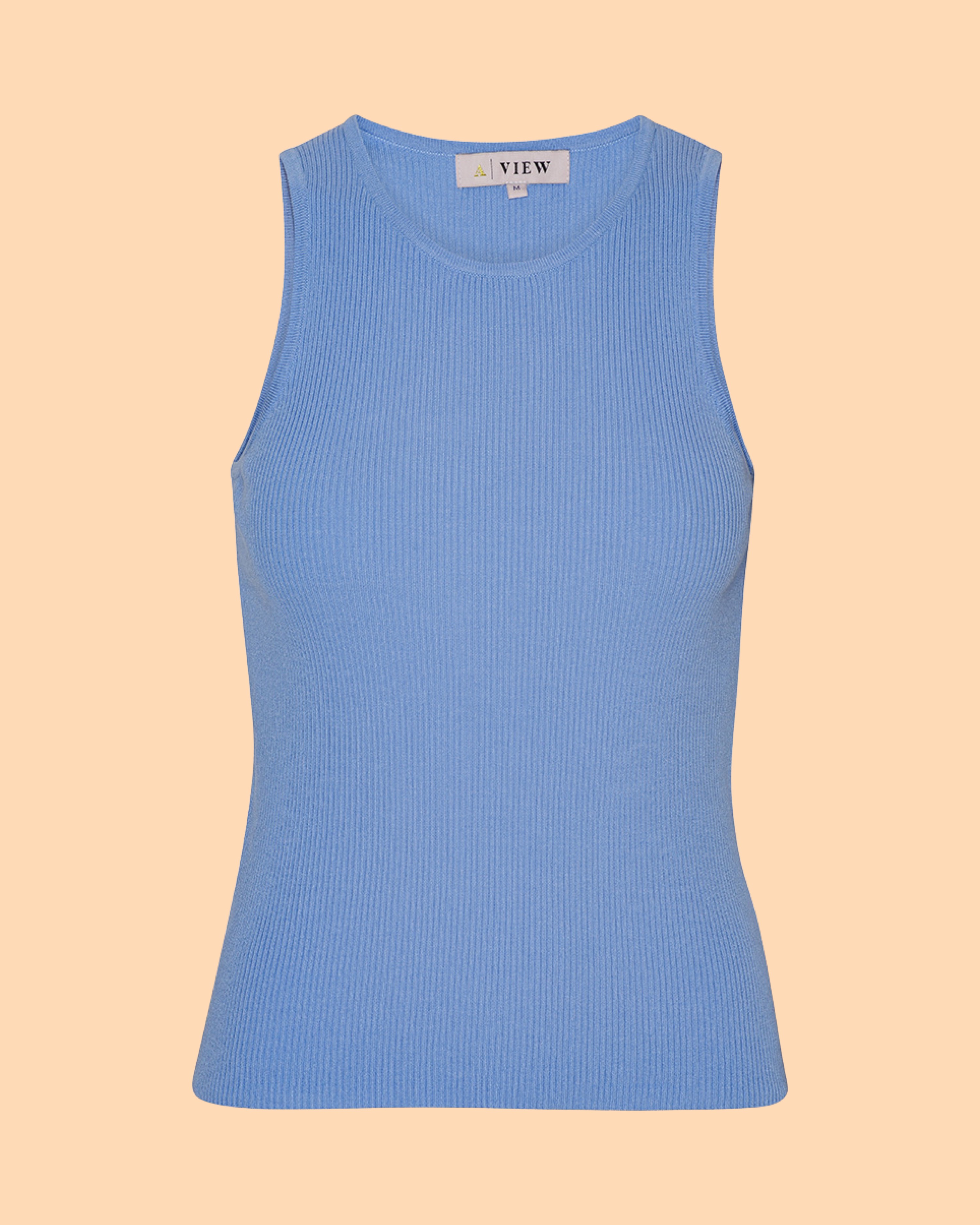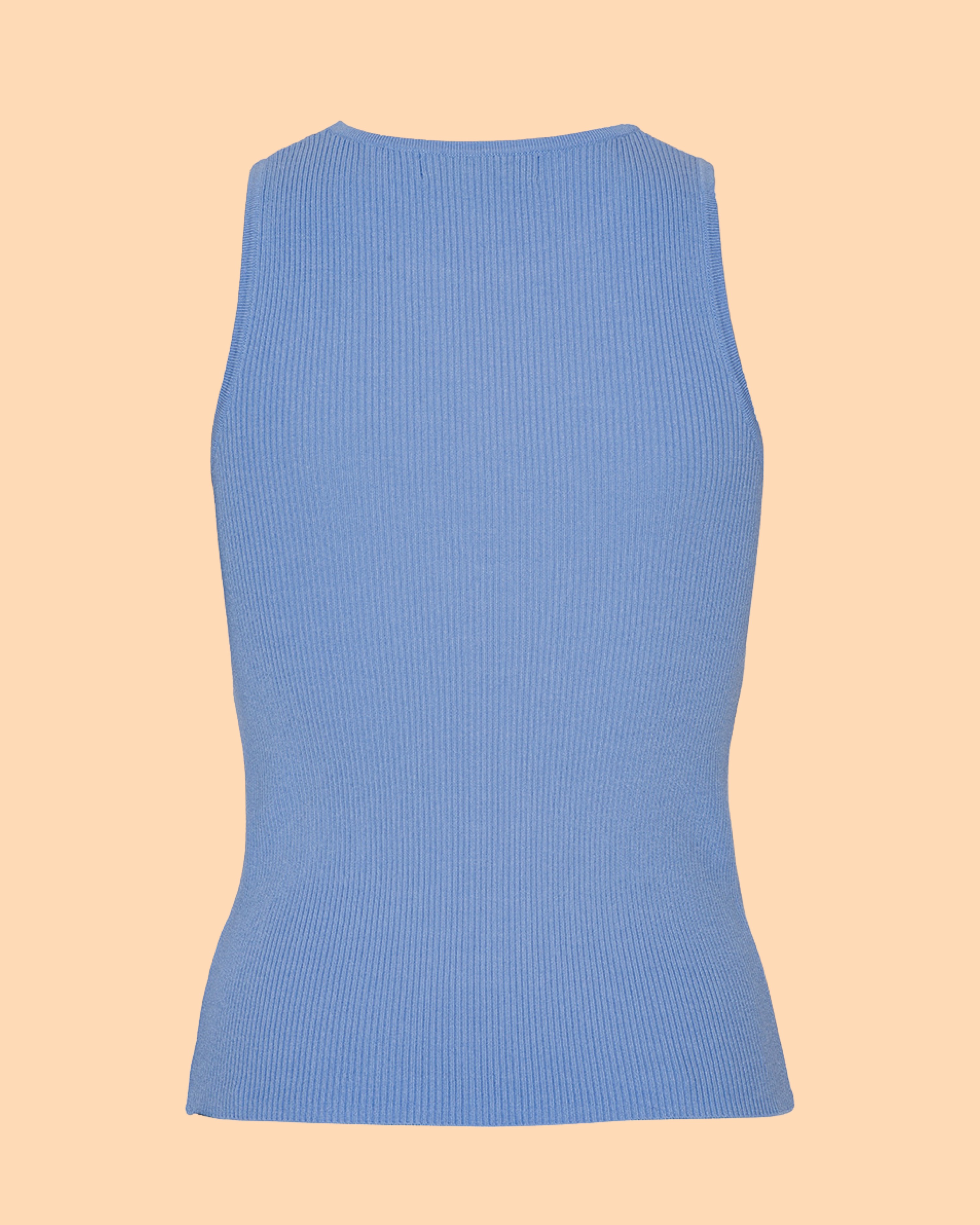 Das Rib Knit Tank Top Light Blue von A-View ist ein ist ein gestricktes Oberteil im Rippenmuster. Es hat eine figurbetonte Passform und einen Rundhalsausschnitt. Es fällt der Größe entsprechend normal aus.