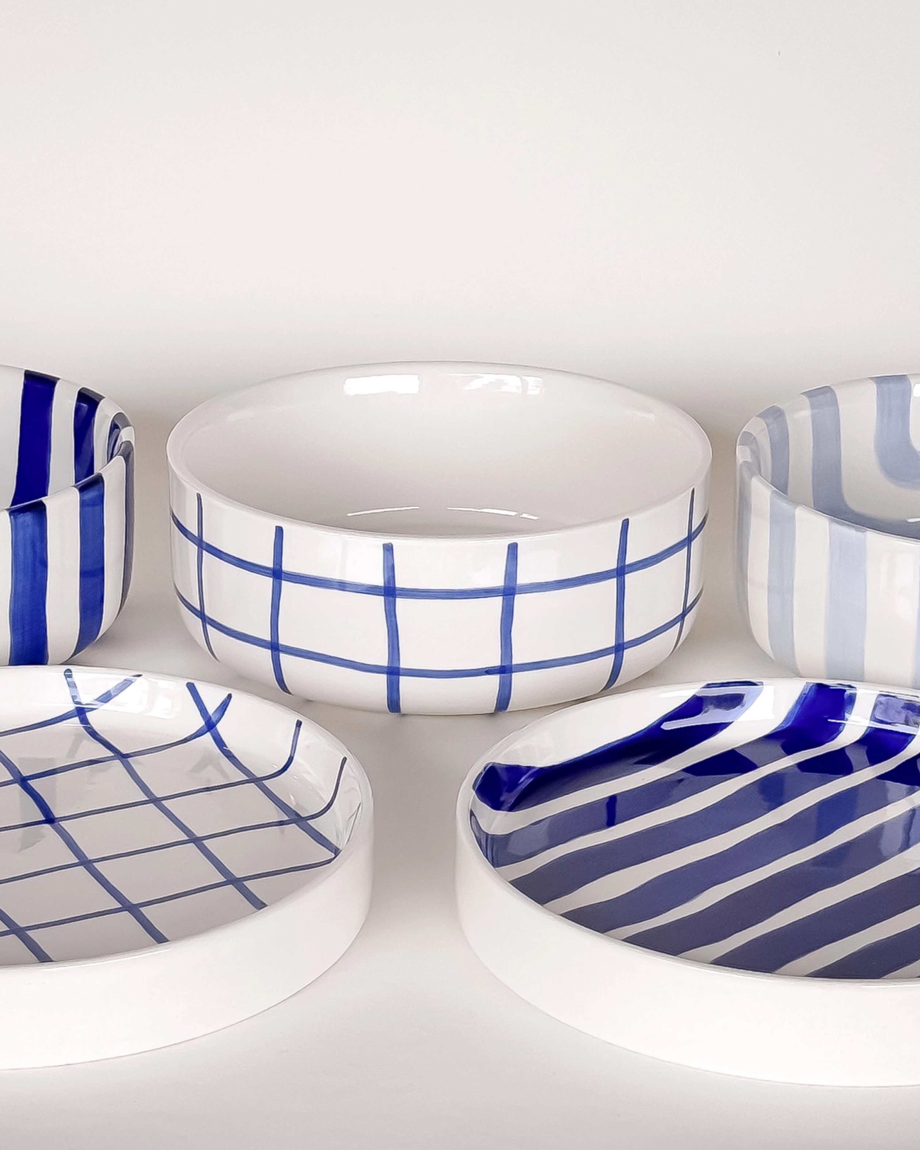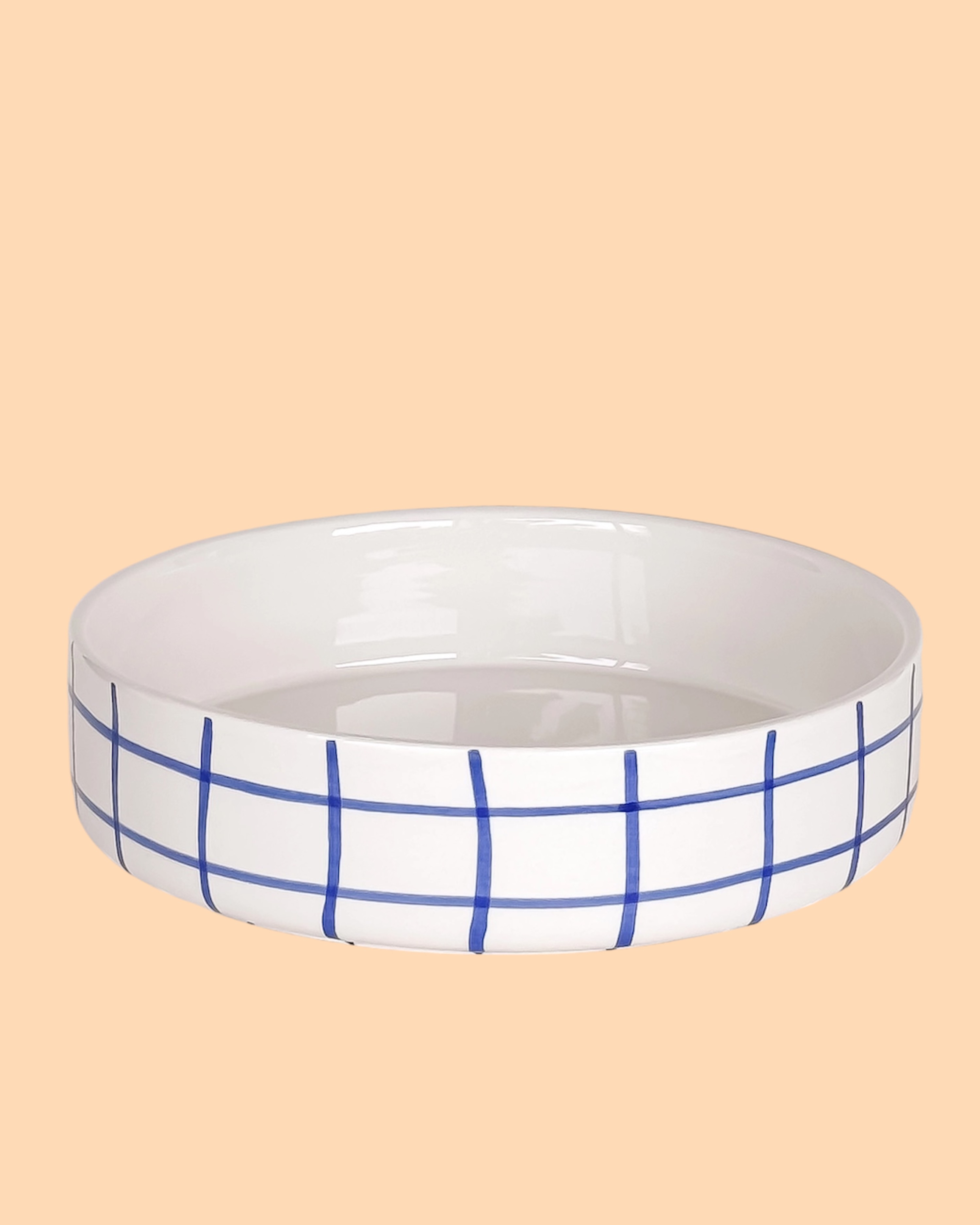 Die Schale Gross Grid Mare Blue von Magazin Minori ist aus hochwertiger Keramik und handbemalt. Sie eignet sich als Obst-, Salat- oder Servierschale und ist ein absoluter Hingucker in jedem Interior.