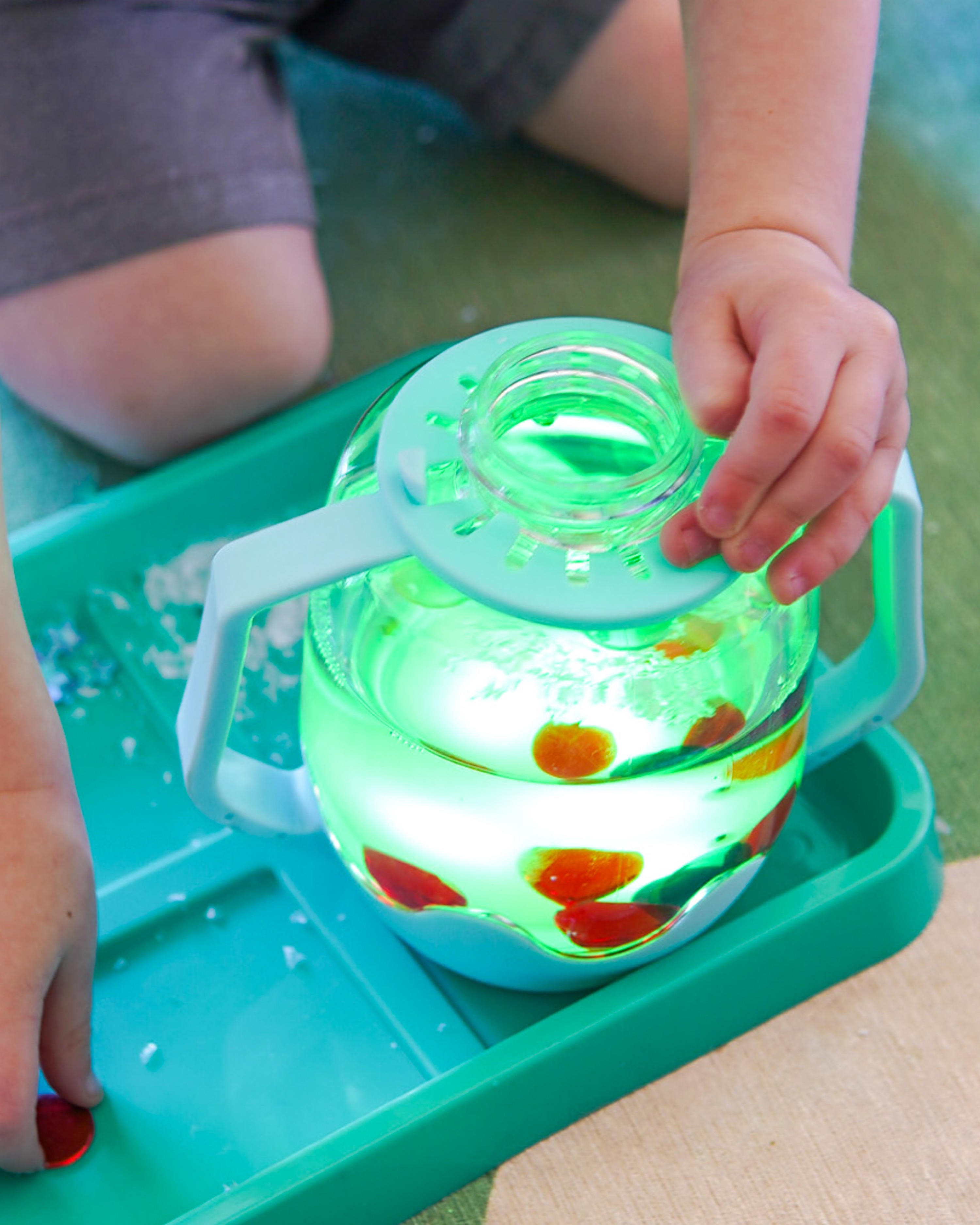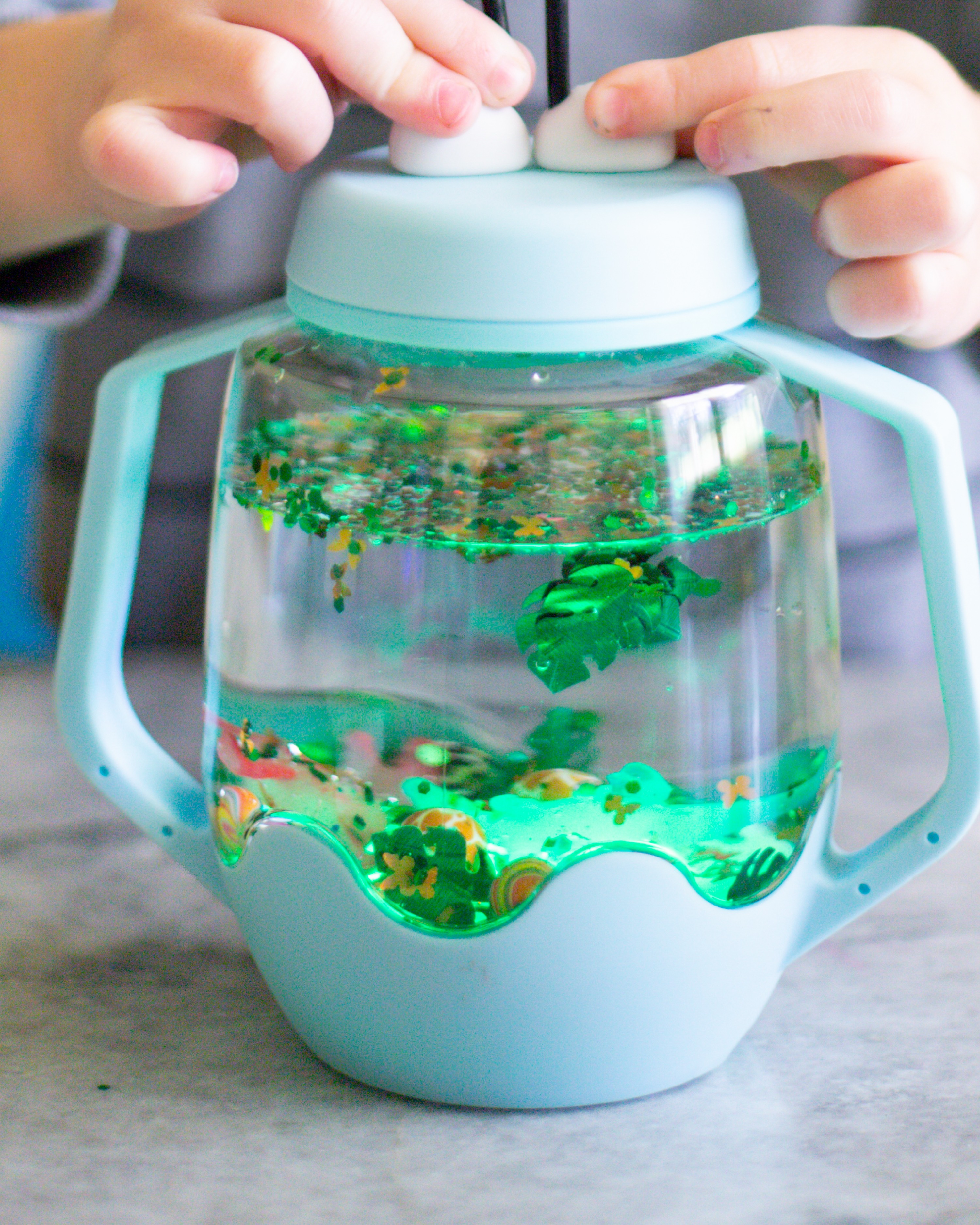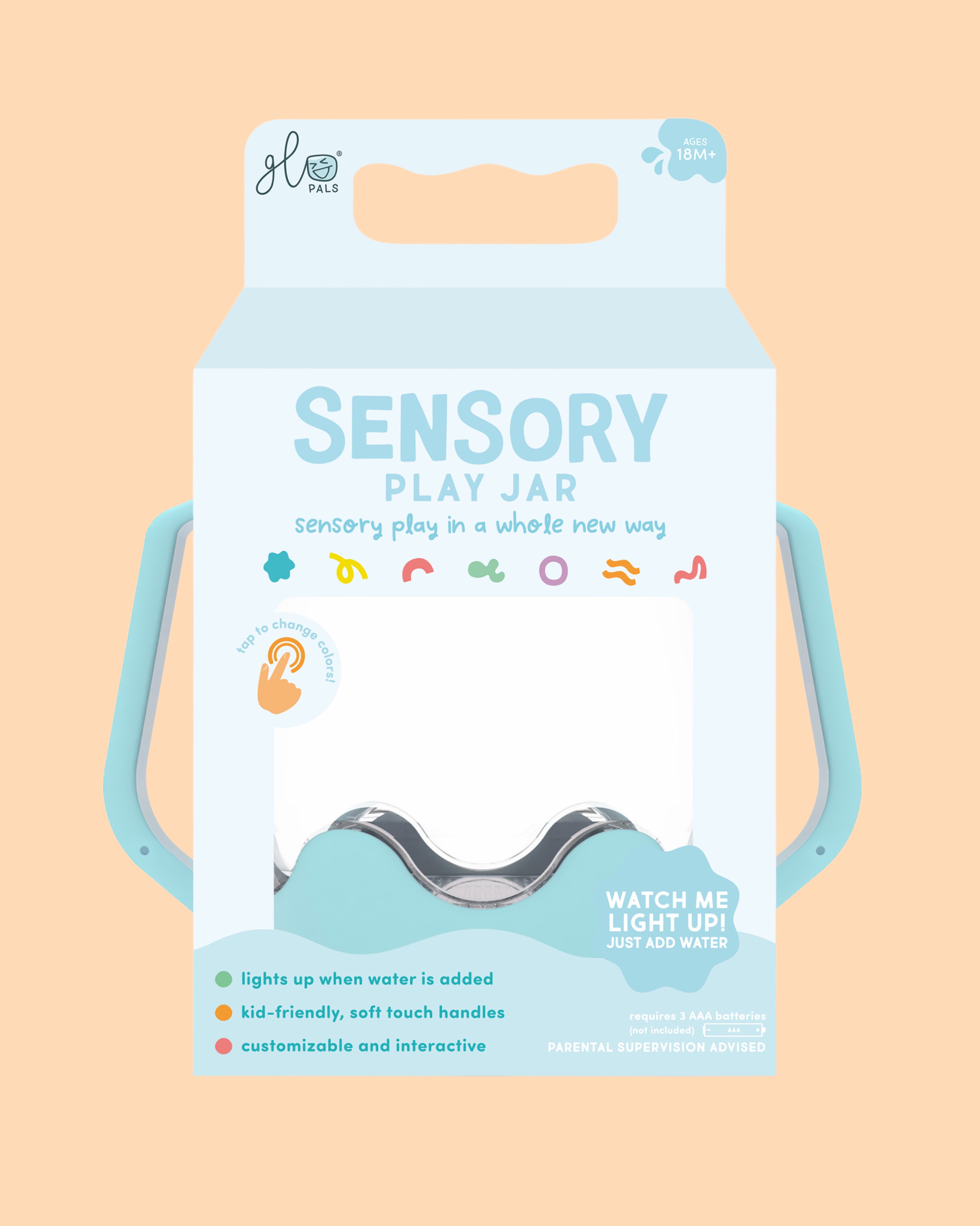 Mit dem Sensory Jar Frosty Blue von Glo Pals hat dein Lütten ein sensorisches Spielerlebnis mit Spaß und Farbe! Einfach mit Wasser füllen, schütteln, tippen – und staunen. Dieser interaktive Sensorik-Becher lädt Kinder dazu ein, Farben zu entdecken, Lichter zu beobachten und ihre eigenen kreativen Spielwelten zu gestalten.