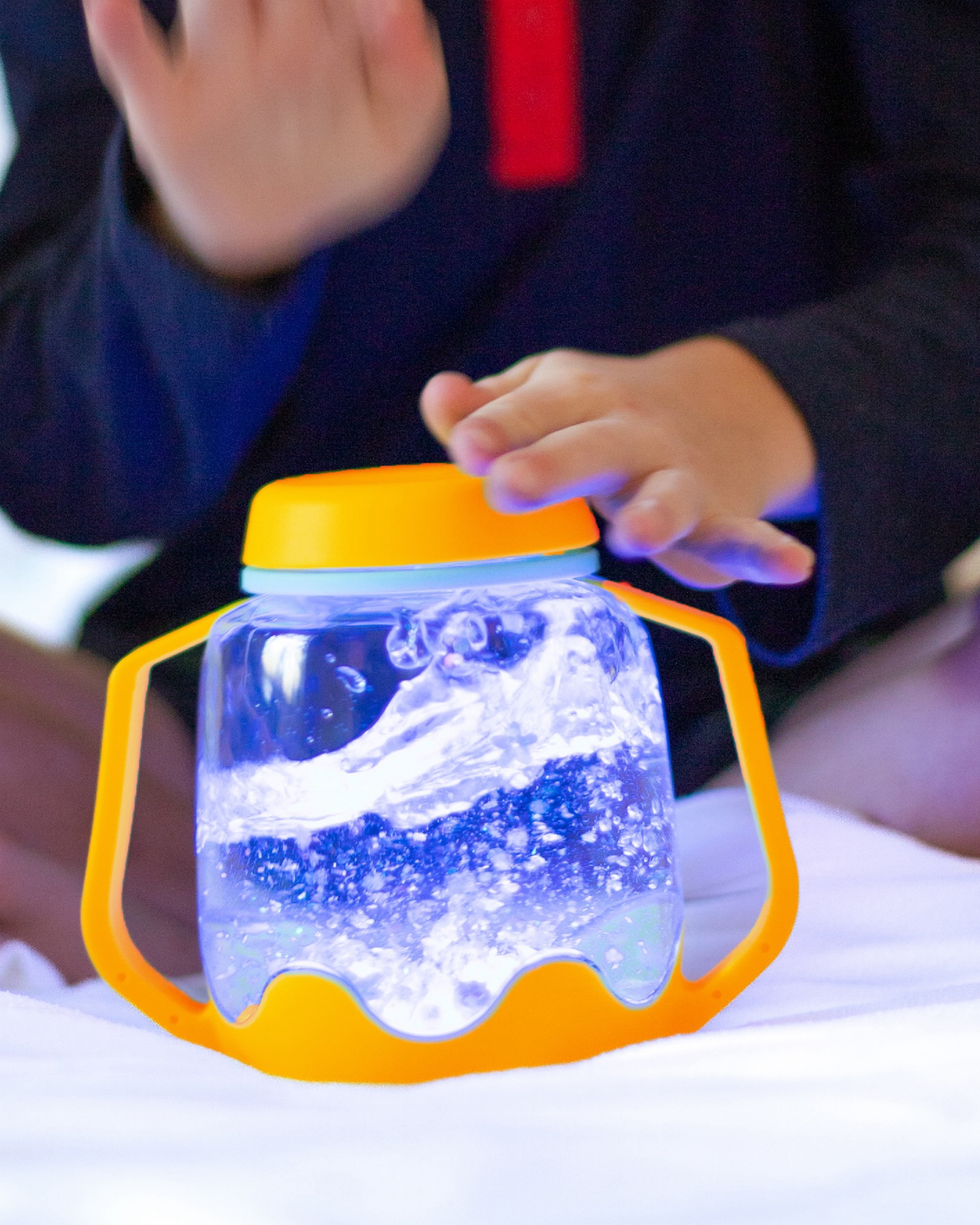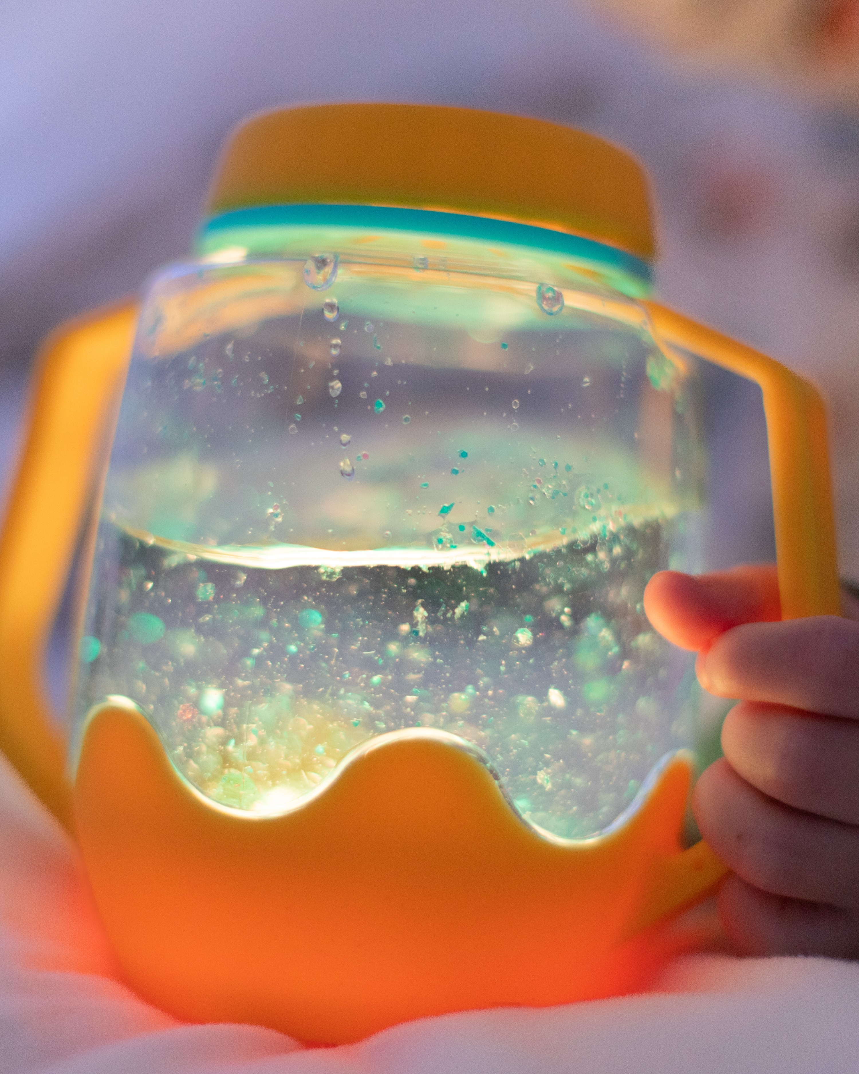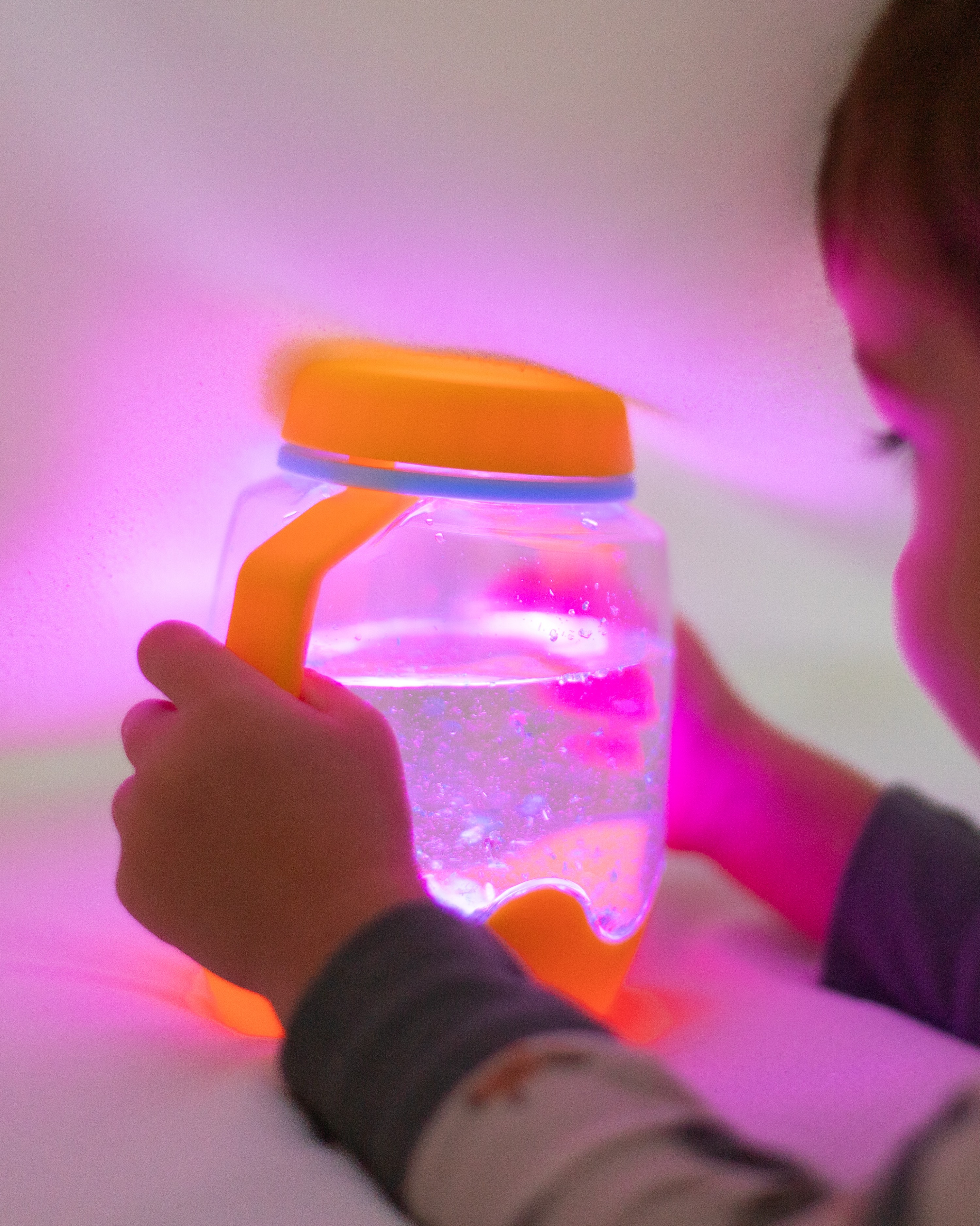 Mit dem Sensory Jar Orange von Glo Pals hat dein Lütten ein sensorisches Spielerlebnis mit Spaß und Farbe! Einfach mit Wasser füllen, schütteln, tippen – und staunen. Dieser interaktive Sensorik-Becher lädt Kinder dazu ein, Farben zu entdecken, Lichter zu beobachten und ihre eigenen kreativen Spielwelten zu gestalten.