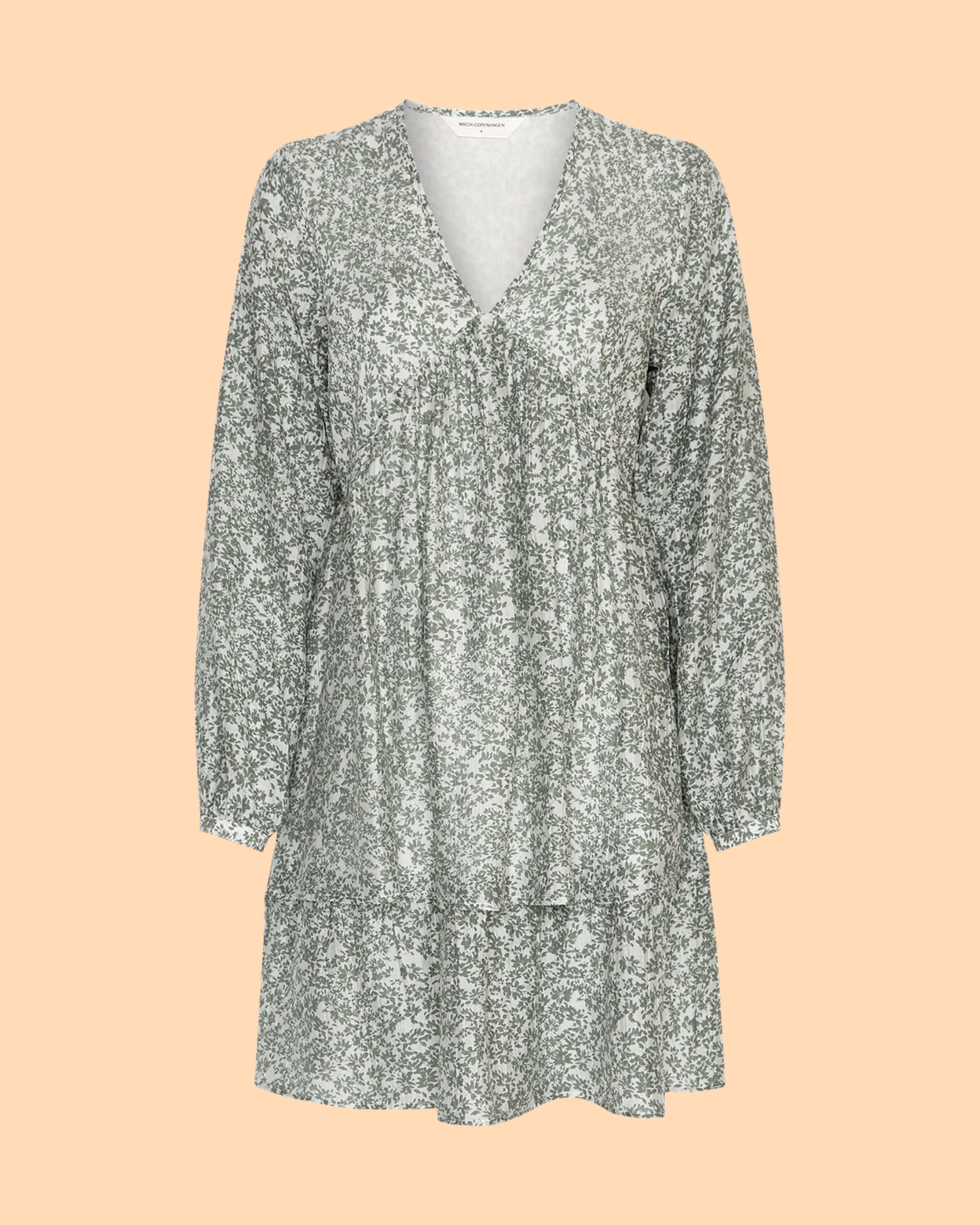 Das Seraphina Dress Egret Flower von MSCH COPENHAGEN ist ein kurzes Kleid mit All-Over Blümchenprint.