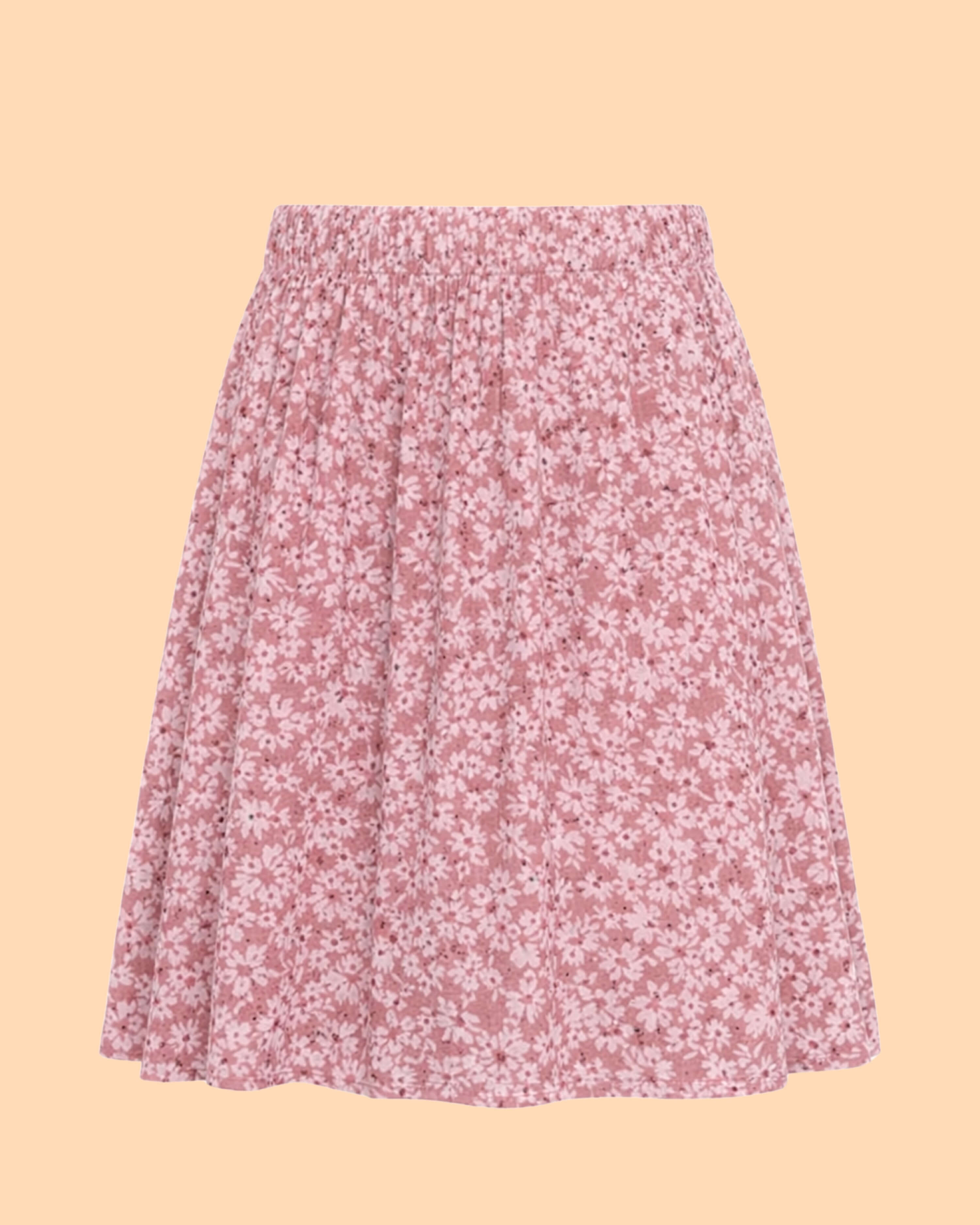Der Seraphina Skirt Rose Flower von MSCH COPENHAGEN ist ein Maxirock aus leichter Webqualität mit Allover-Blumenprint, hoher Taille und breitem elastischem Bund.