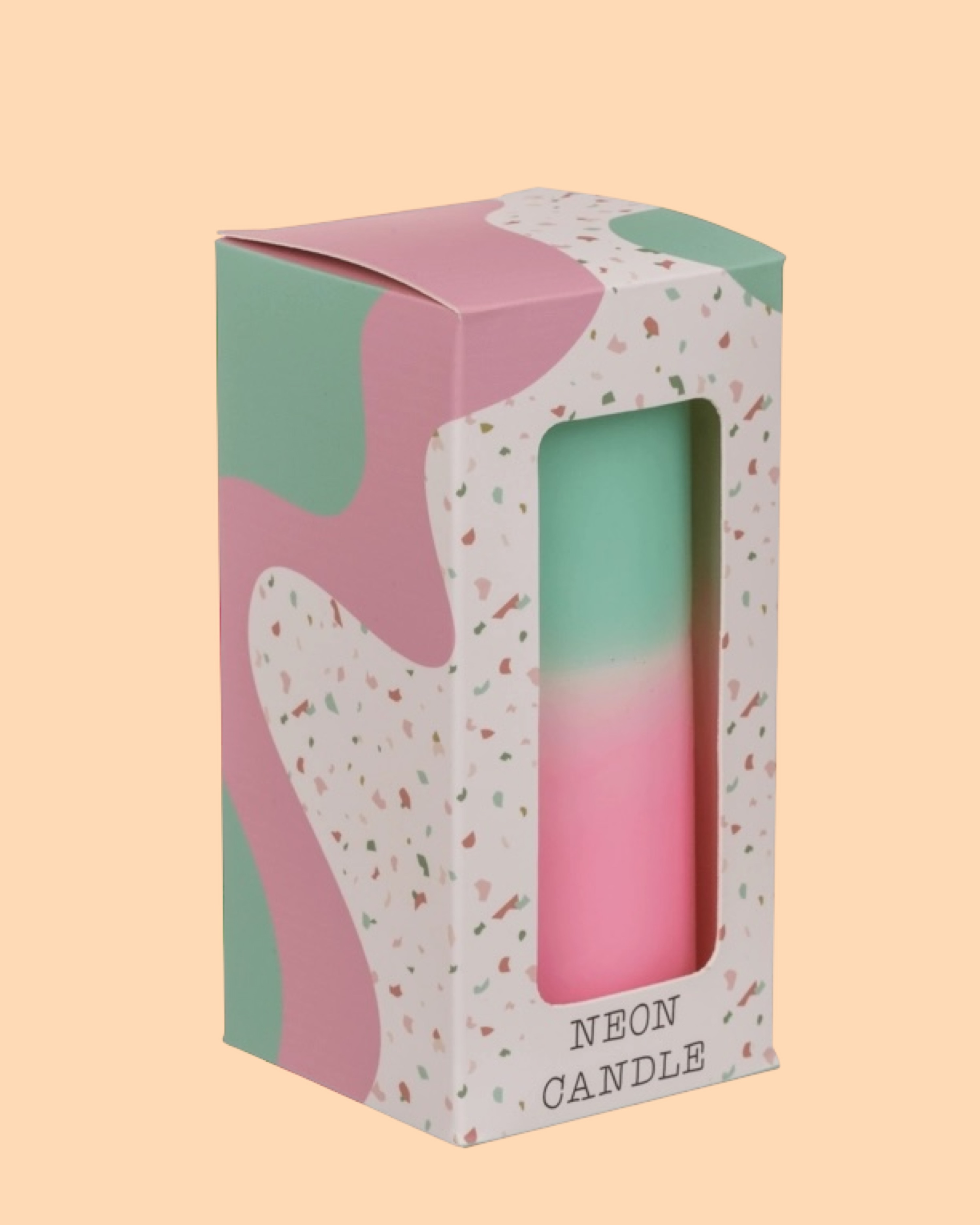Die Stumpenkerze mit Farbverlauf mint/rosa ist ein Hingucker und auch ein tolles Geschenk für Designliebhaber.