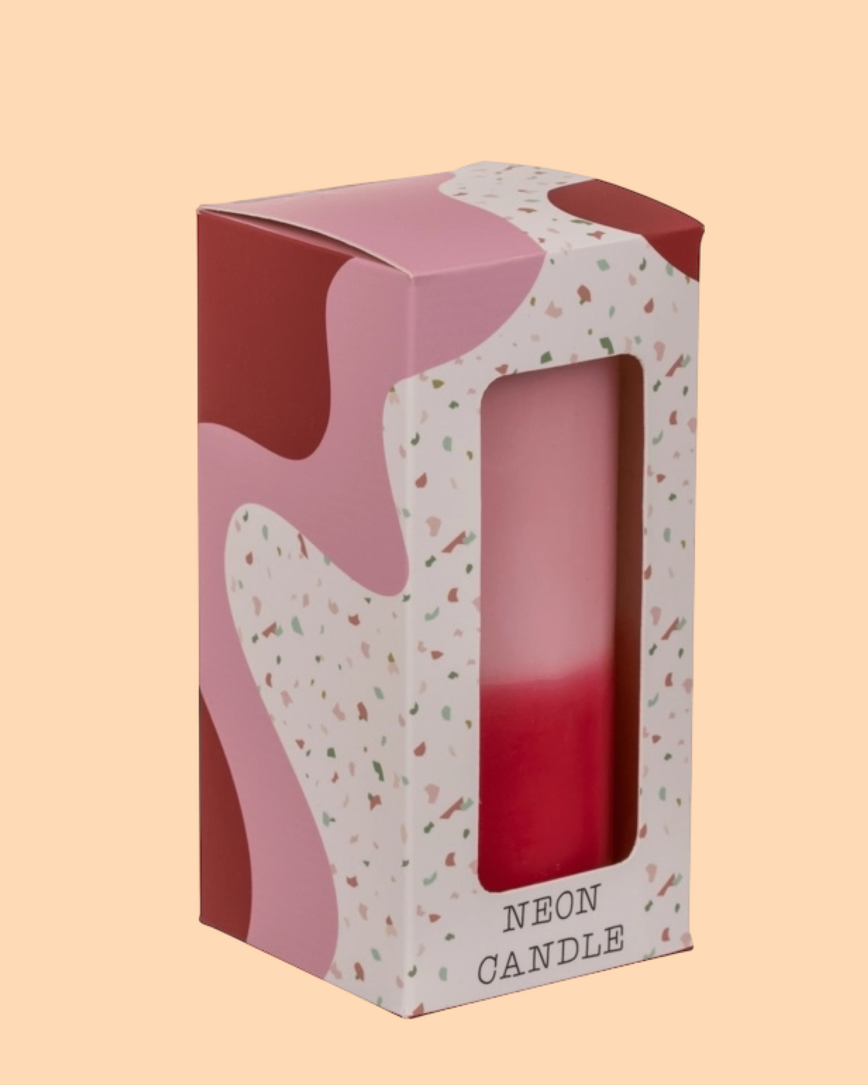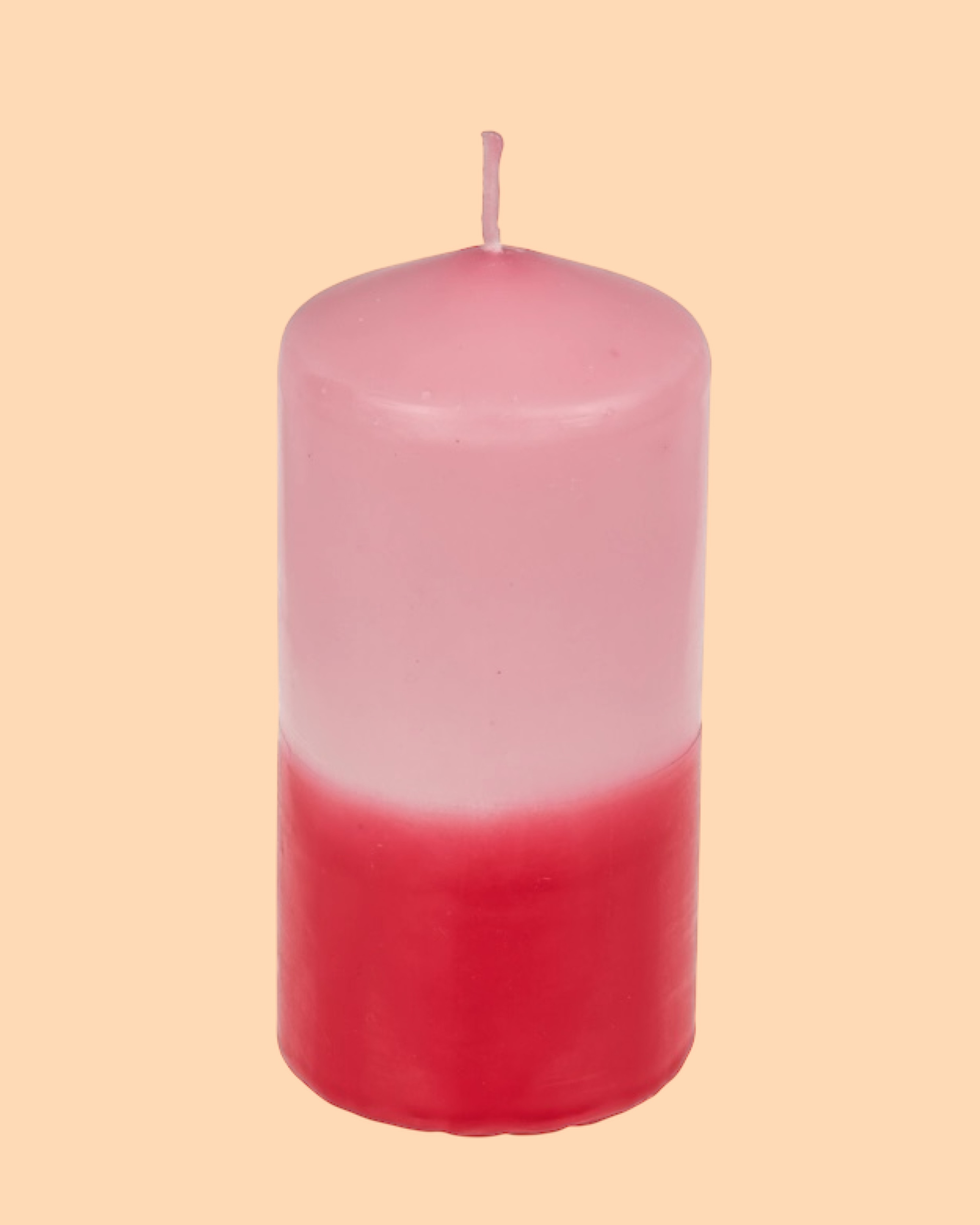 Die Stumpenkerze mit Farbverlauf rosa/rot ist ein Hingucker und auch ein tolles Geschenk für Designliebhaber.