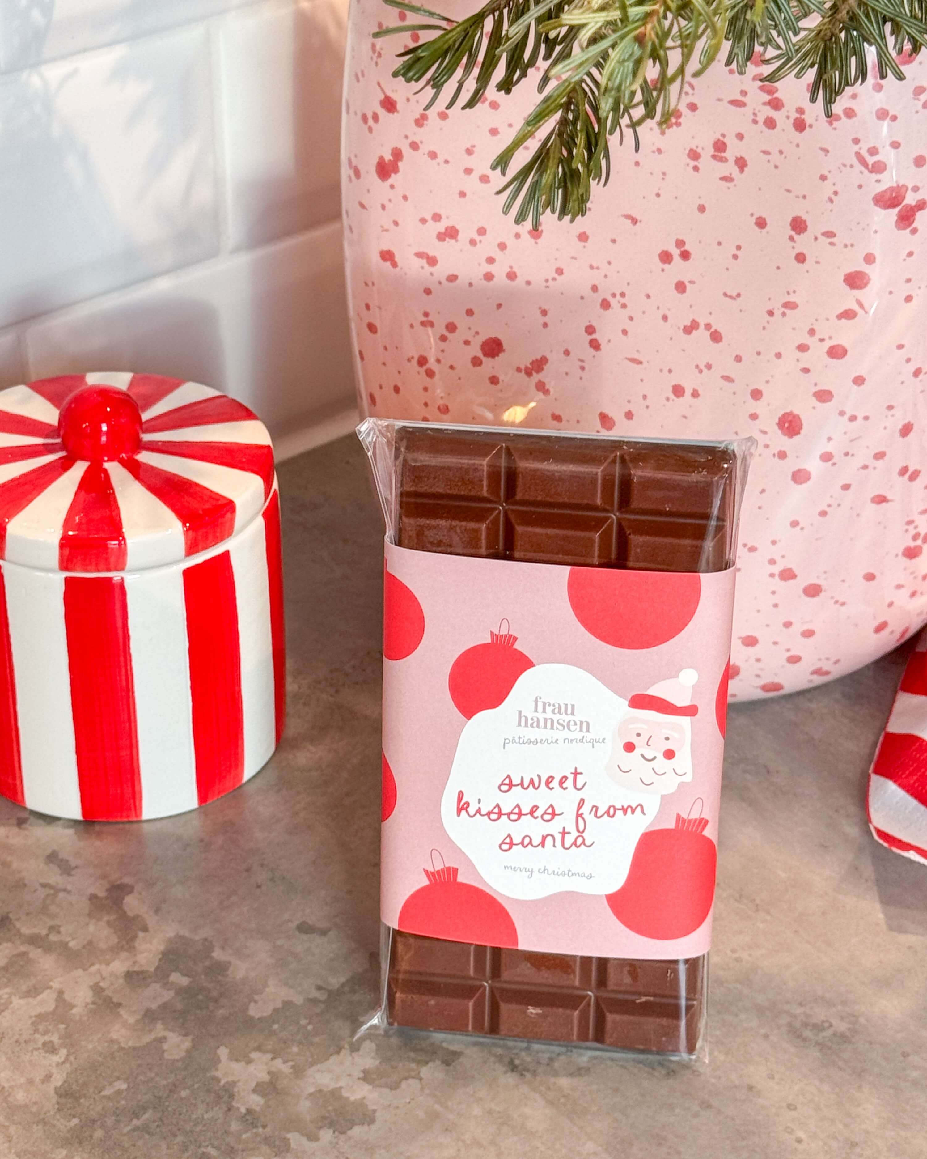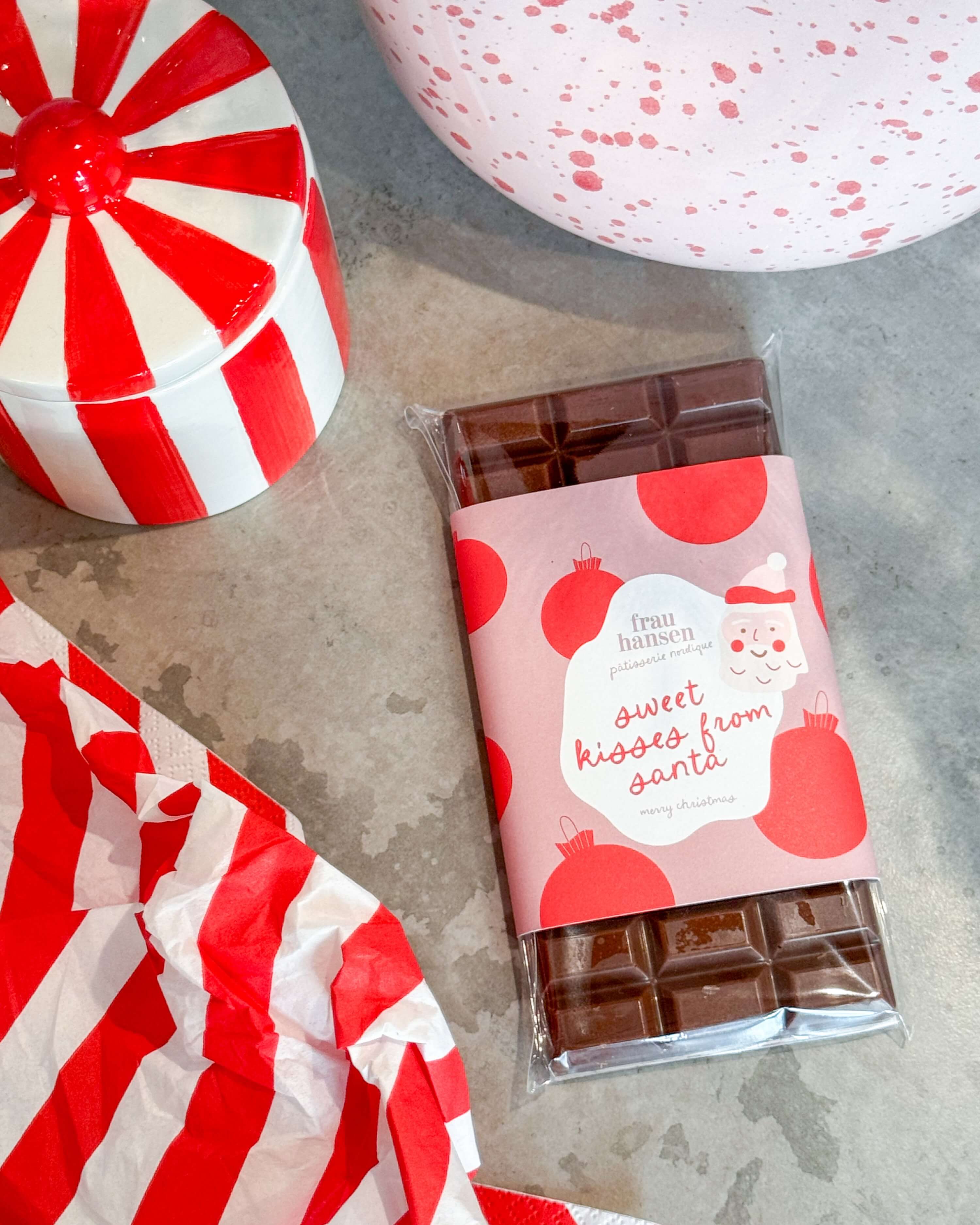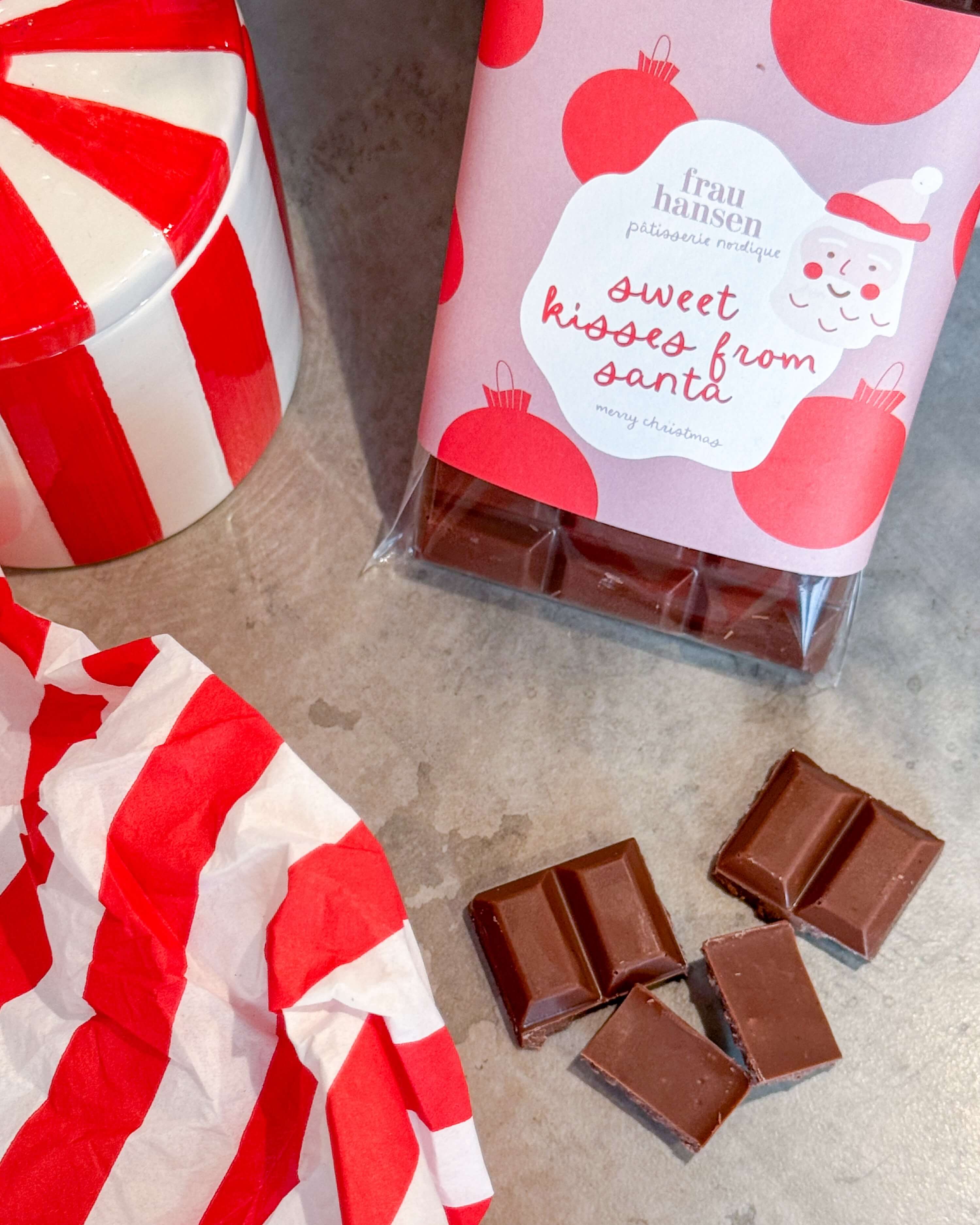Handgeschöpfte Vollmilchschokolade mit 42% Kakao und Spekulatiusstücken. Dicker Kuss von Santa! Muuuuaaaahhhhh!