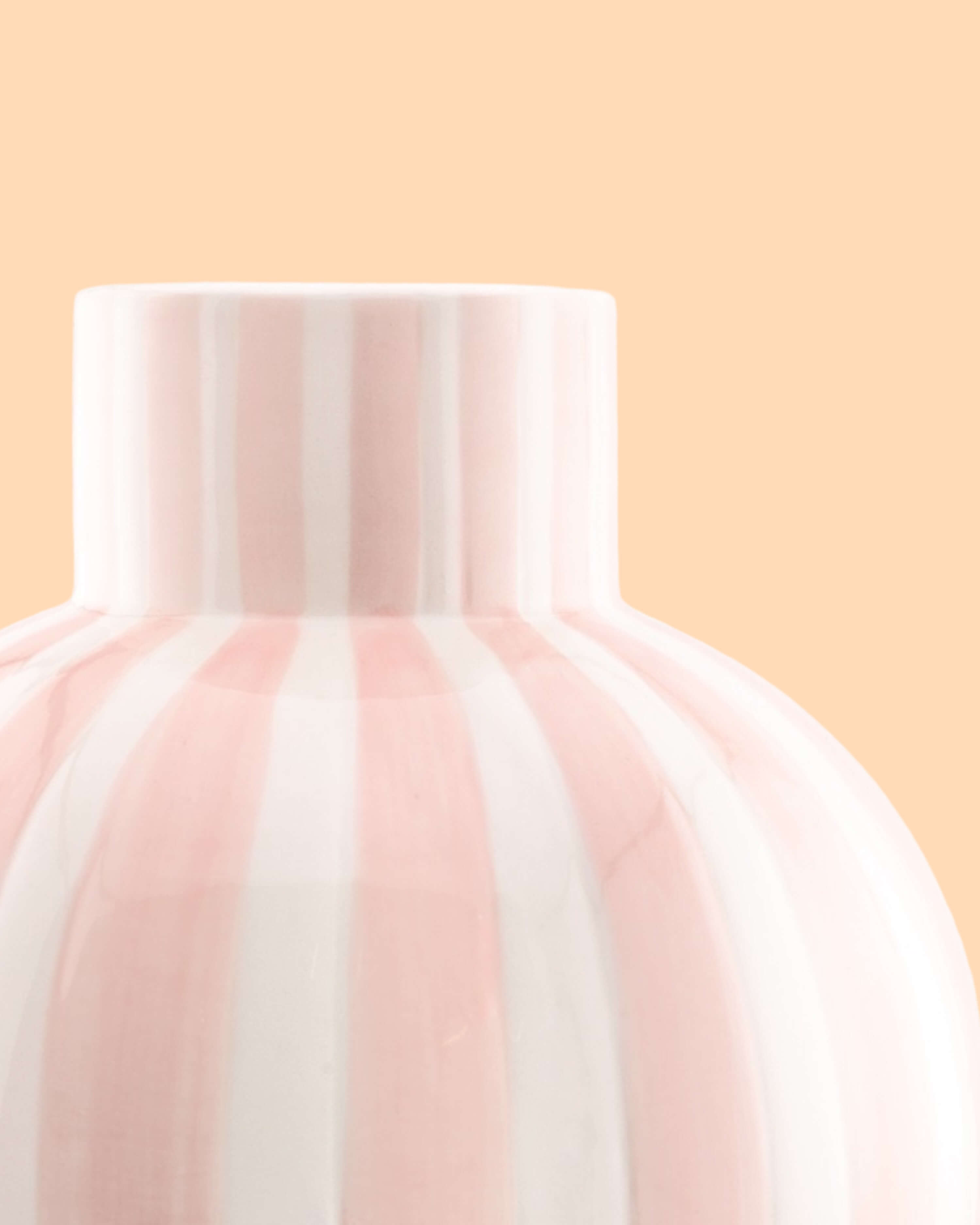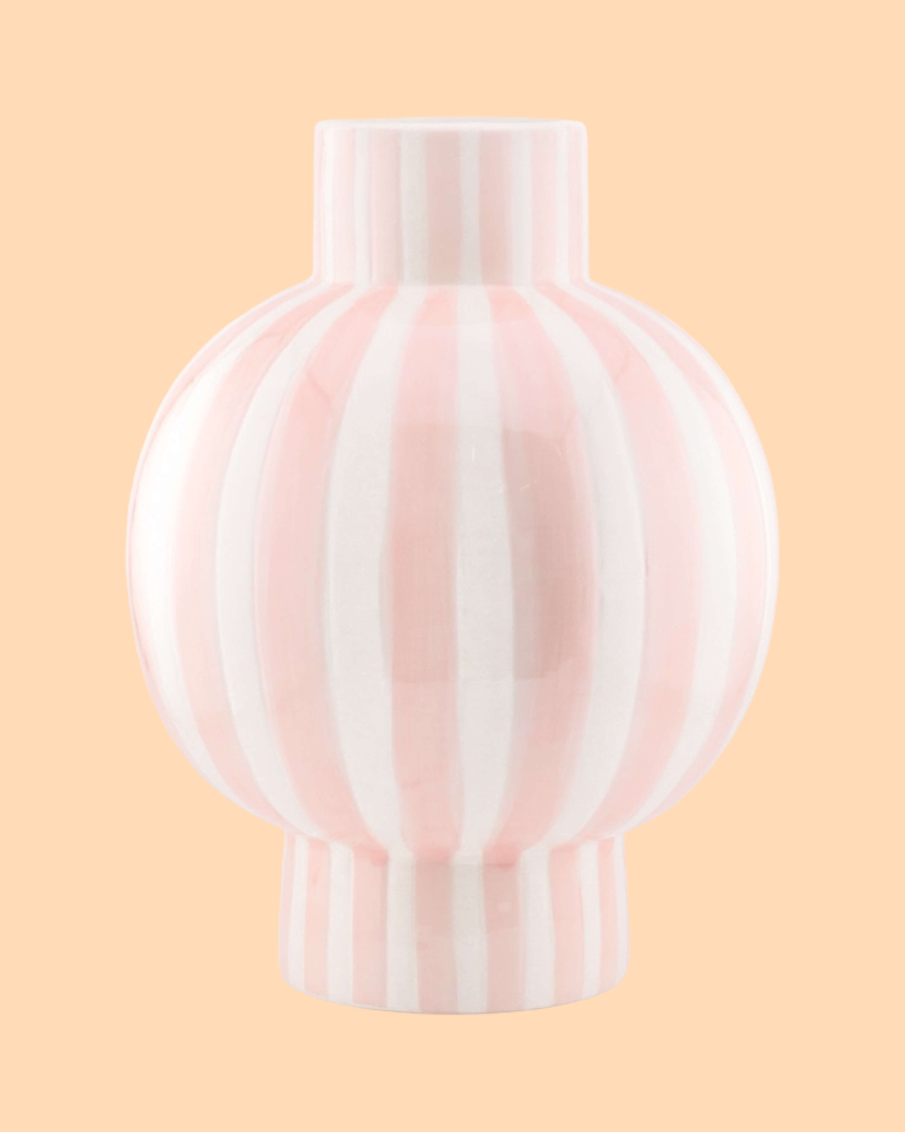 Diese Vase im zeitlosen Streifen Design ist ein absoluter Hingucker in deinem Zuhause. Besonders schön in Kombi mit anderen Vasen in verschiedenen Höhen und anderen Mustern.