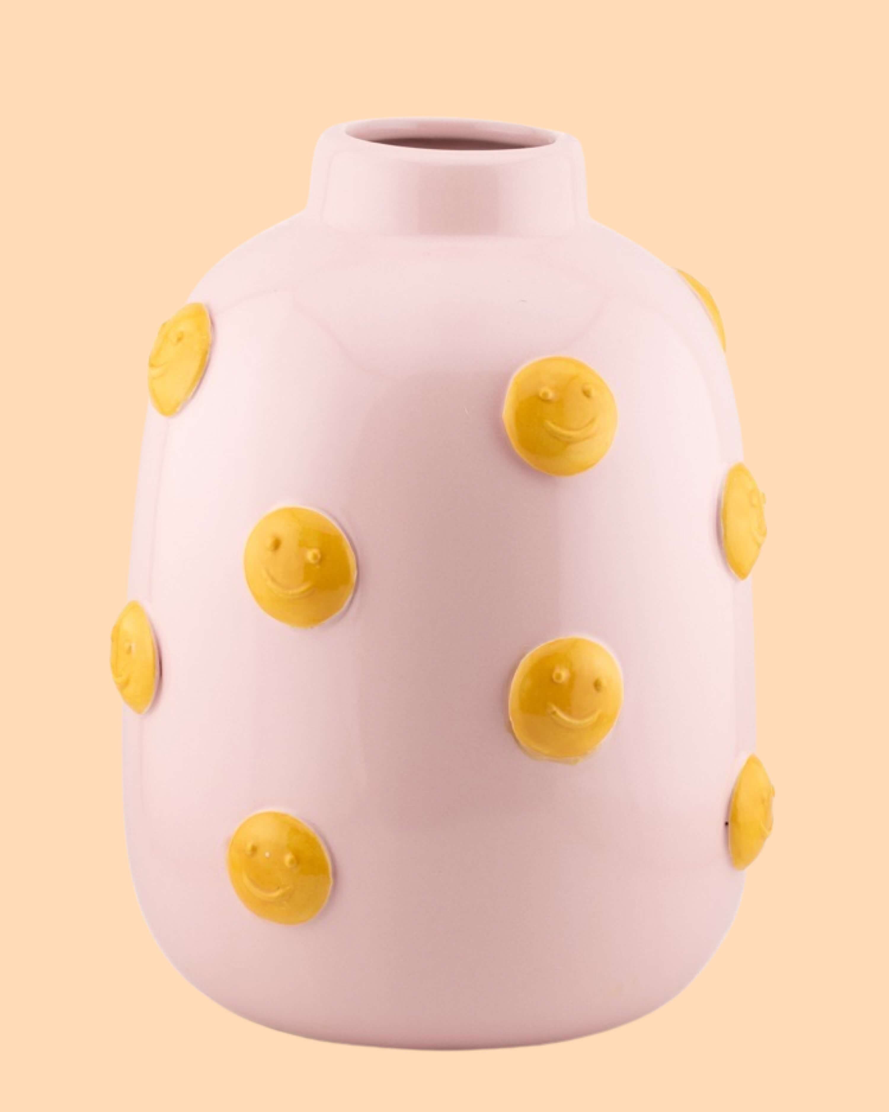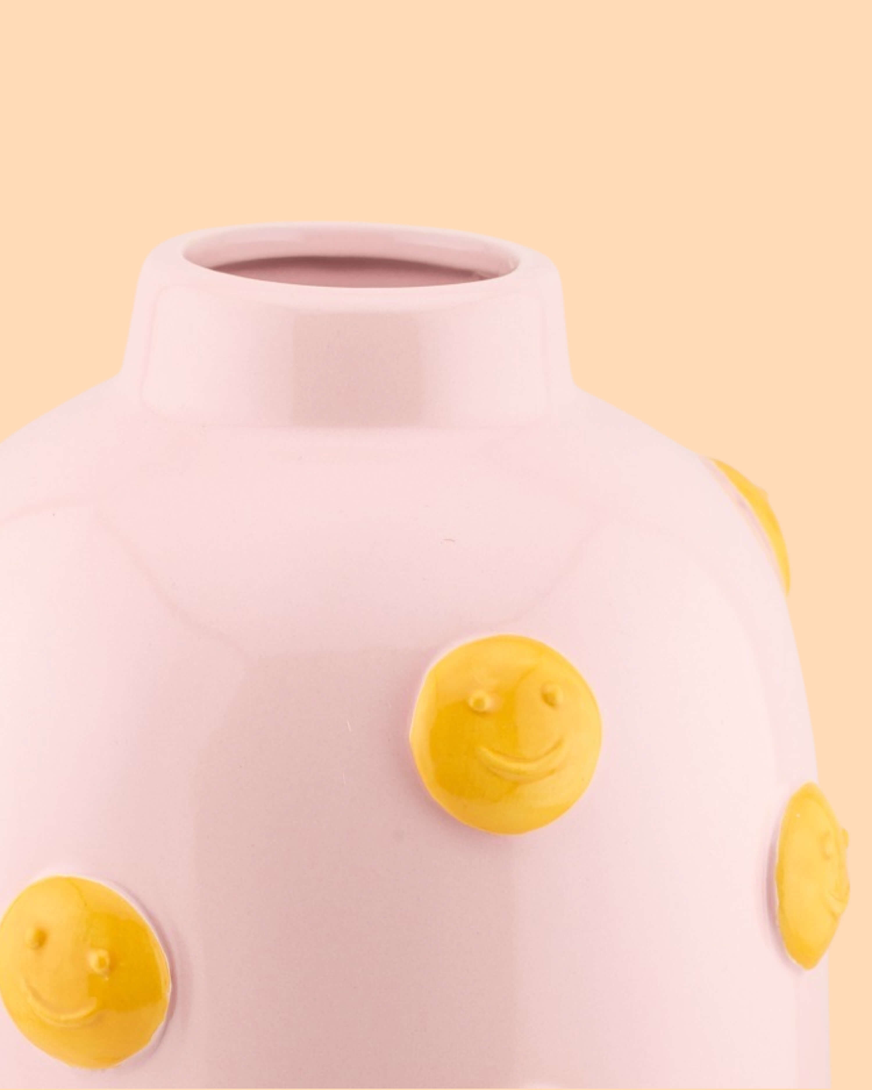 Trendiger gehts ja wohl kaum! Die rosa Vase mit den gelben Smiling Faces ist ein echtes Highlight in deinem Zuhause!.