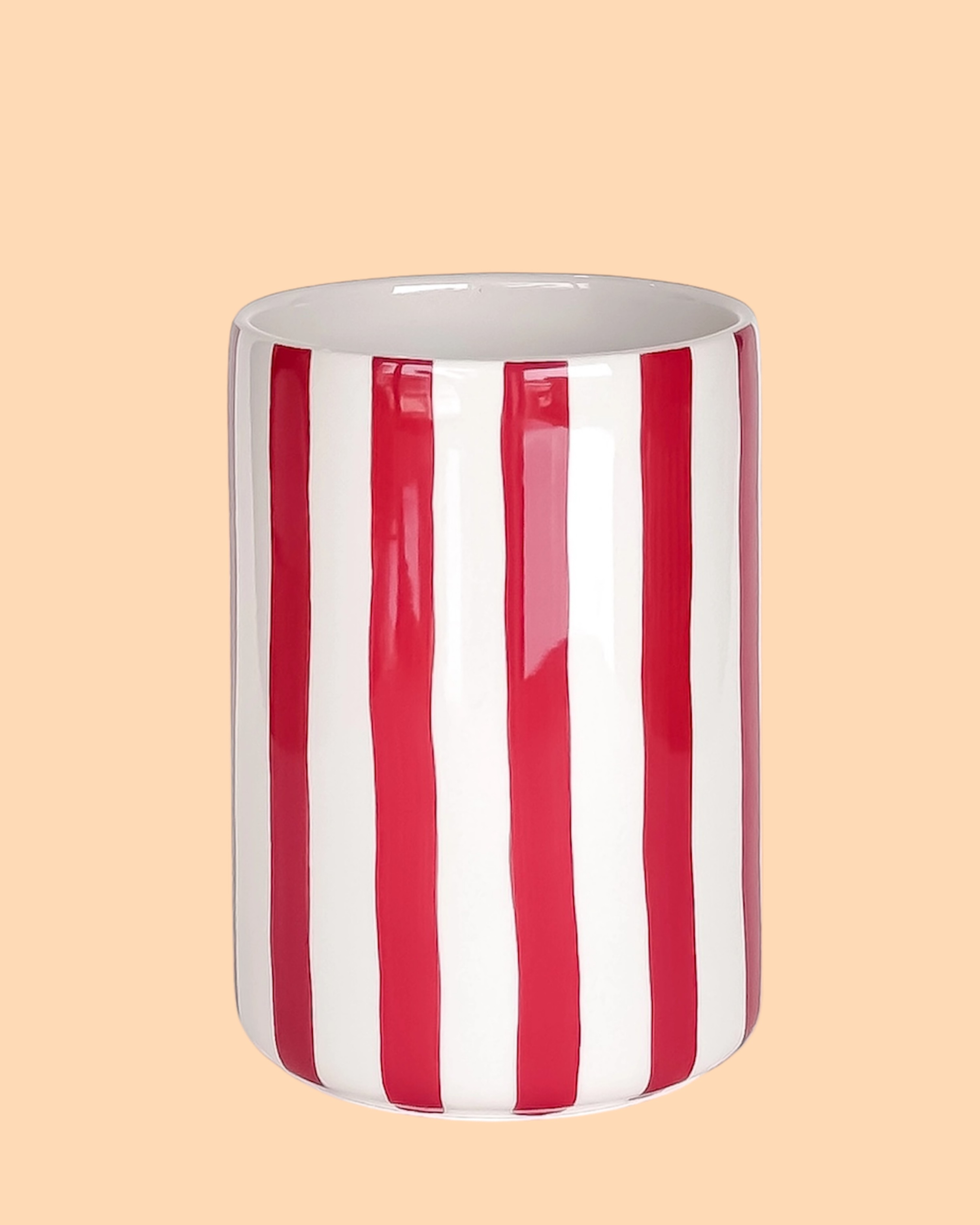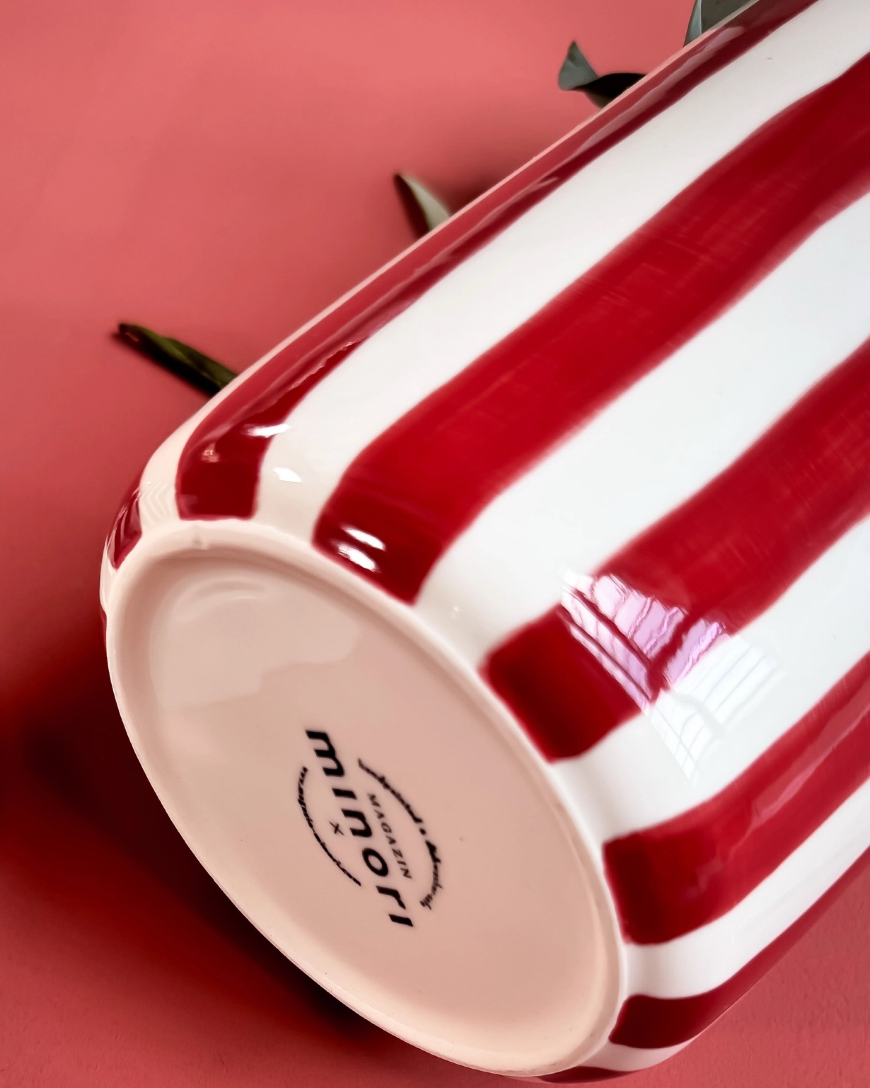 Die Vase Stripes Tramonto Red von Magazin Minori ist aus hochwertiger Keramik und handbemalt. Farbverlauf und -intensität können von Vase zu Vase unterschiedlich sein! Keine ist exakt wie die andere ... aber wer will das schon sein?!
