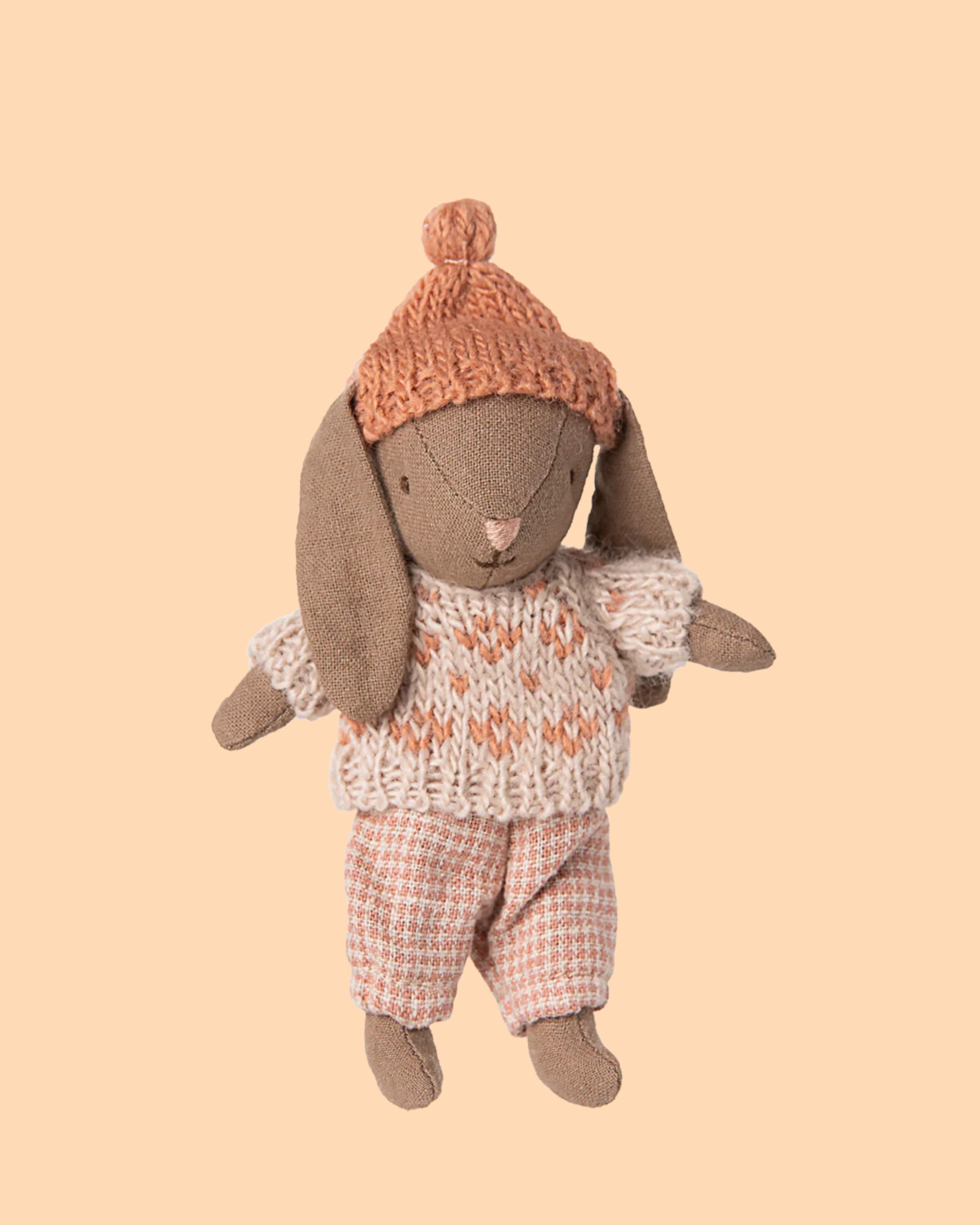Mit dem süßen Winter Bunny Micro Brown Rose können die Geschichten und stundenlangen Spielspaß beginnen. Er passt perfekt zu den Accessoires von maileg in der Größe Micro und kann im Haus der Miniaturpuppen wohnen. Ein tolles Geschenk zur Weihnachtszeit!